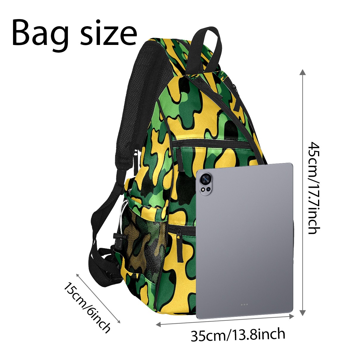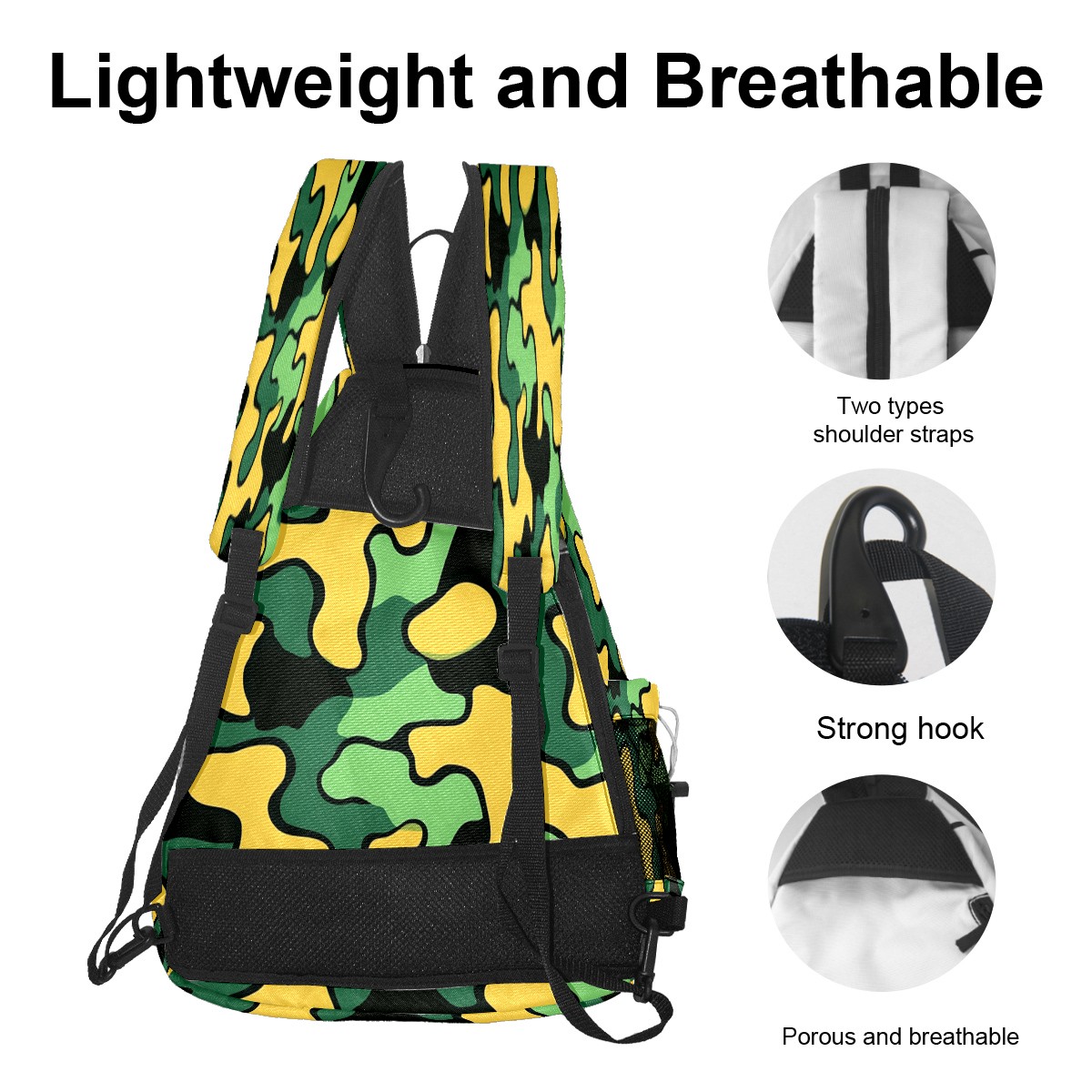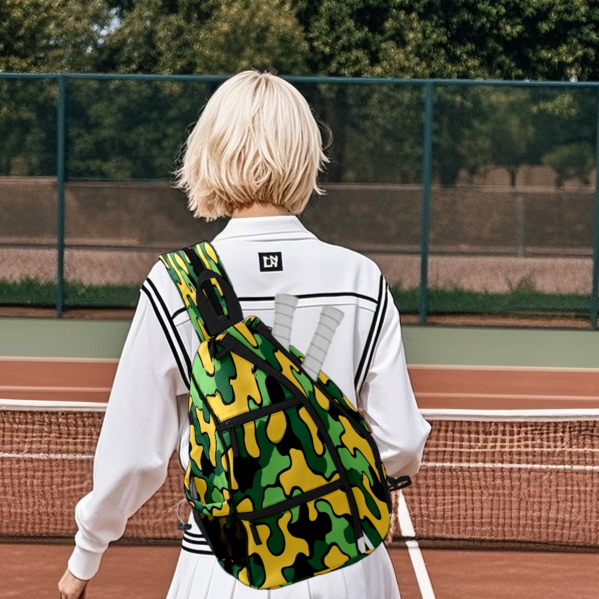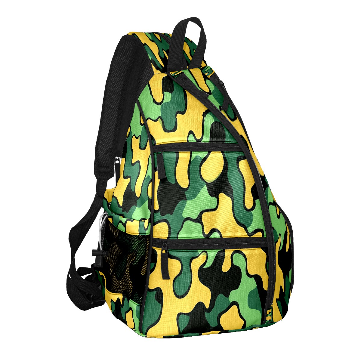 Pickleball Bag with Padded Back, Camouflage Yellow Multi-Compartment Paddle Backpack, Lightweight Nylon Sports Bag for Men & Women