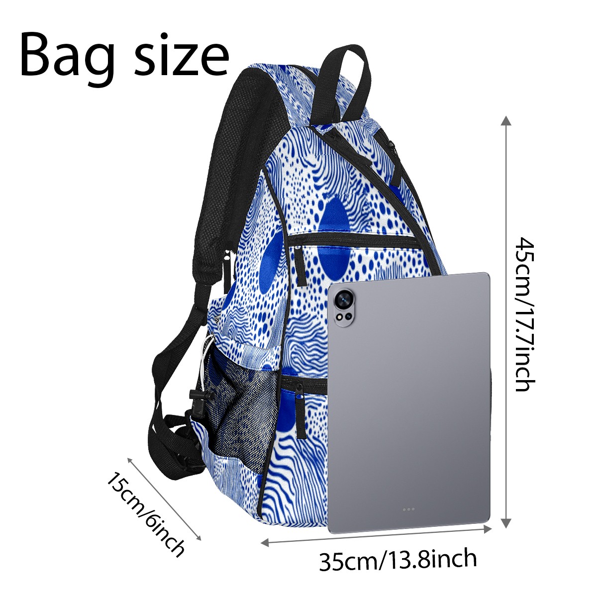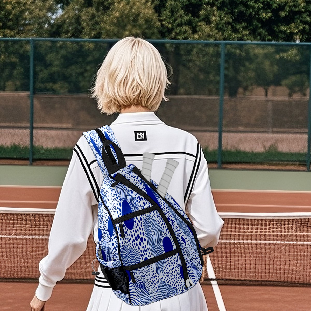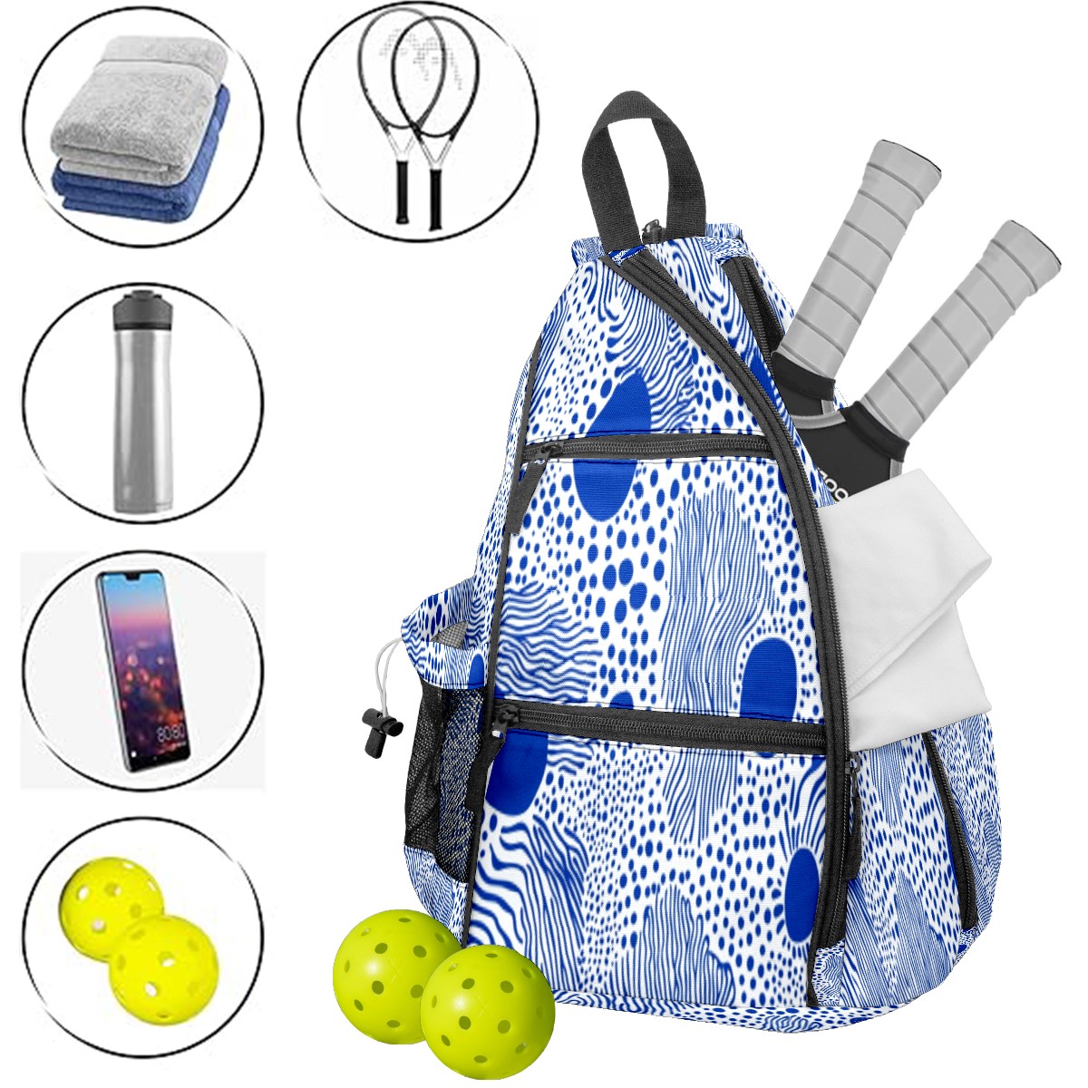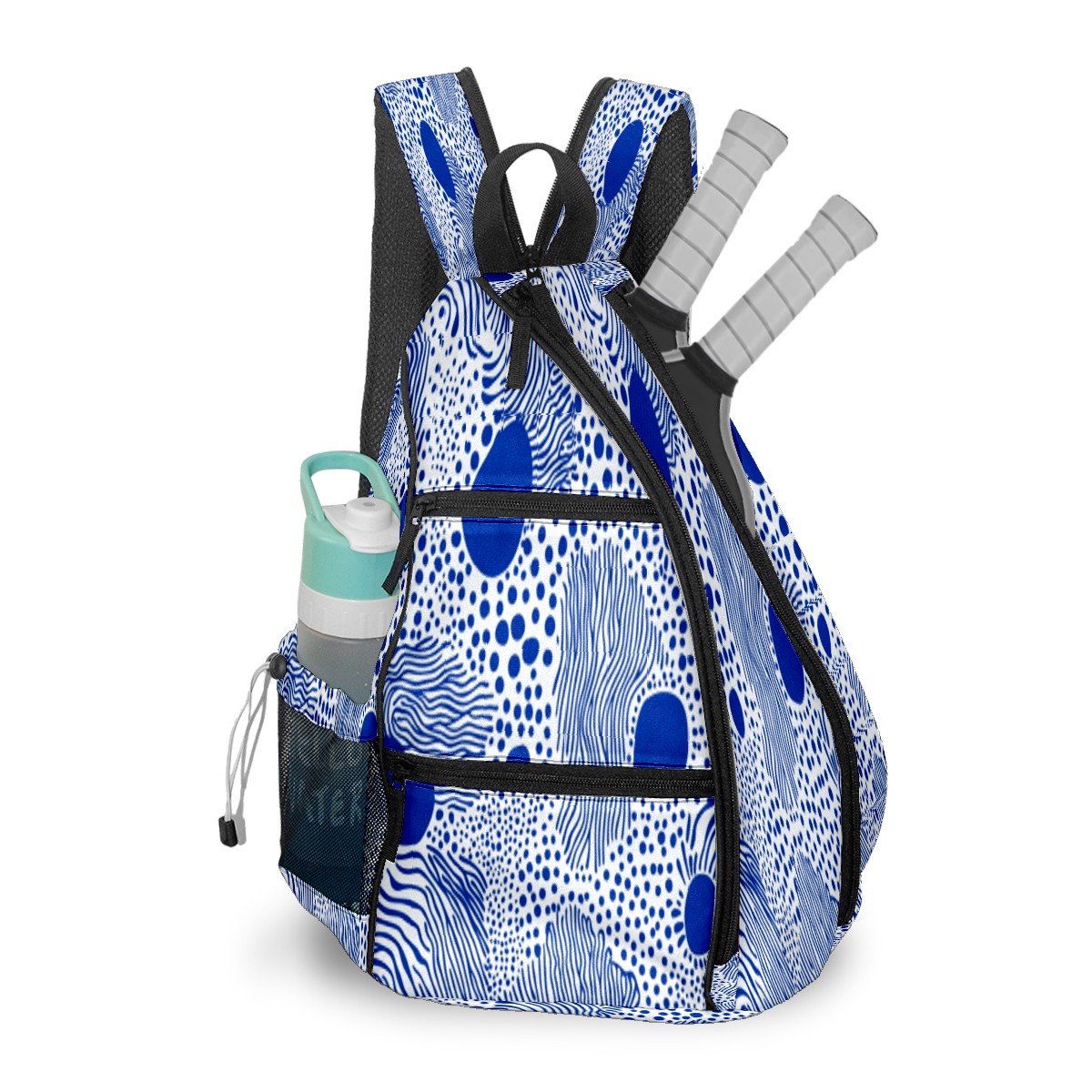 Pickleball Bag with Padded Back, Polka Blue Multi-Compartment Paddle Backpack, Lightweight Nylon Sports Bag for Men & Women