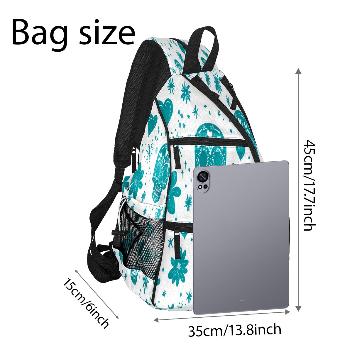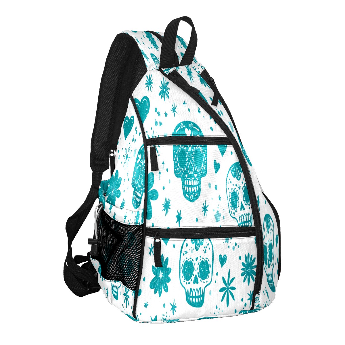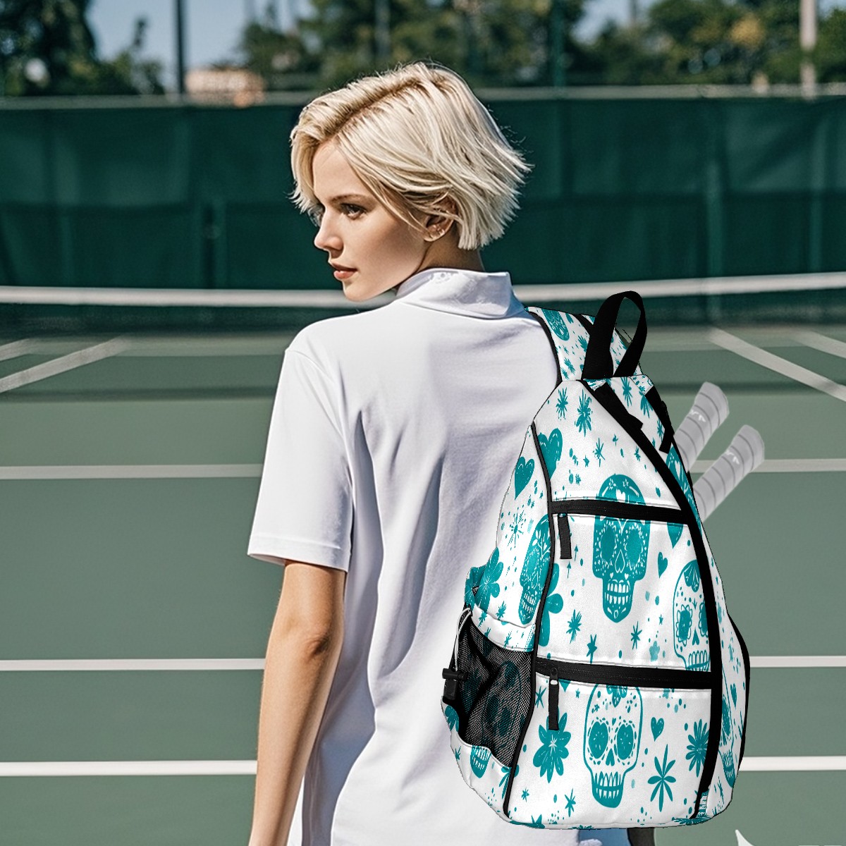 Pickleball Bag with Padded Back, Green Skull Multi-Compartment Paddle Backpack, Lightweight Nylon Sports Bag for Men & Women