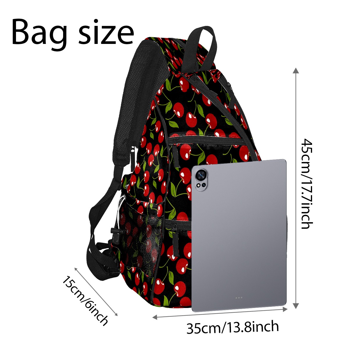 Pickleball Bag with Padded Back, Cherry Black Multi-Compartment Paddle Backpack, Lightweight Nylon Sports Bag for Men & Women