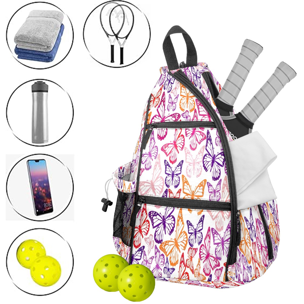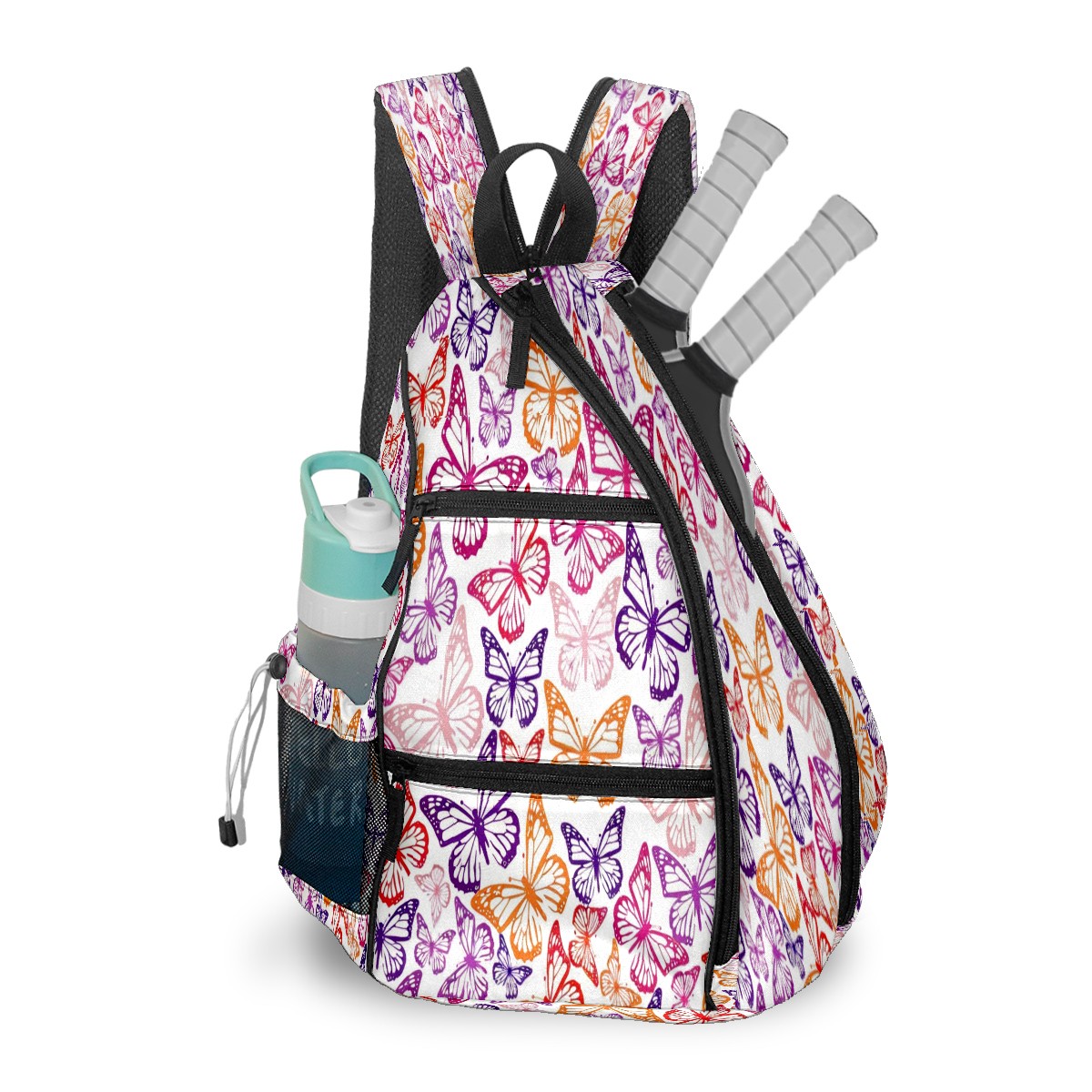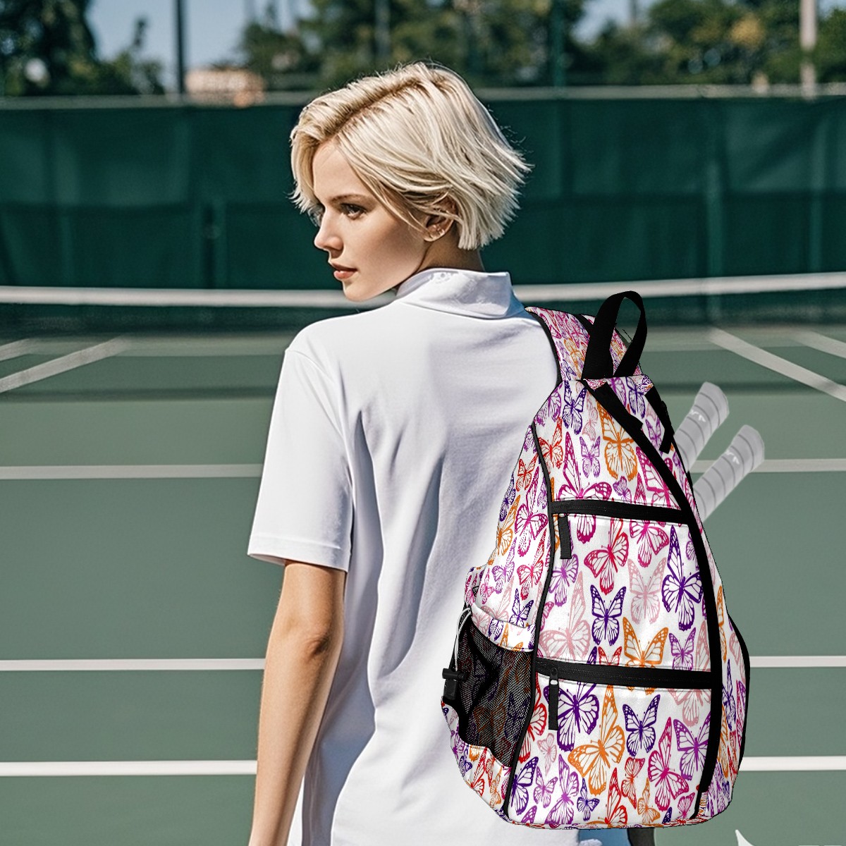 Pickleball Bag with Padded Back, Butterfly Purple · Multi-Compartment Paddle Backpack, Lightweight Nylon Sports Bag for Men & Women