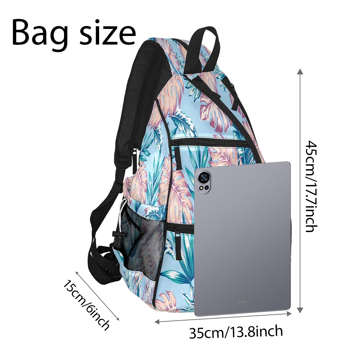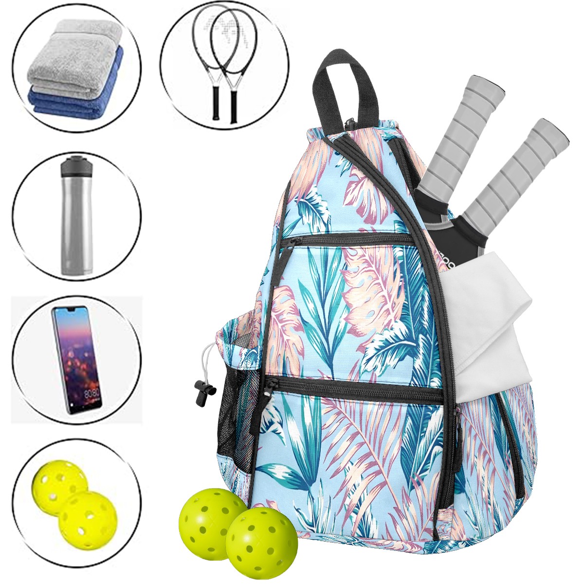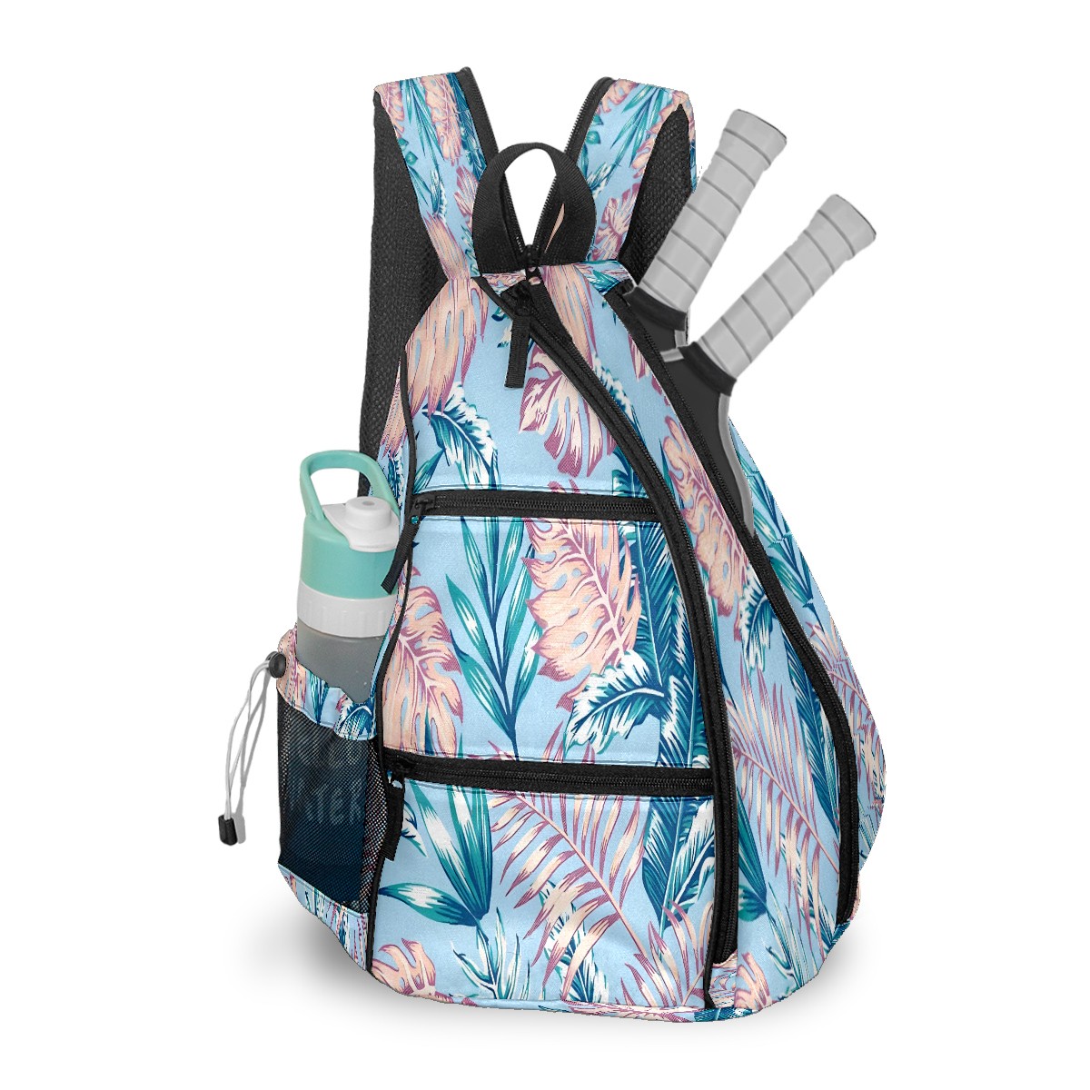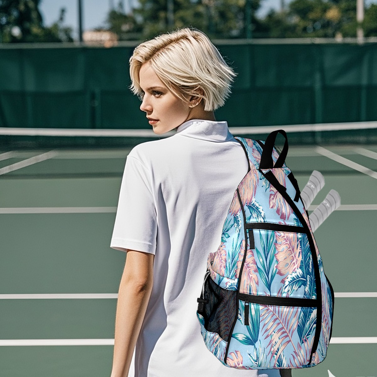 Pickleball Bag with Padded Back, Leaves Blue Multi-Compartment Paddle Backpack, Lightweight Nylon Sports Bag for Men & Women