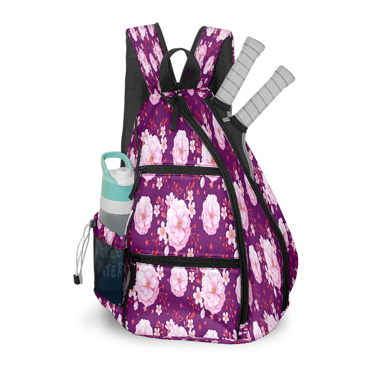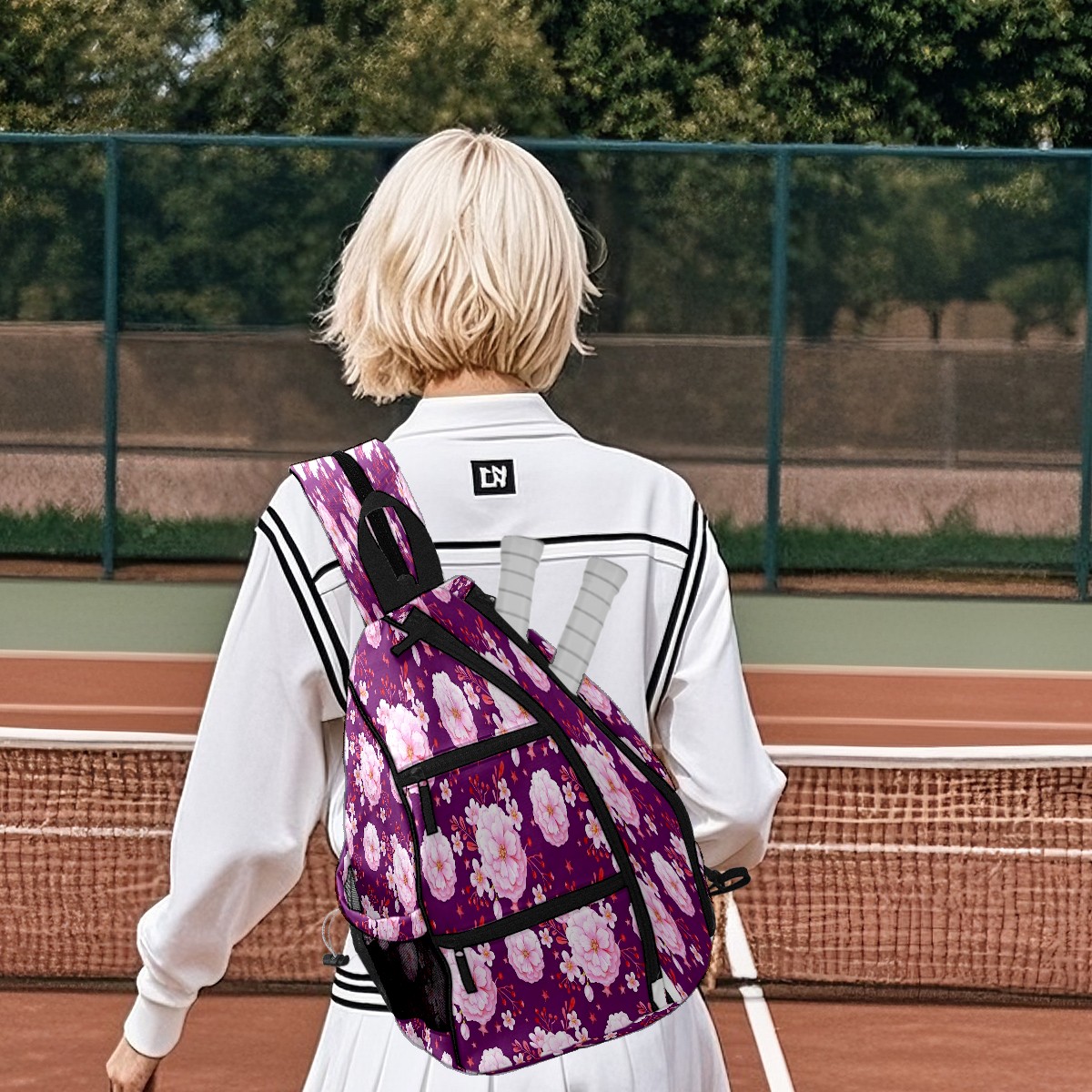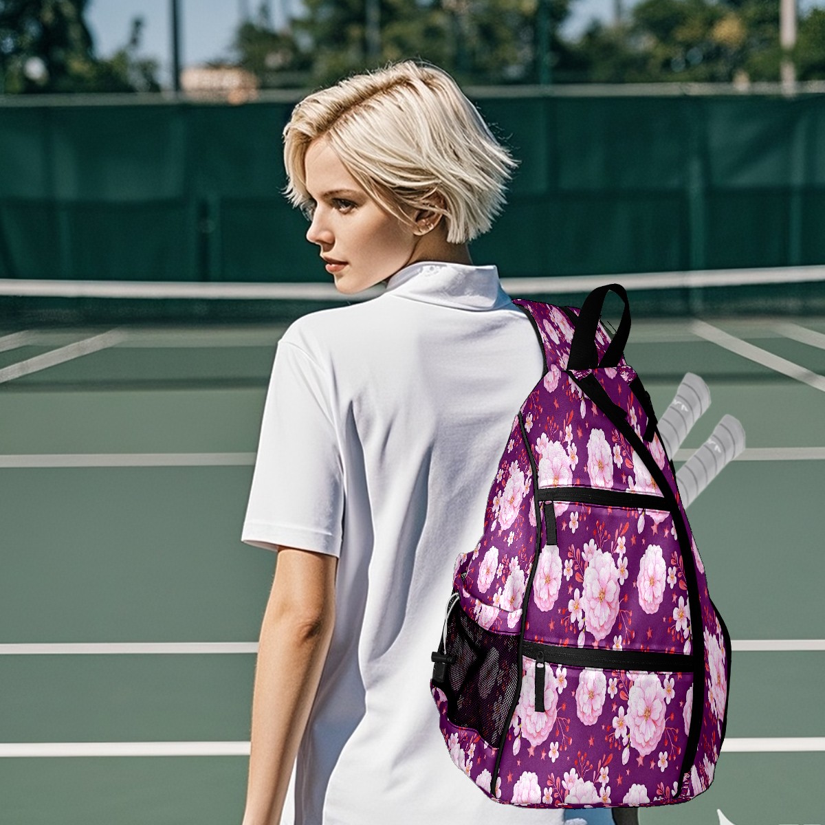 Pickleball Bag with Padded Back, Cherry Blossom Multi-Compartment Paddle Backpack, Lightweight Nylon Sports Bag for Men & Women