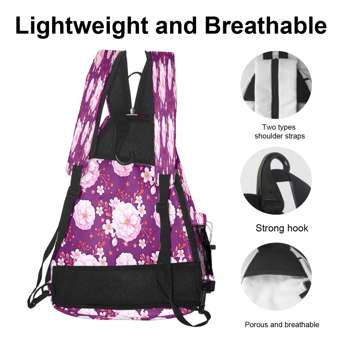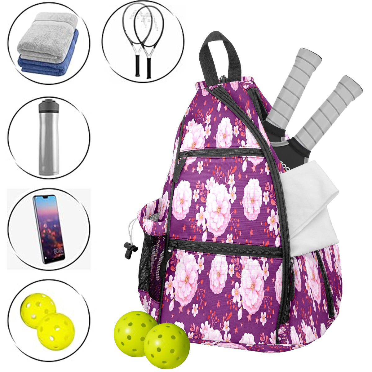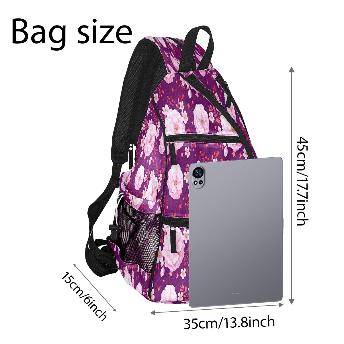 Pickleball Bag with Padded Back, Cherry Blossom Multi-Compartment Paddle Backpack, Lightweight Nylon Sports Bag for Men & Women