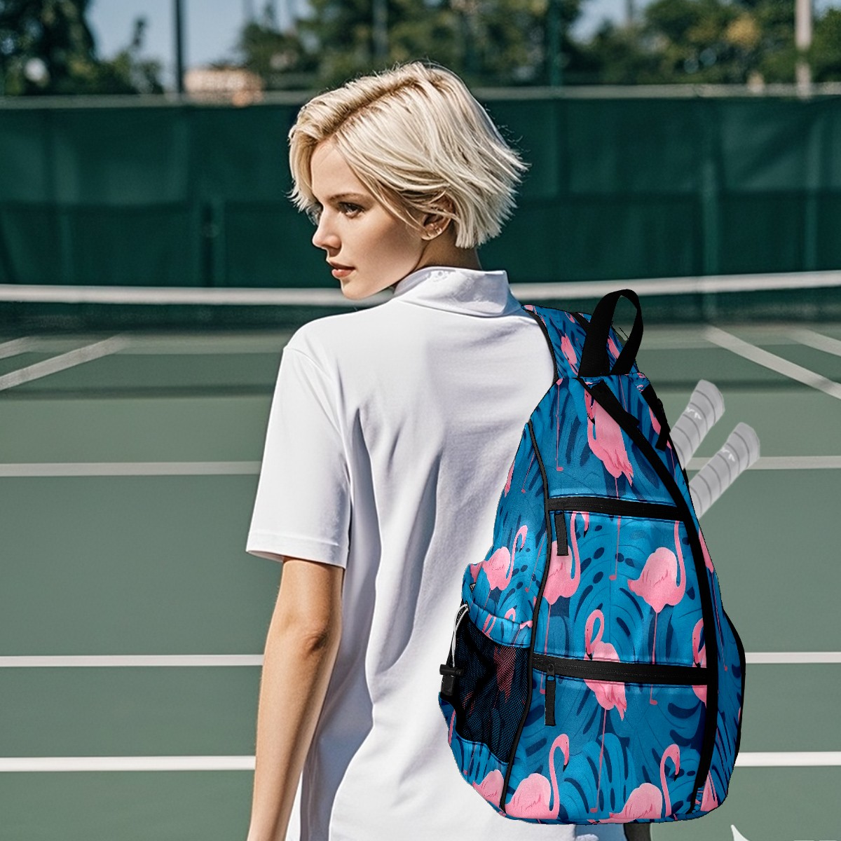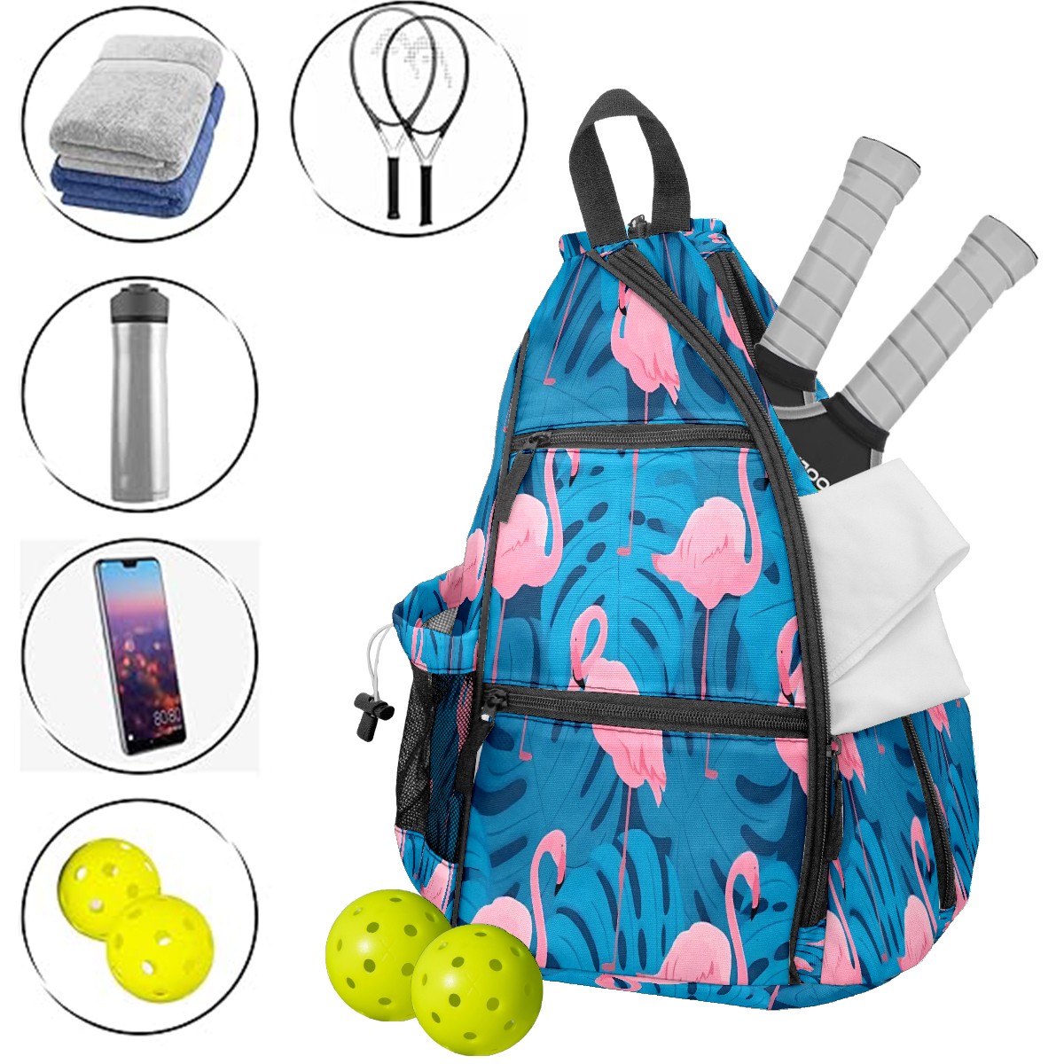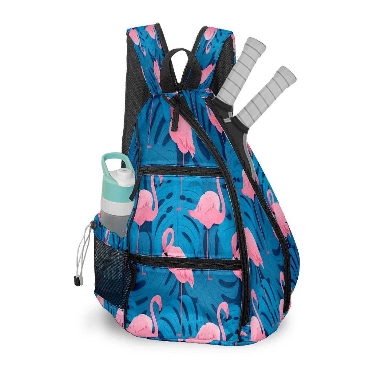 Pickleball Bag with Padded Back, Flamingo Blue Multi-Compartment Paddle Backpack, Lightweight Nylon Sports Bag for Men & Women