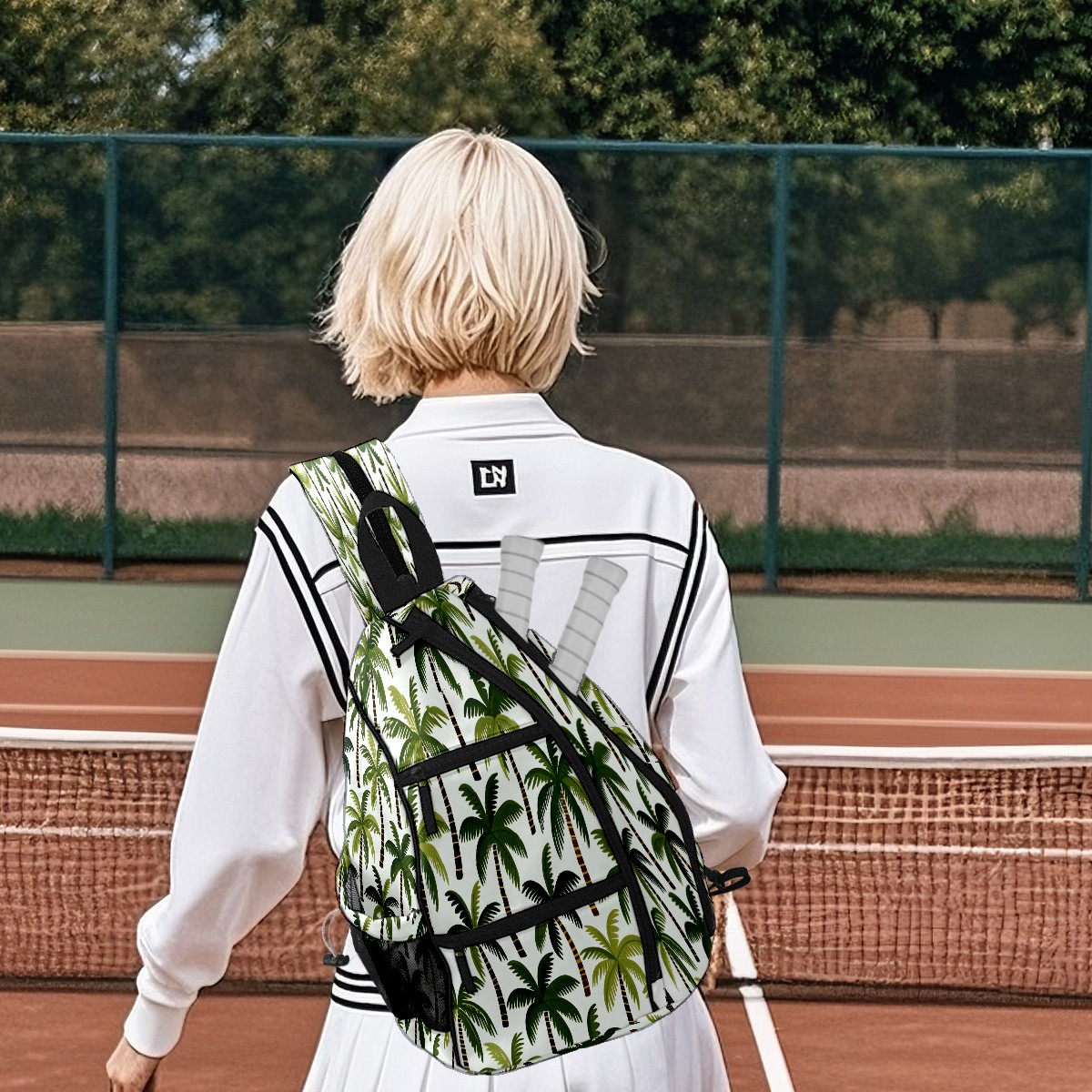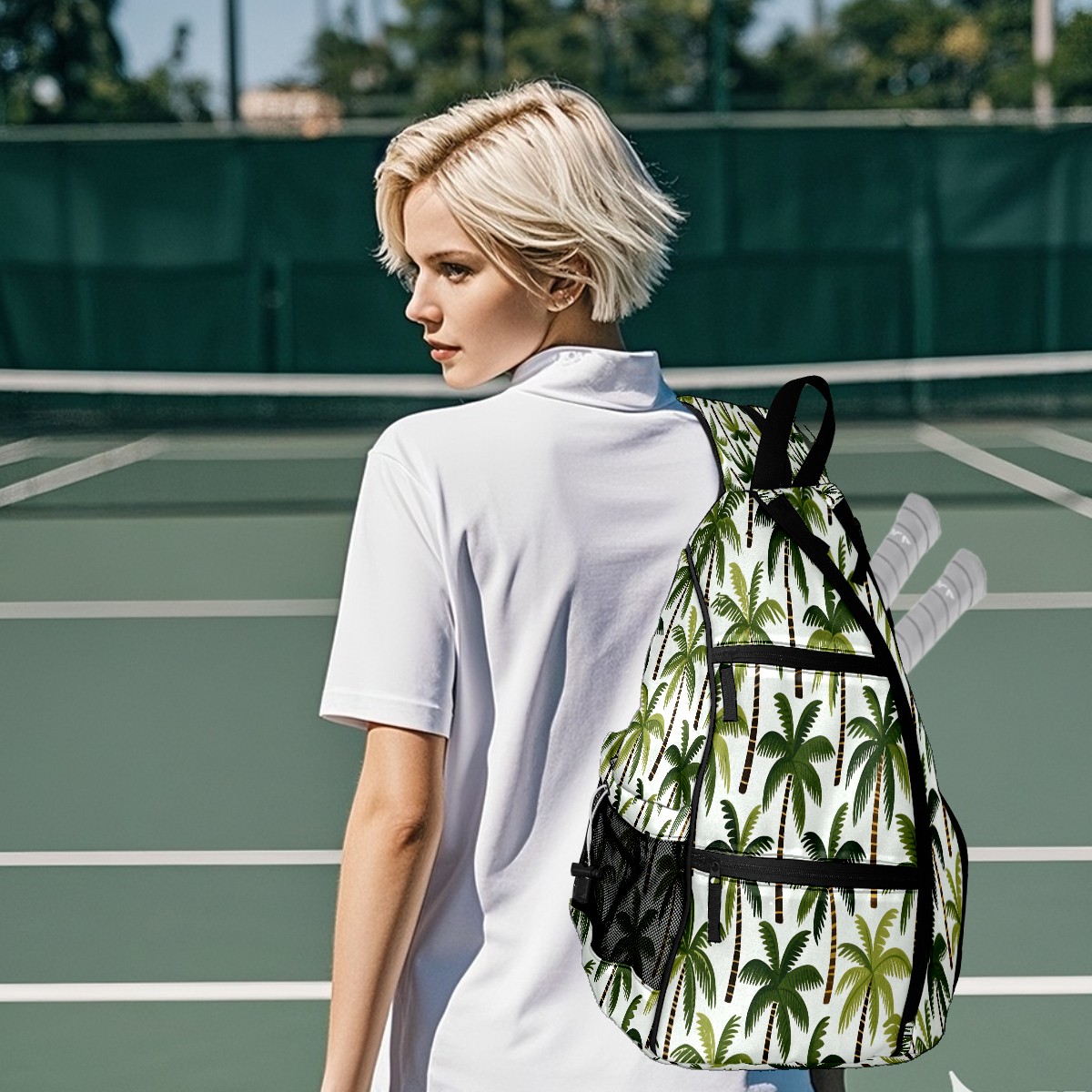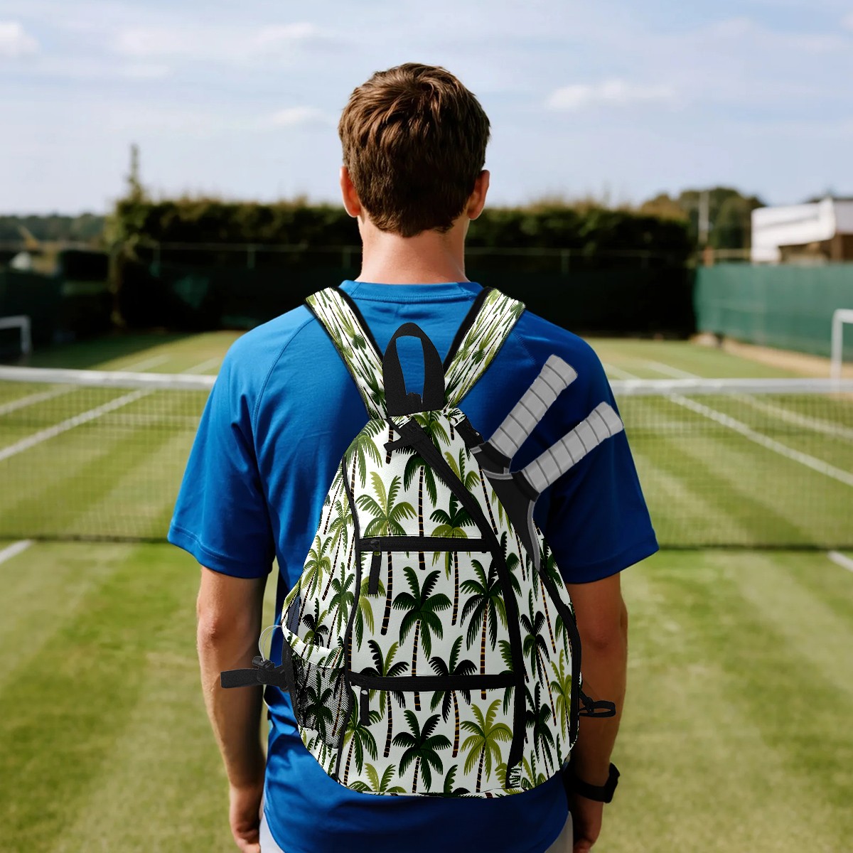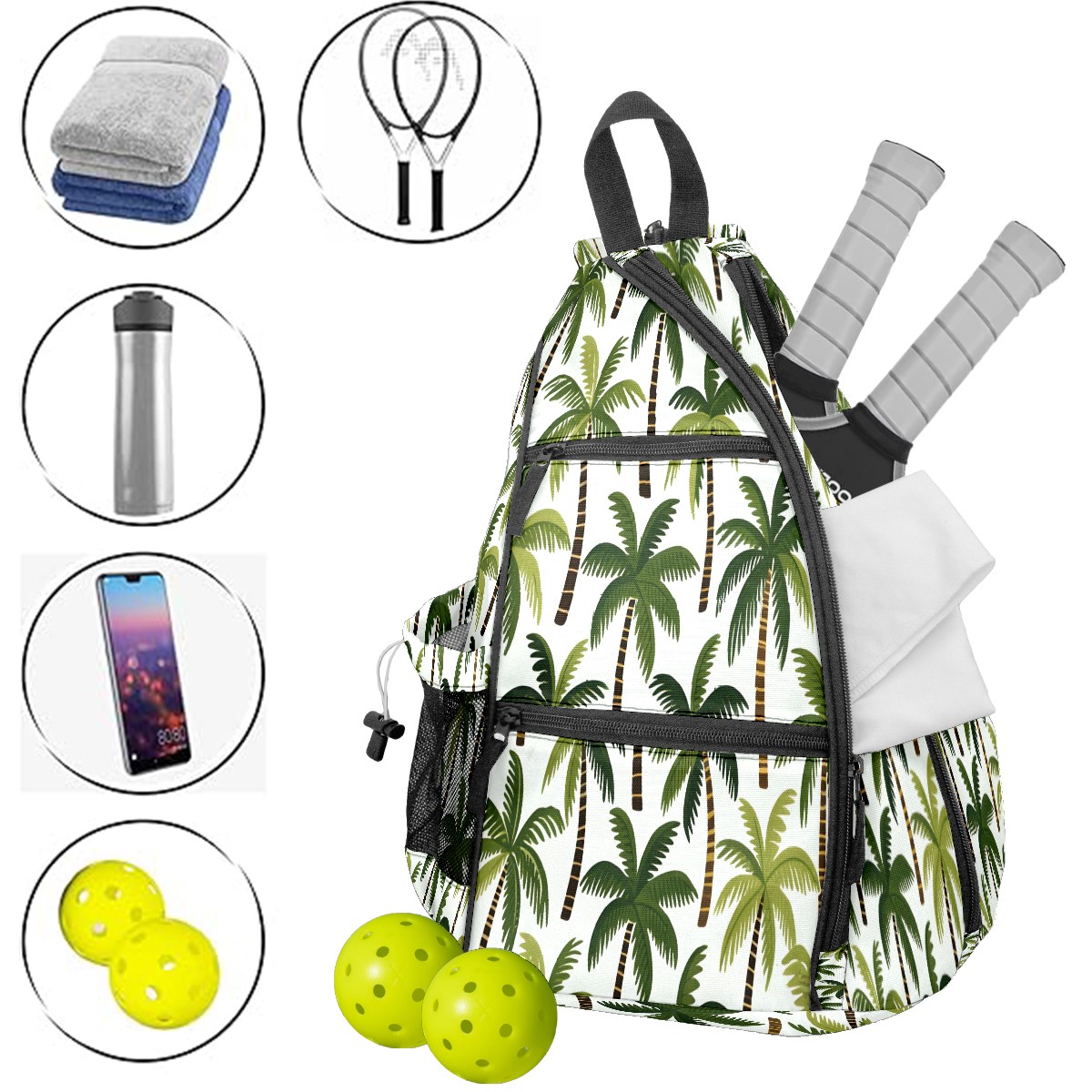 Pickleball Bag with Padded Back, Palm Tree While Multi-Compartment Paddle Backpack, Lightweight Nylon Sports Bag for Men & Women