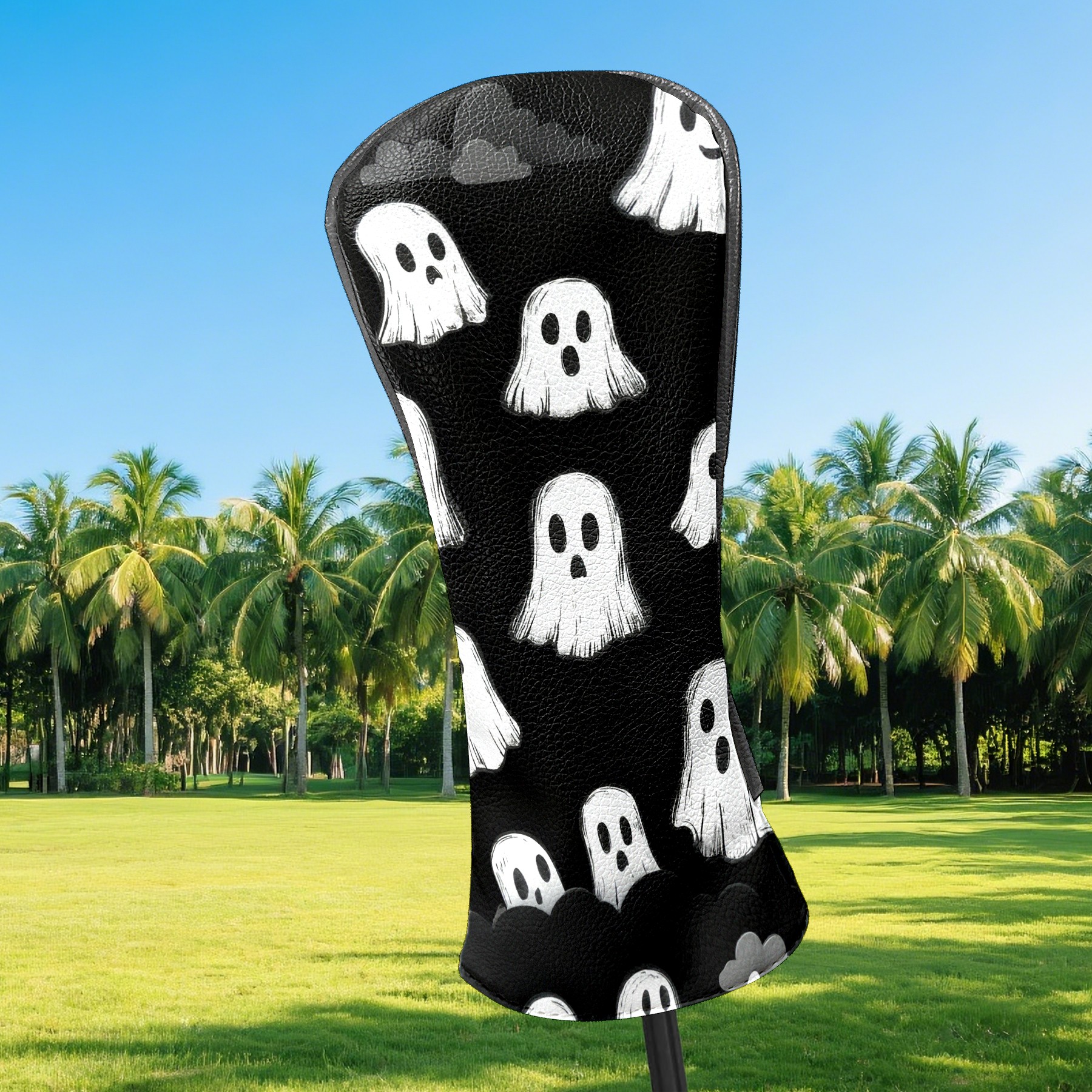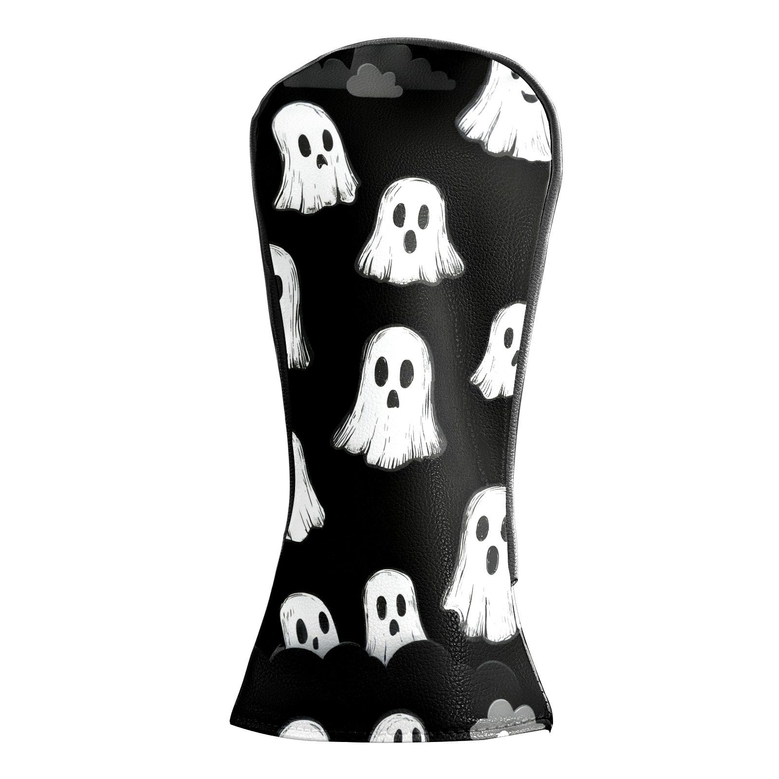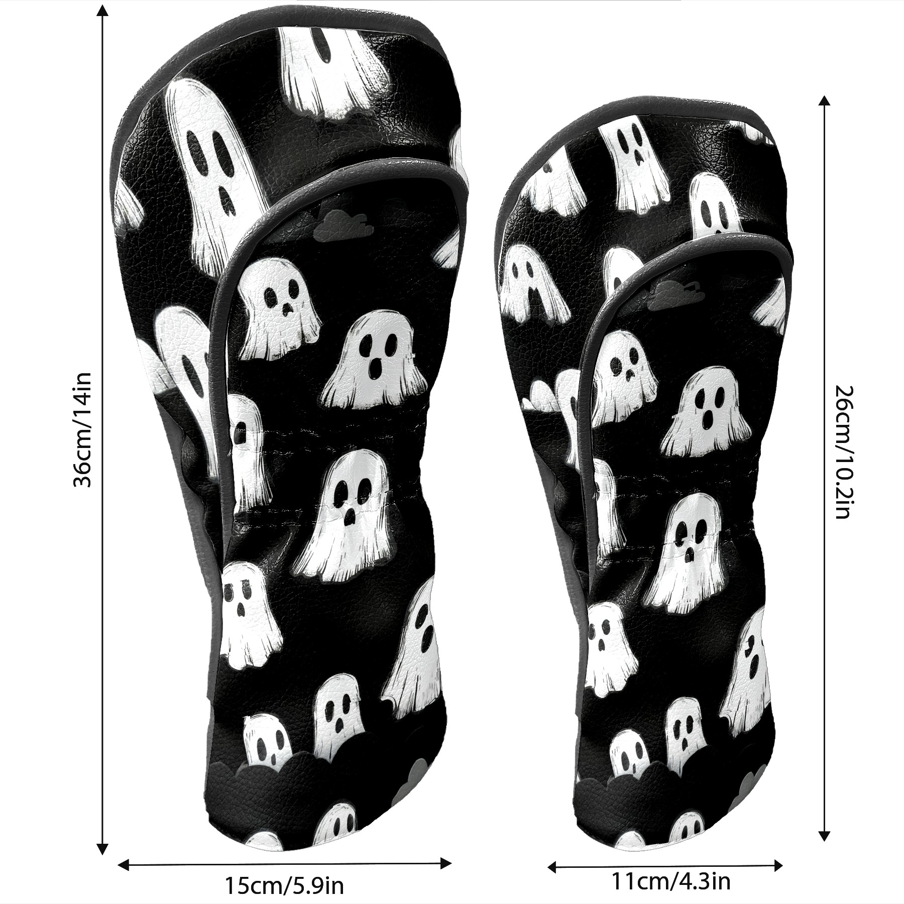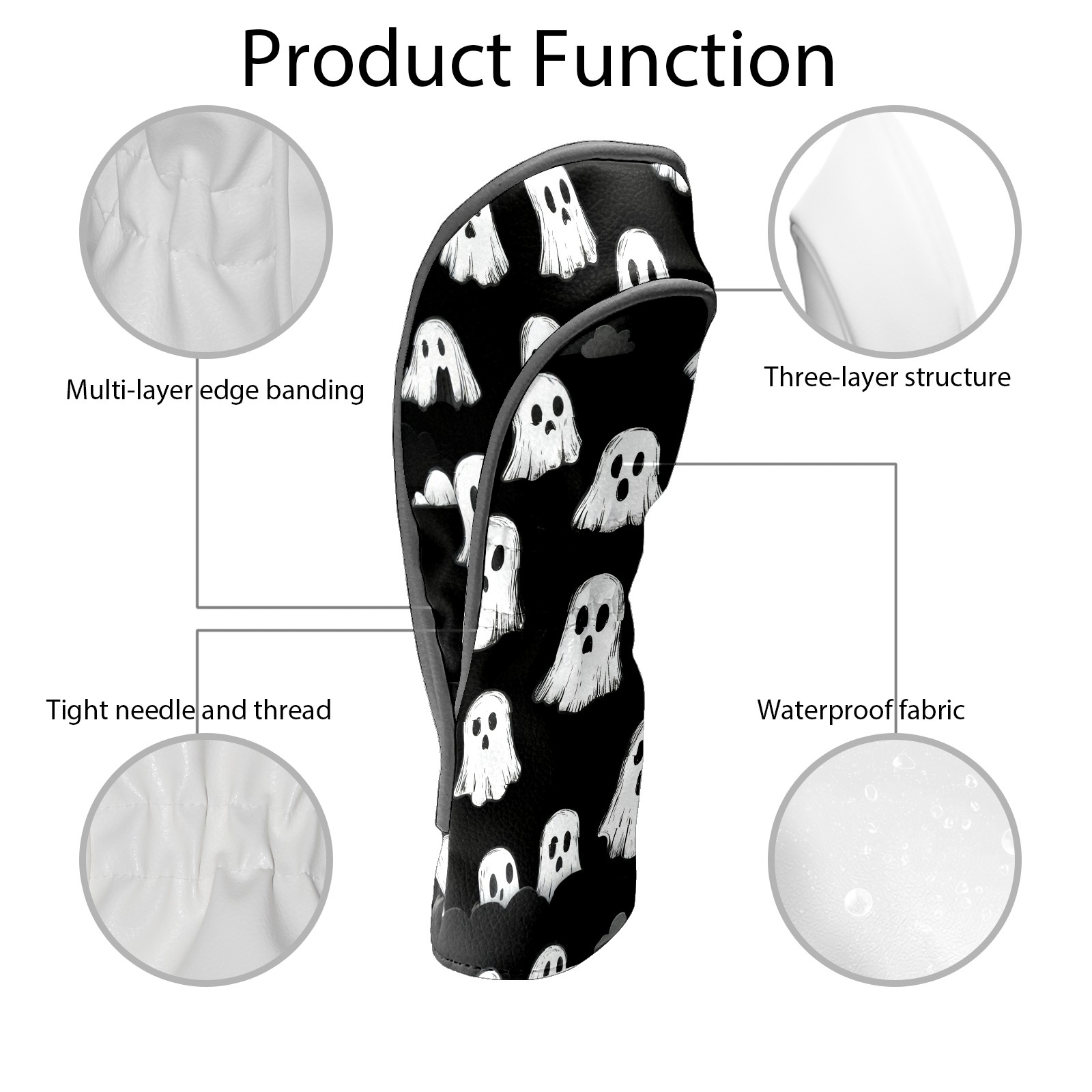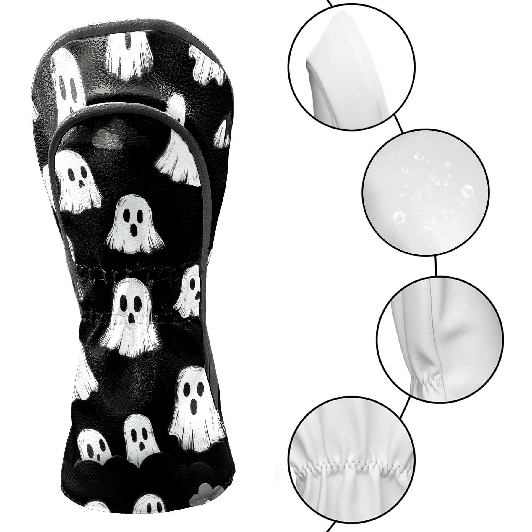 Golf Driver Head Covers Fairway Wood Headcovers, Premium Leather Golf Club Covers with Anti-Scratch Lining 1/3/5 Wood Cover for golf clubs for Women Men (White Ghost Pattern)