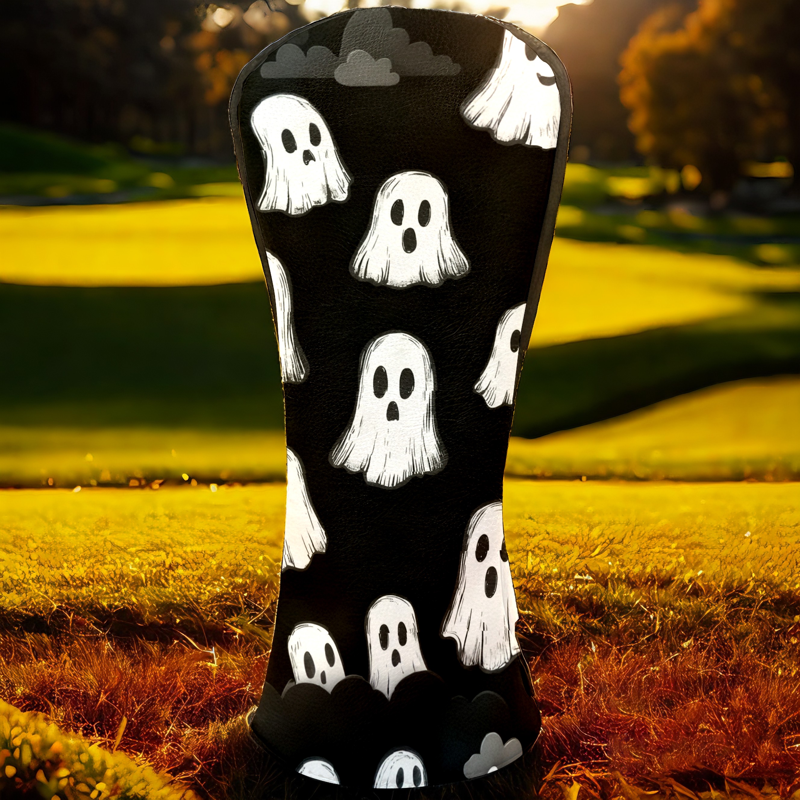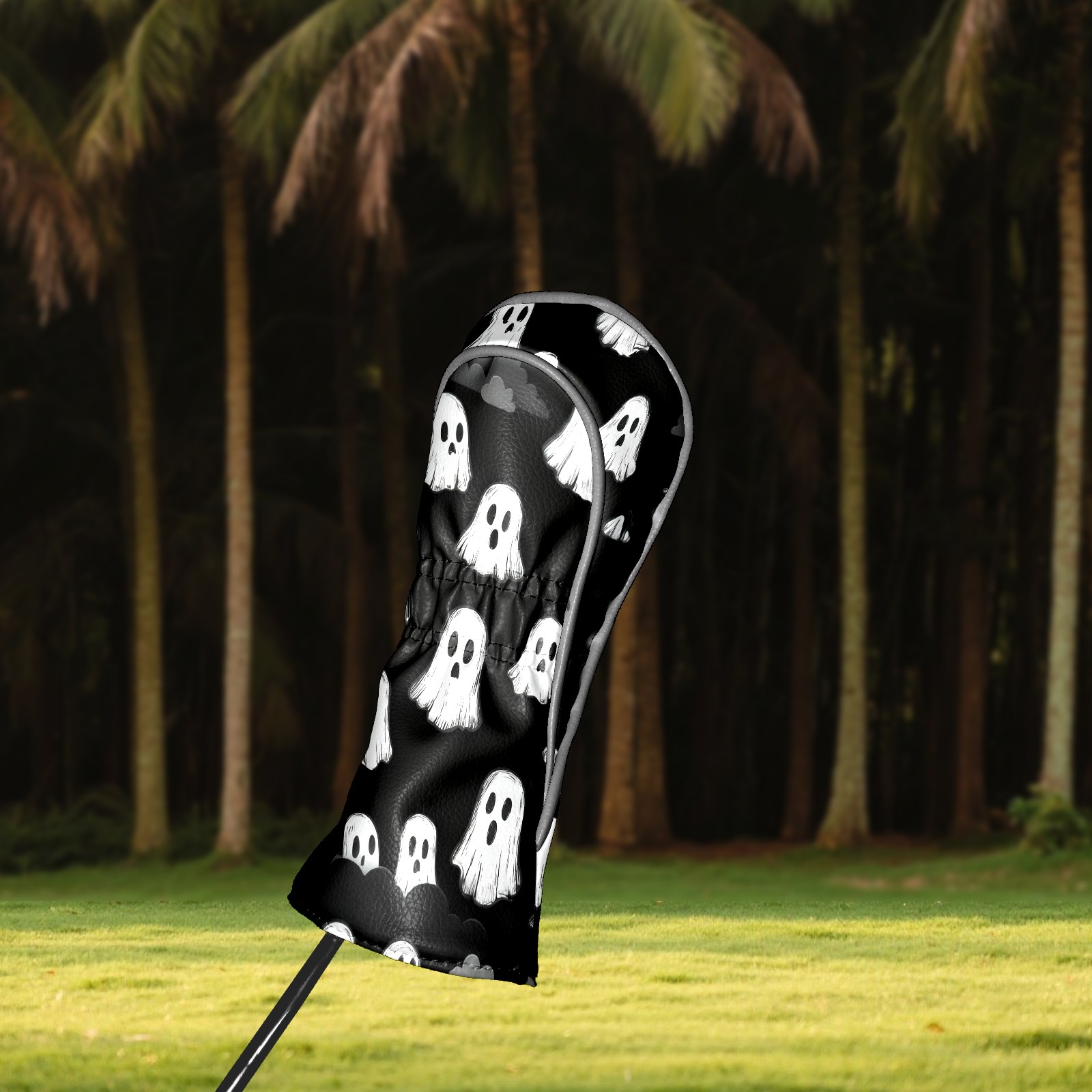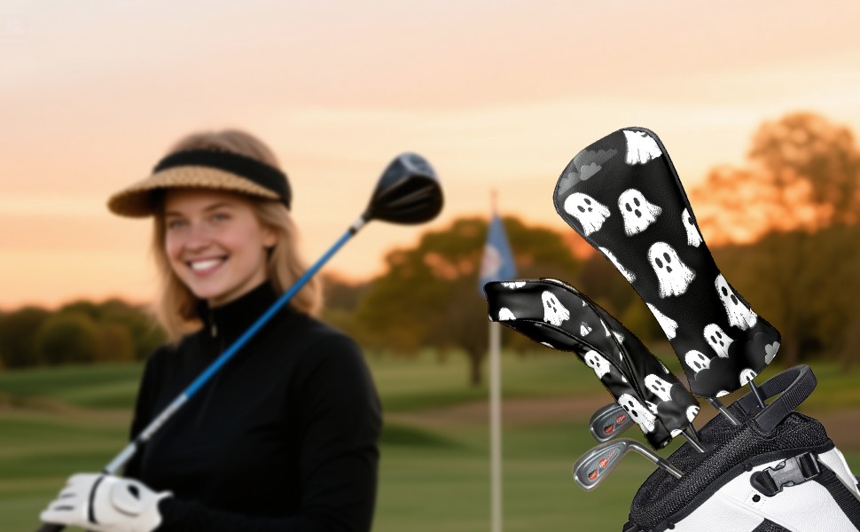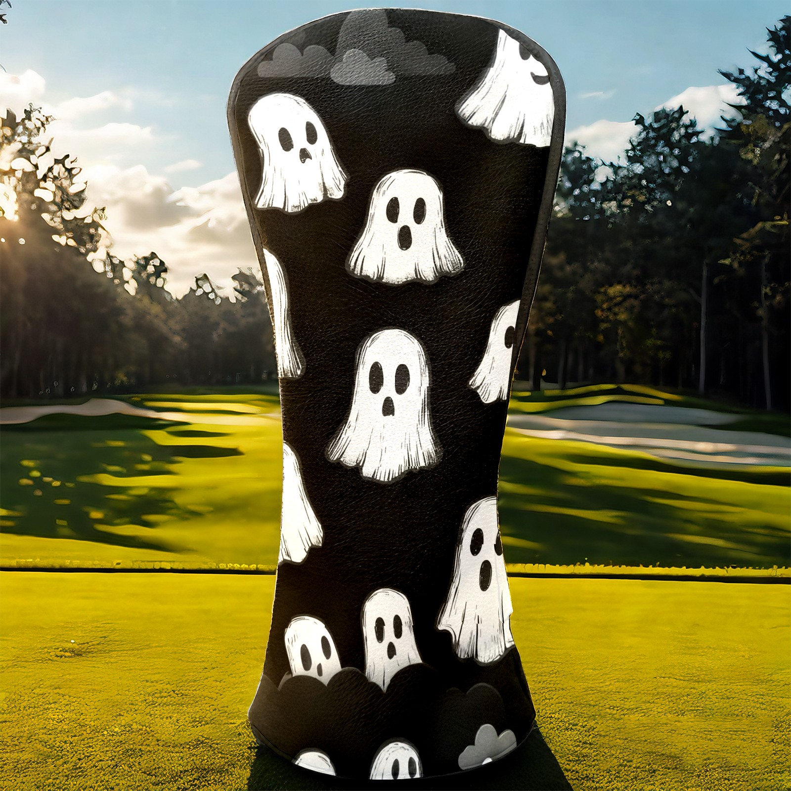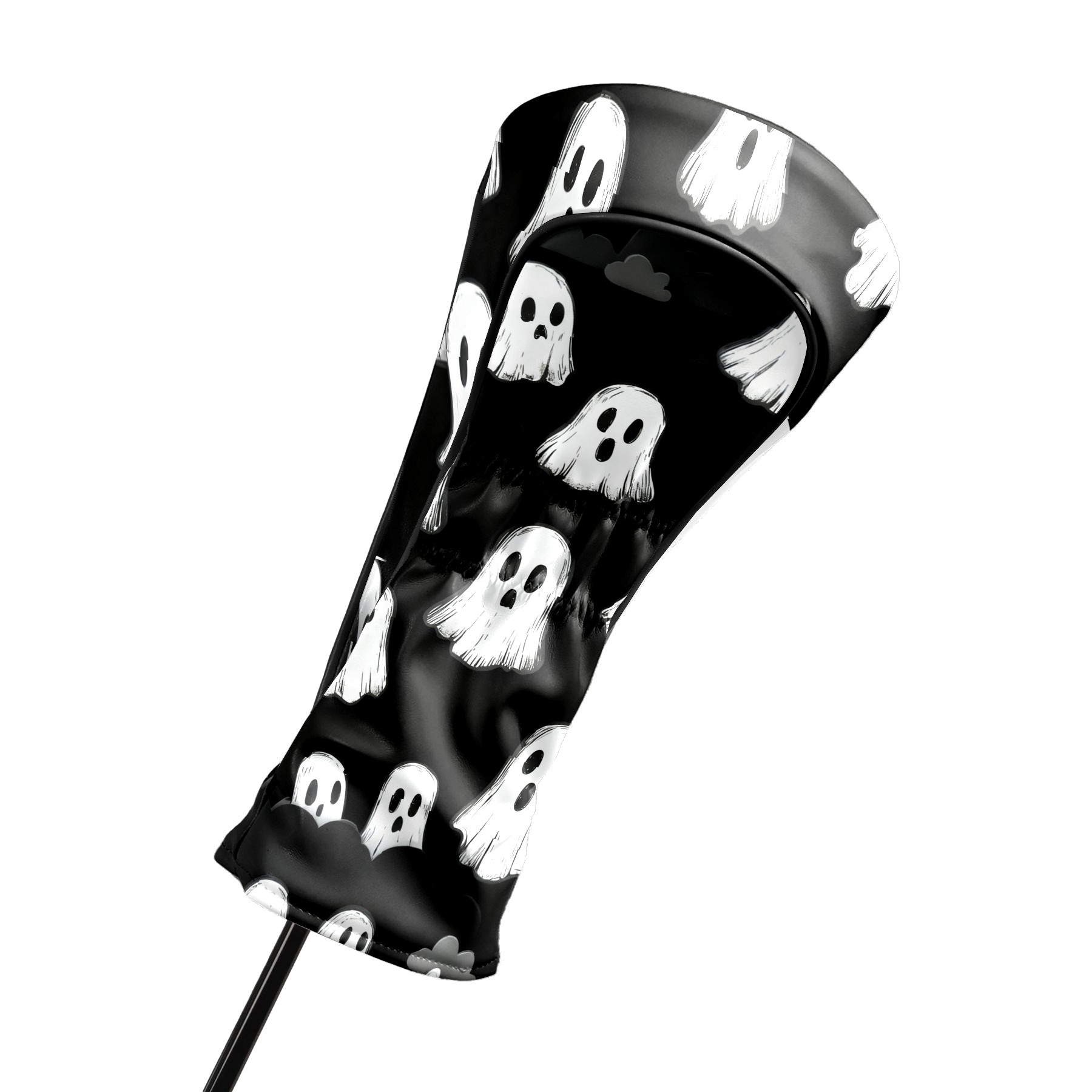 Golf Driver Head Covers Fairway Wood Headcovers, Premium Leather Golf Club Covers with Anti-Scratch Lining 1/3/5 Wood Cover for golf clubs for Women Men (White Ghost Pattern)