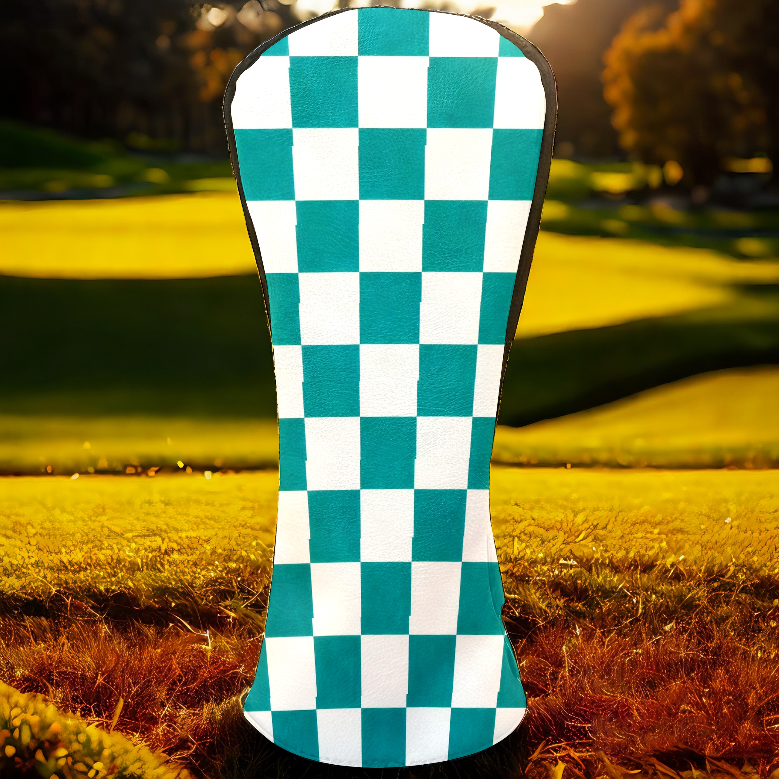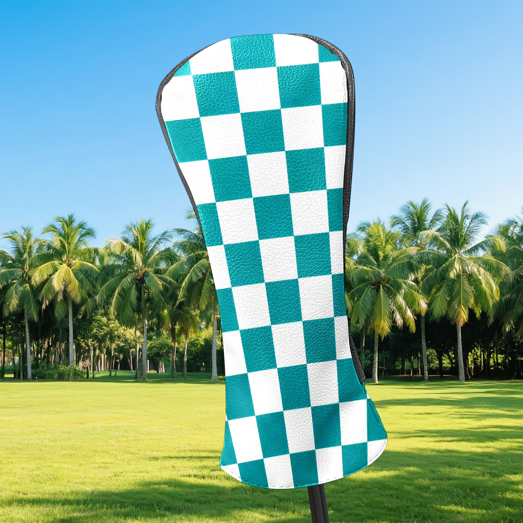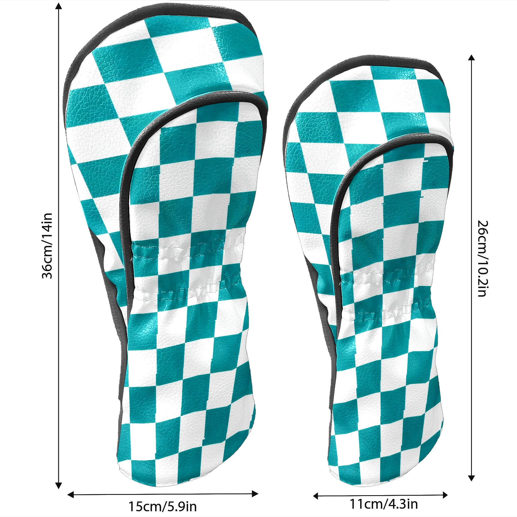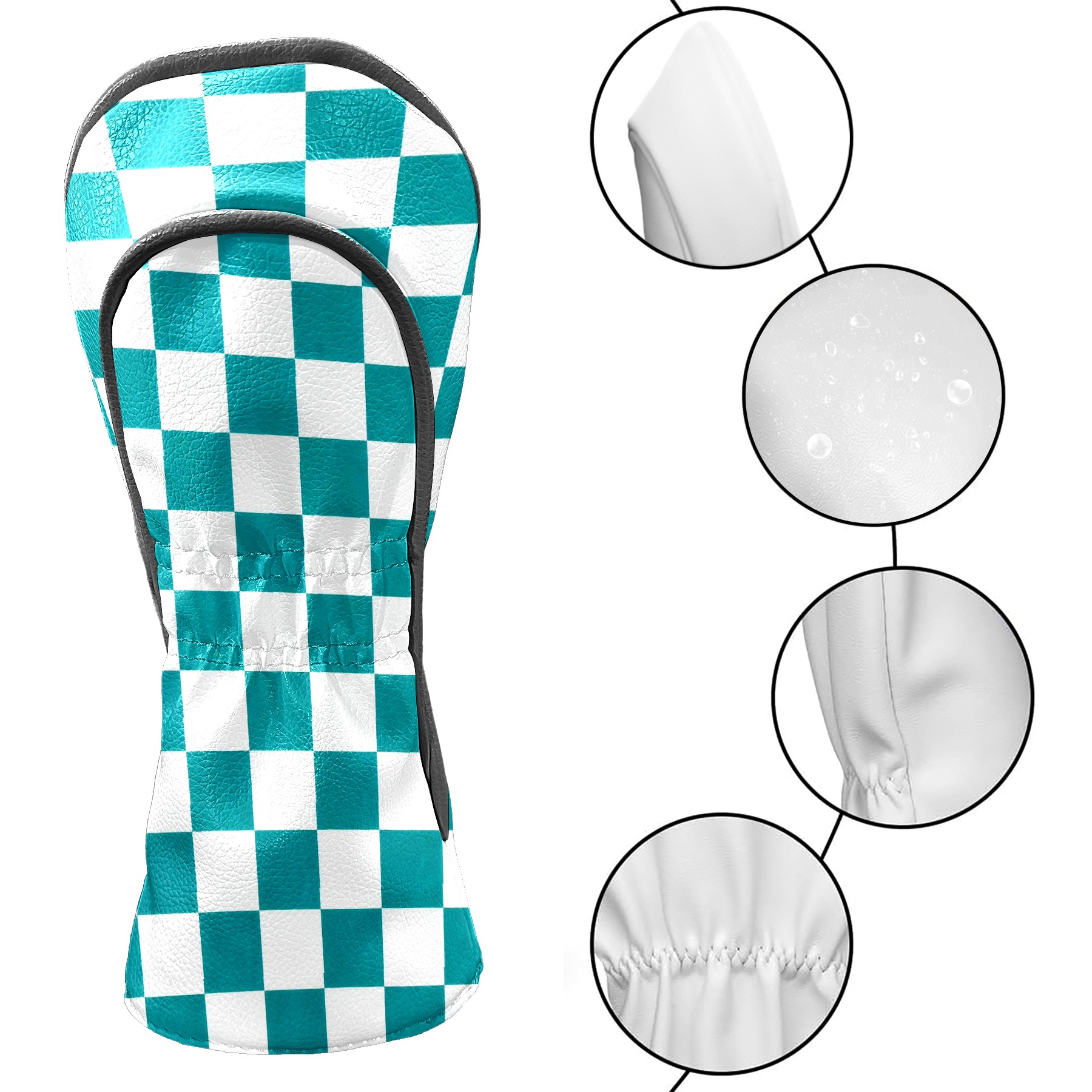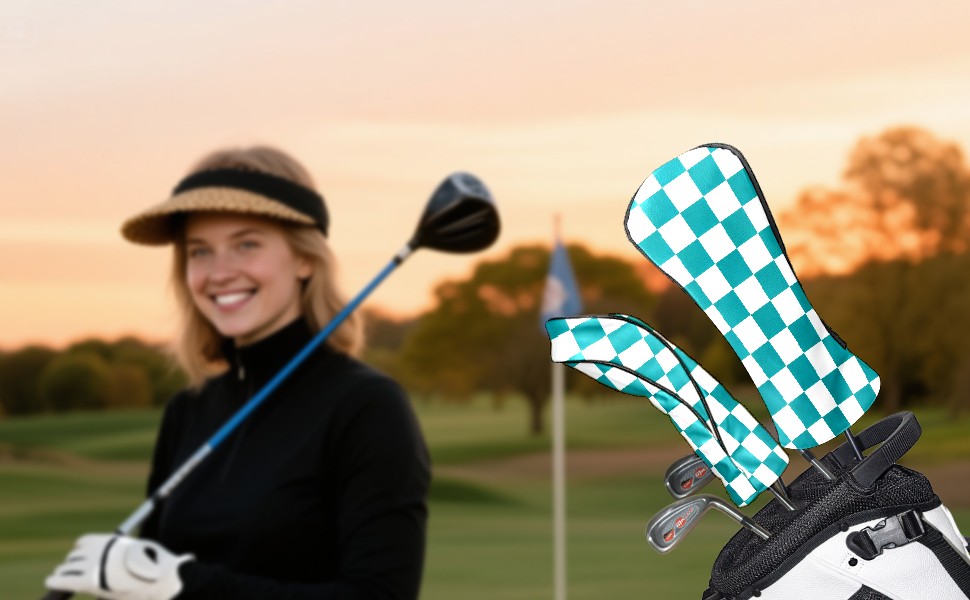 Golf Driver Head Covers Fairway Wood Headcovers, Premium Leather Golf Club Covers with Anti-Scratch Lining 1/3/5 Wood Cover for golf clubs for Women Men (Teal White Checkered)
