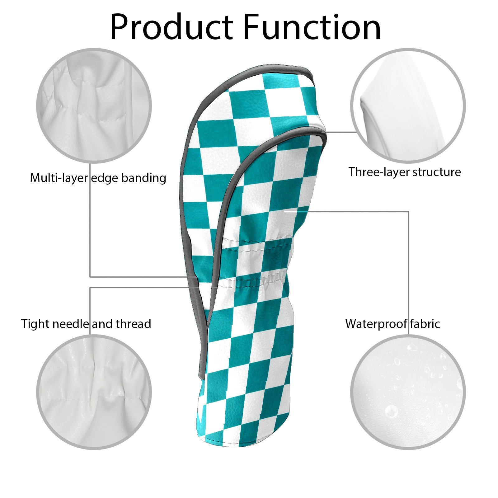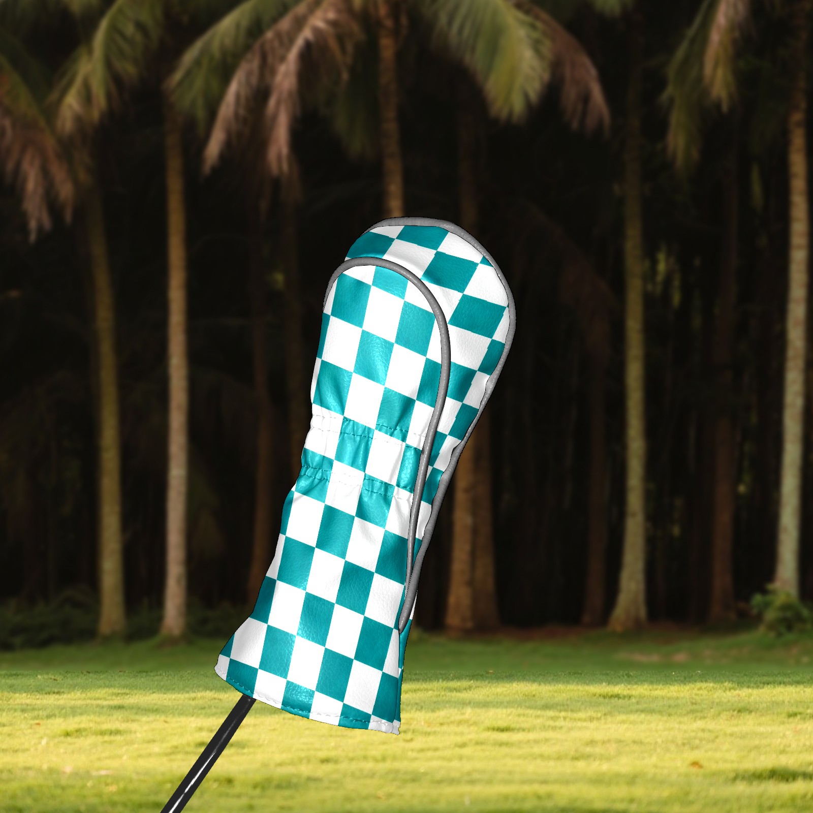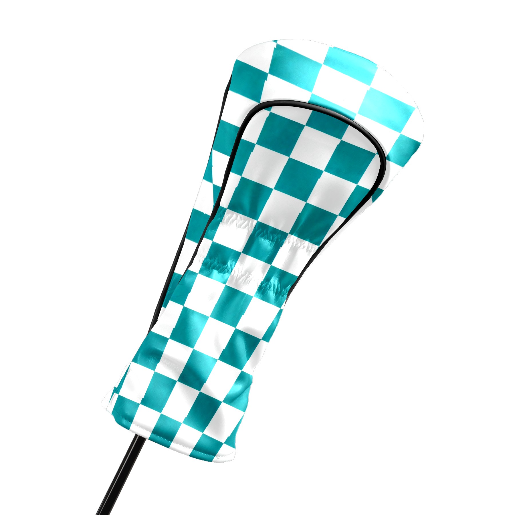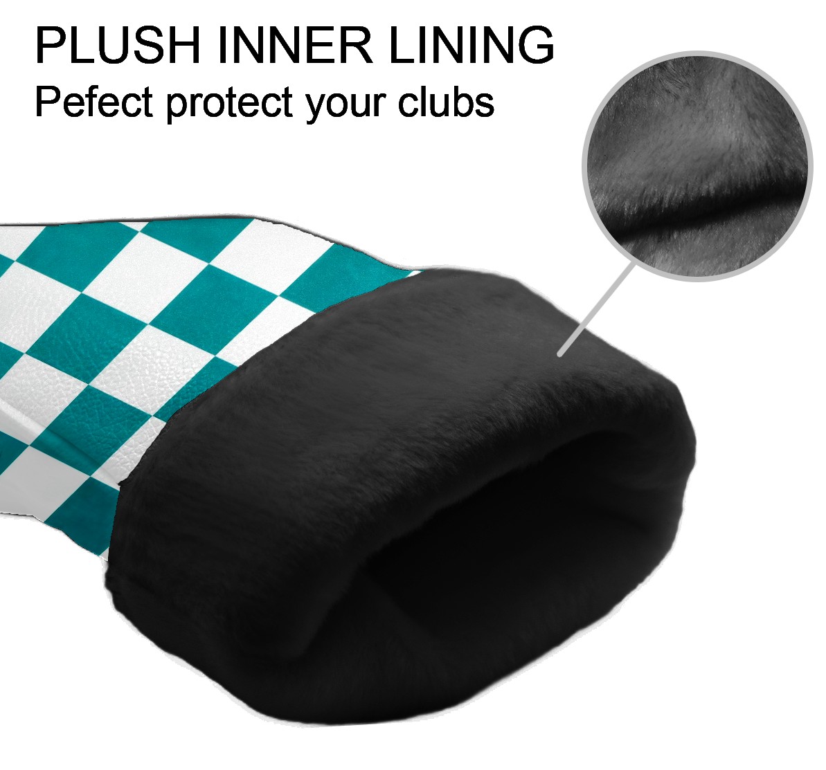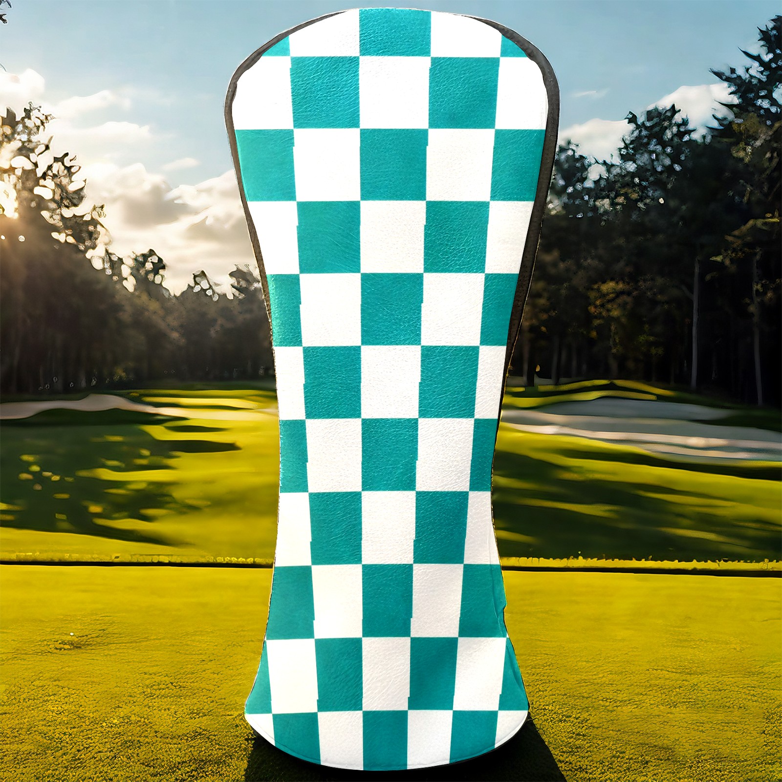 Golf Driver Head Covers Fairway Wood Headcovers, Premium Leather Golf Club Covers with Anti-Scratch Lining 1/3/5 Wood Cover for golf clubs for Women Men (Teal White Checkered)