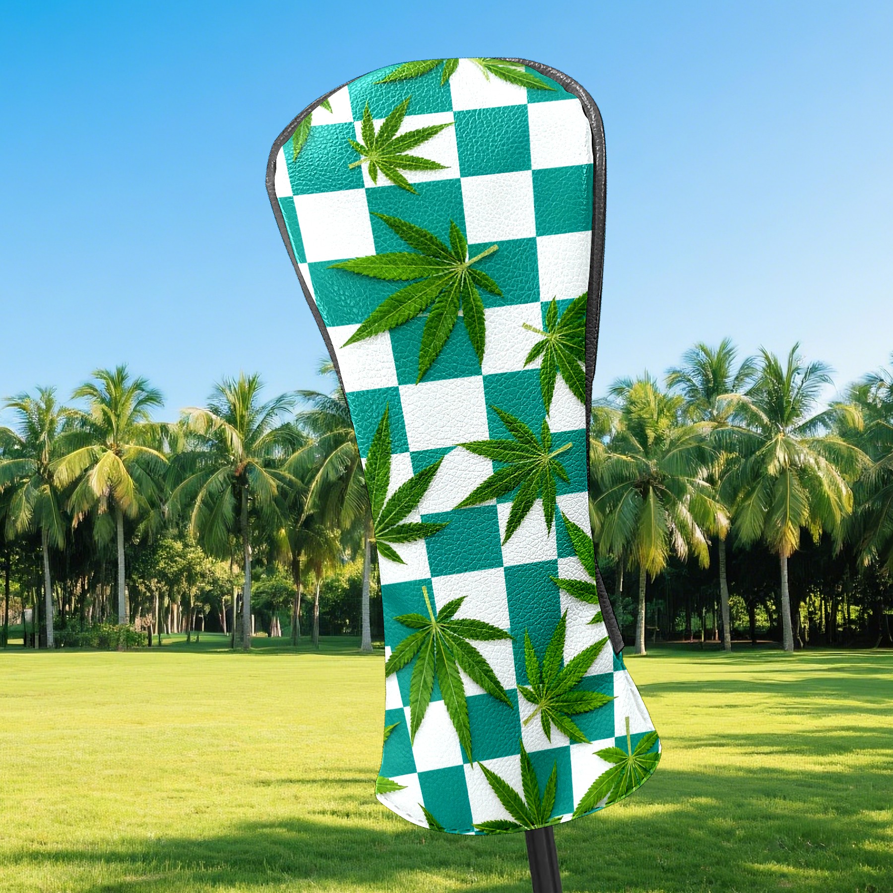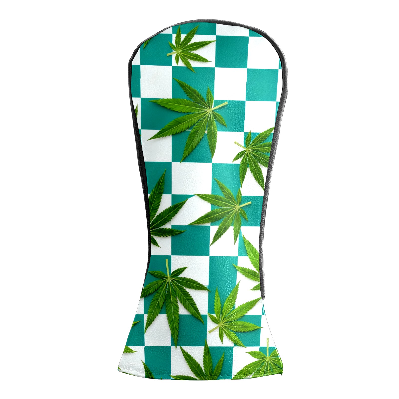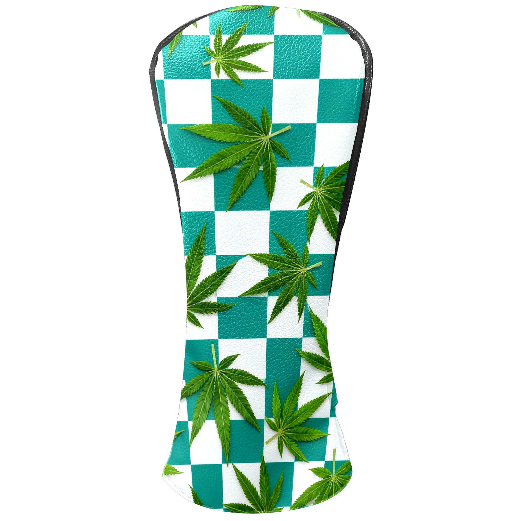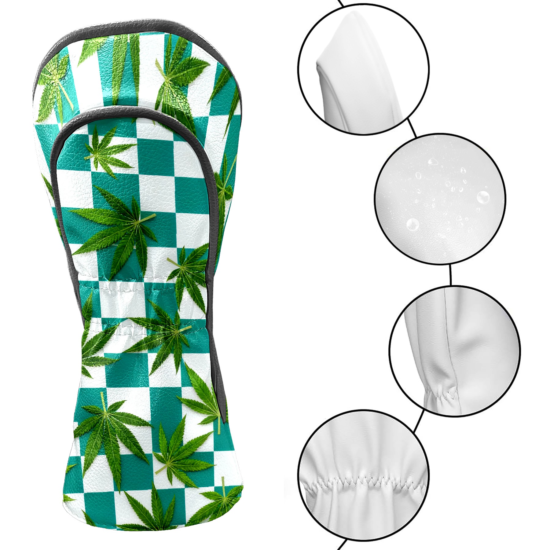 Golf Driver Head Covers Fairway Wood Headcovers, Premium Leather Golf Club Covers with Anti-Scratch Lining 1/3/5 Wood Cover for golf clubs for Women Men (Jimeng-2025-10-16-3538-参考图1生成蓝绿色和白色棋盘格图案,蓝绿色更深一些,并将叶子修改成大麻叶子的形状)