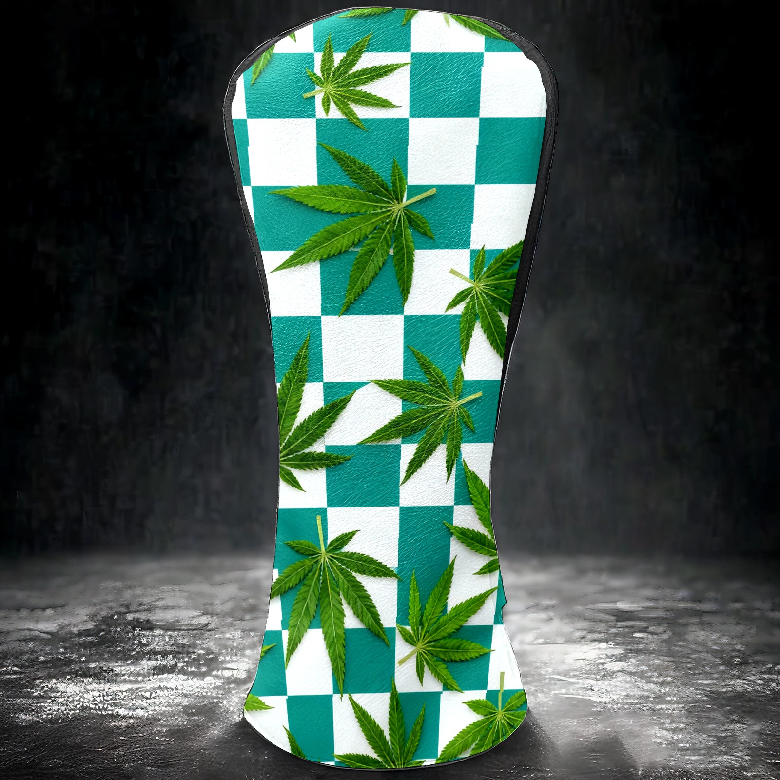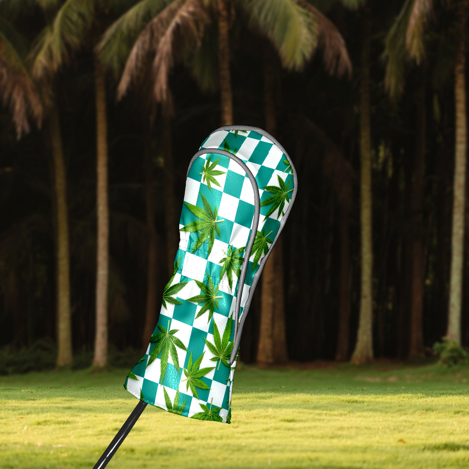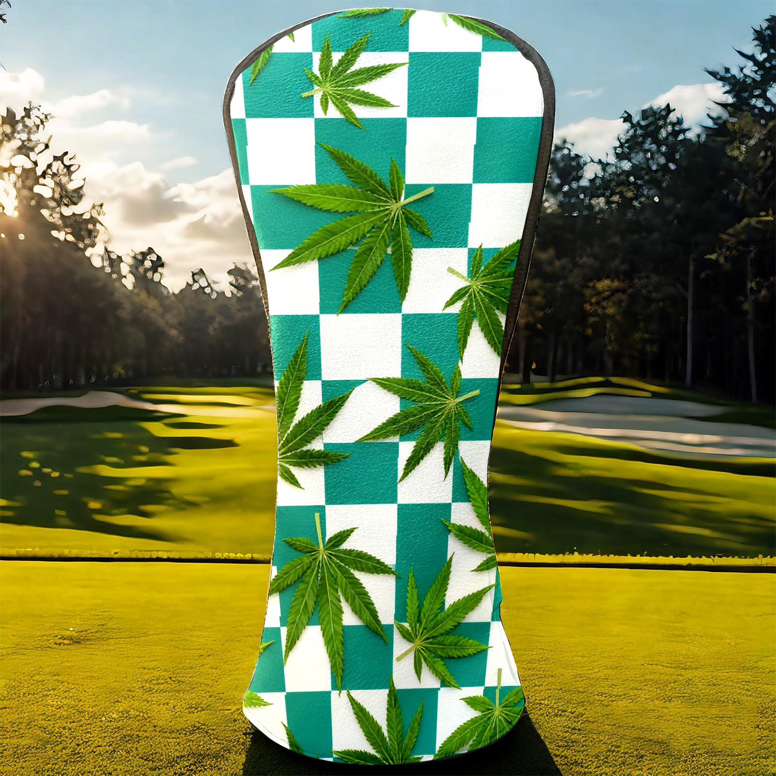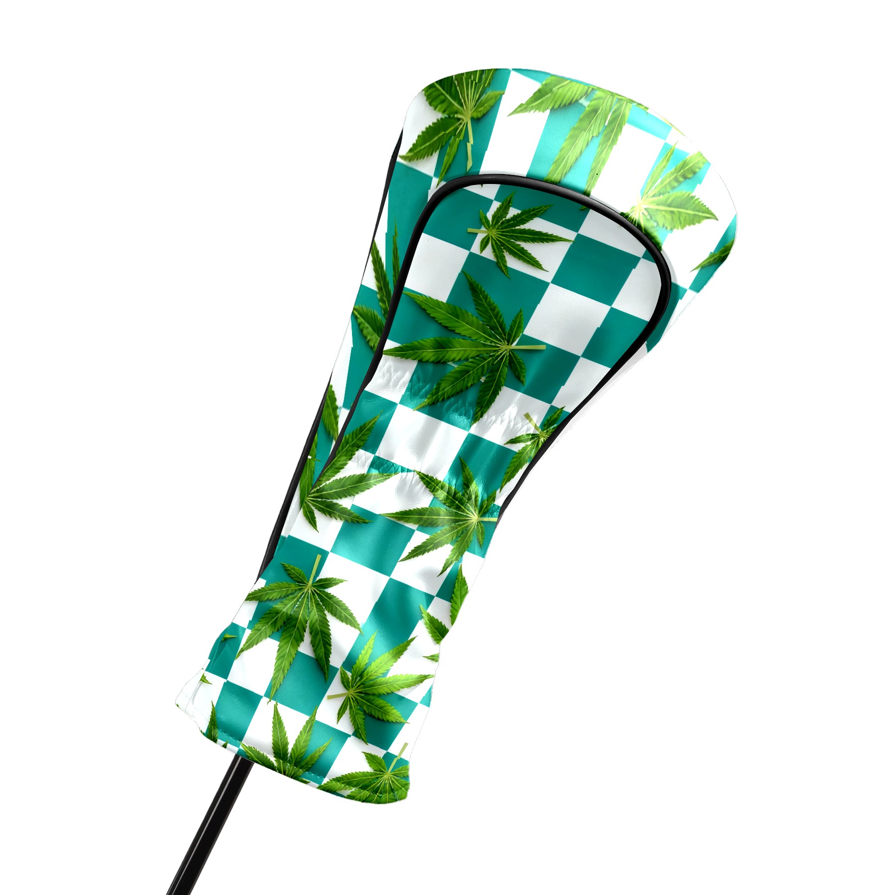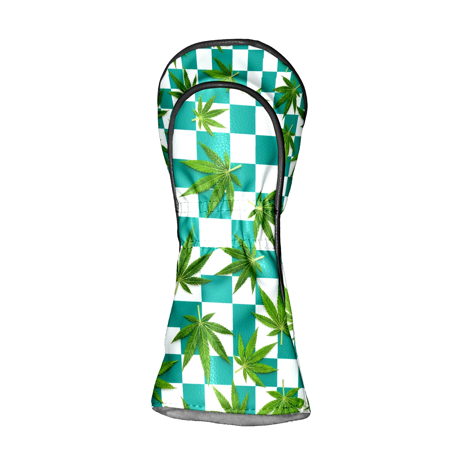 Golf Driver Head Covers Fairway Wood Headcovers, Premium Leather Golf Club Covers with Anti-Scratch Lining 1/3/5 Wood Cover for golf clubs for Women Men (Jimeng-2025-10-16-3538-参考图1生成蓝绿色和白色棋盘格图案,蓝绿色更深一些,并将叶子修改成大麻叶子的形状)