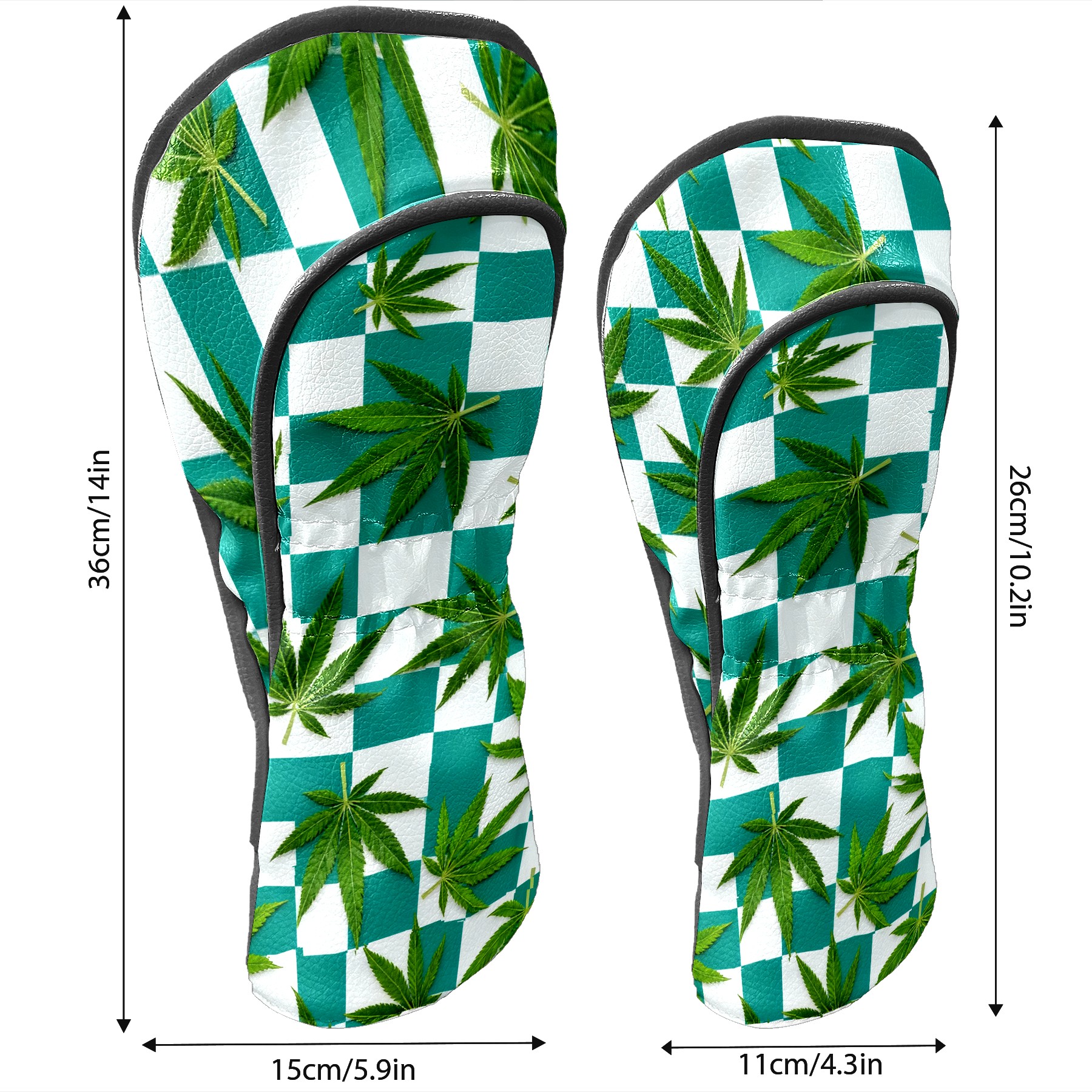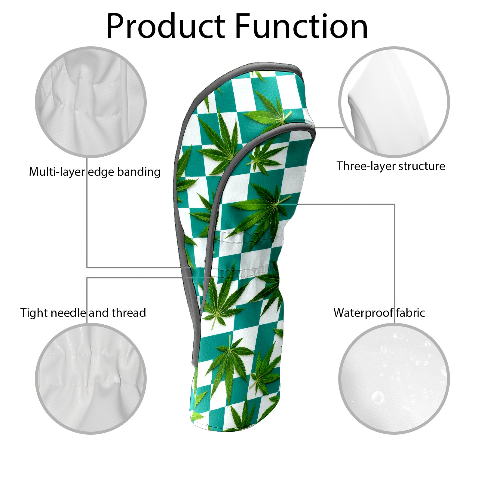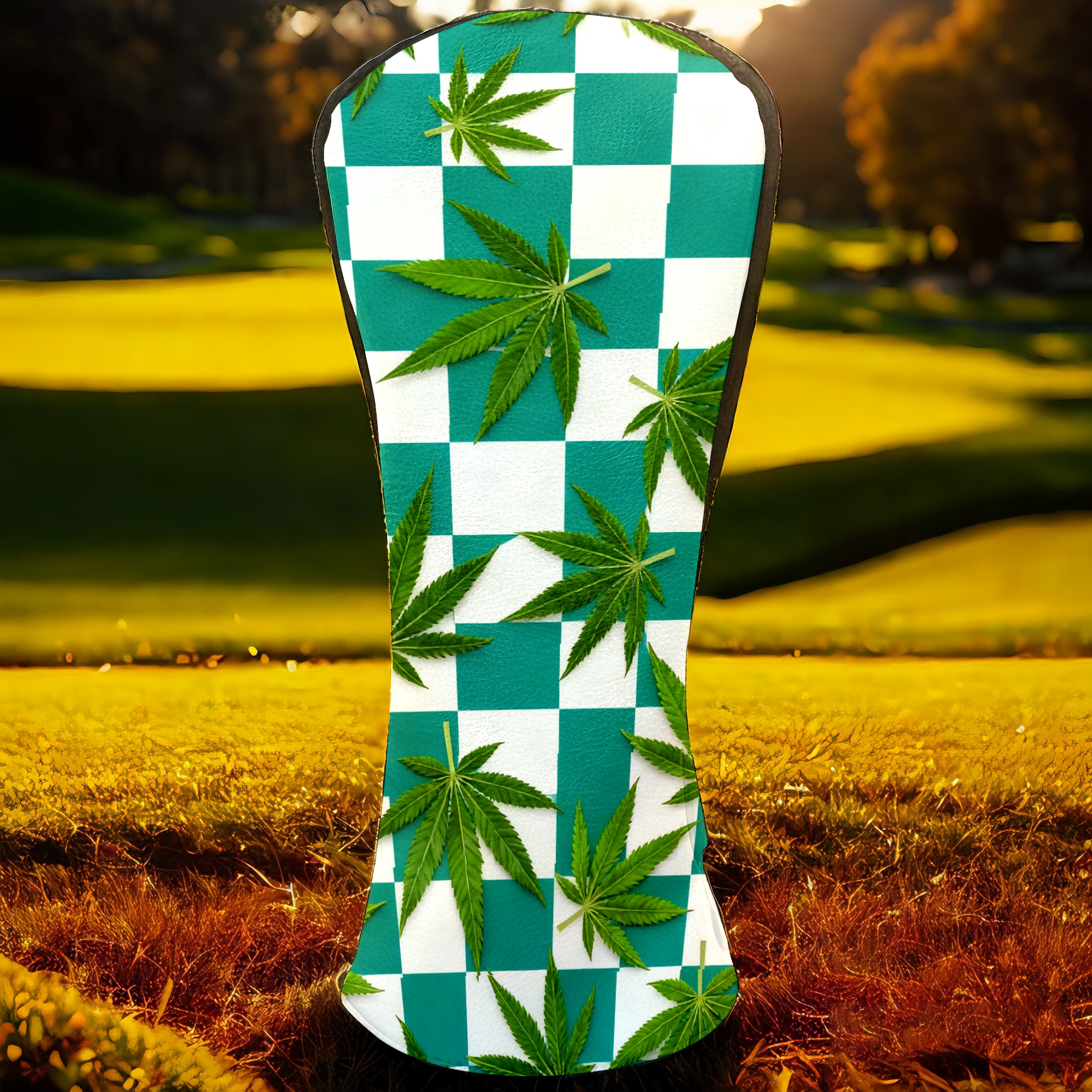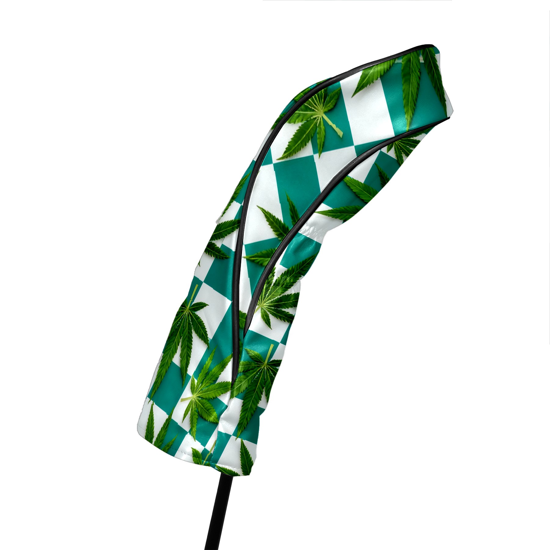 Golf Driver Head Covers Fairway Wood Headcovers, Premium Leather Golf Club Covers with Anti-Scratch Lining 1/3/5 Wood Cover for golf clubs for Women Men (Jimeng-2025-10-16-3538-参考图1生成蓝绿色和白色棋盘格图案,蓝绿色更深一些,并将叶子修改成大麻叶子的形状)