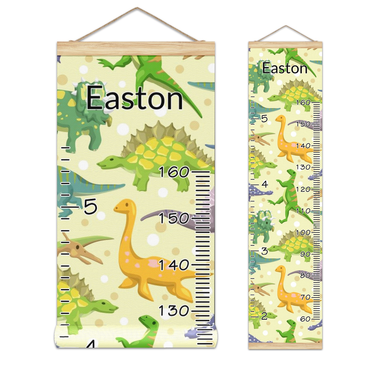 Personalized Kids Name Growth Chart Ruler for Wall Wood Frame Canvas Height Measure Chart 13.4x56 in Hanging Growth Chart Cartoon Dinosaur Animal10.17 Boys Girls Room Decor