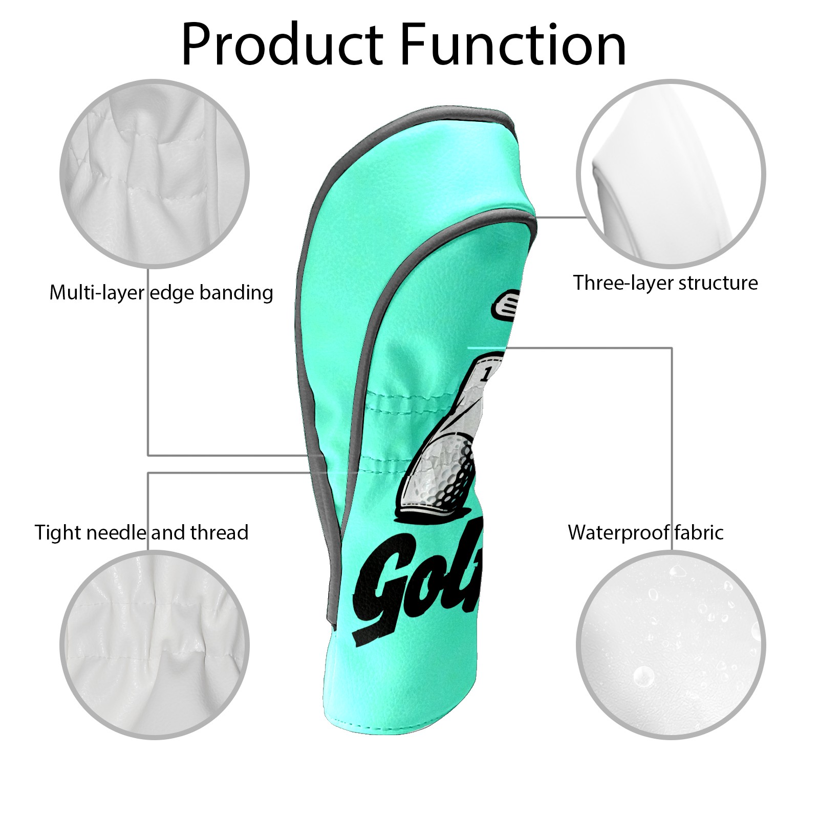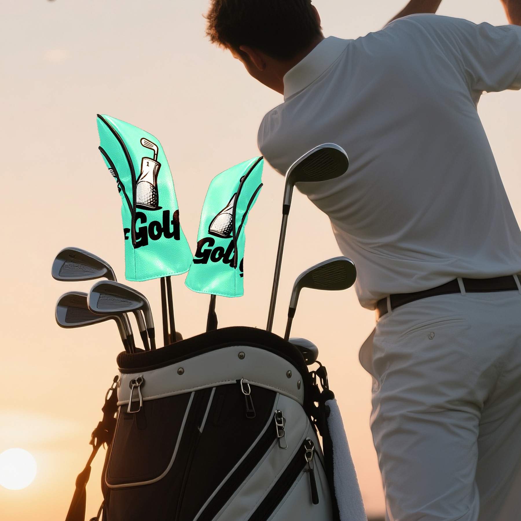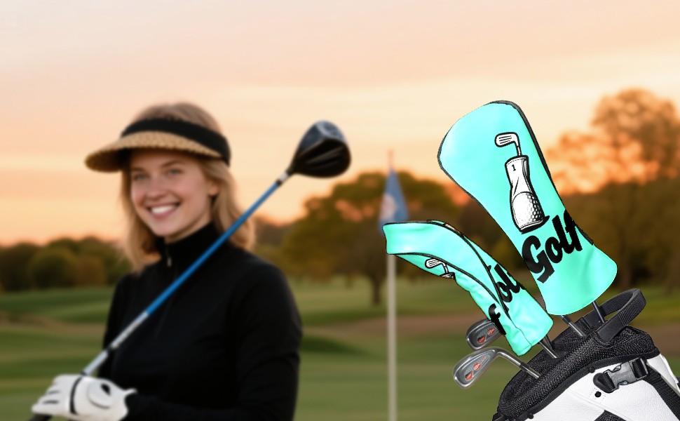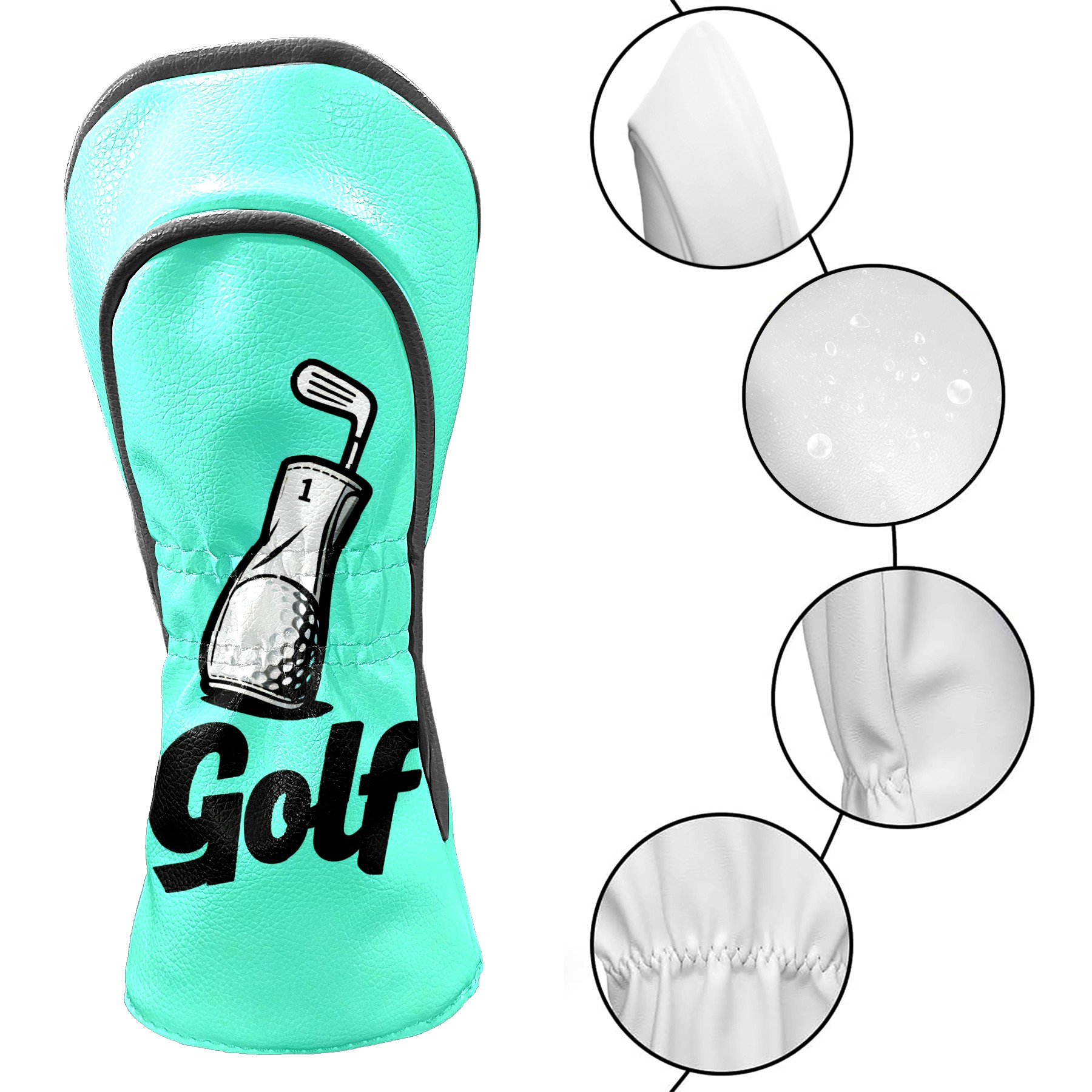 Golf Club Covers PU Leather Waterproof,Golf Club Head Covers for Fairway Woods and Hybrids Mint Blue Unisex Suitable for Most Brands