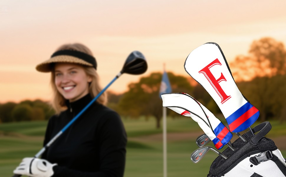 Golf Club Covers PU Leather Waterproof,Golf Club Head Covers for Fairway Woods and Hybrids Red F Unisex Suitable for Most Brands