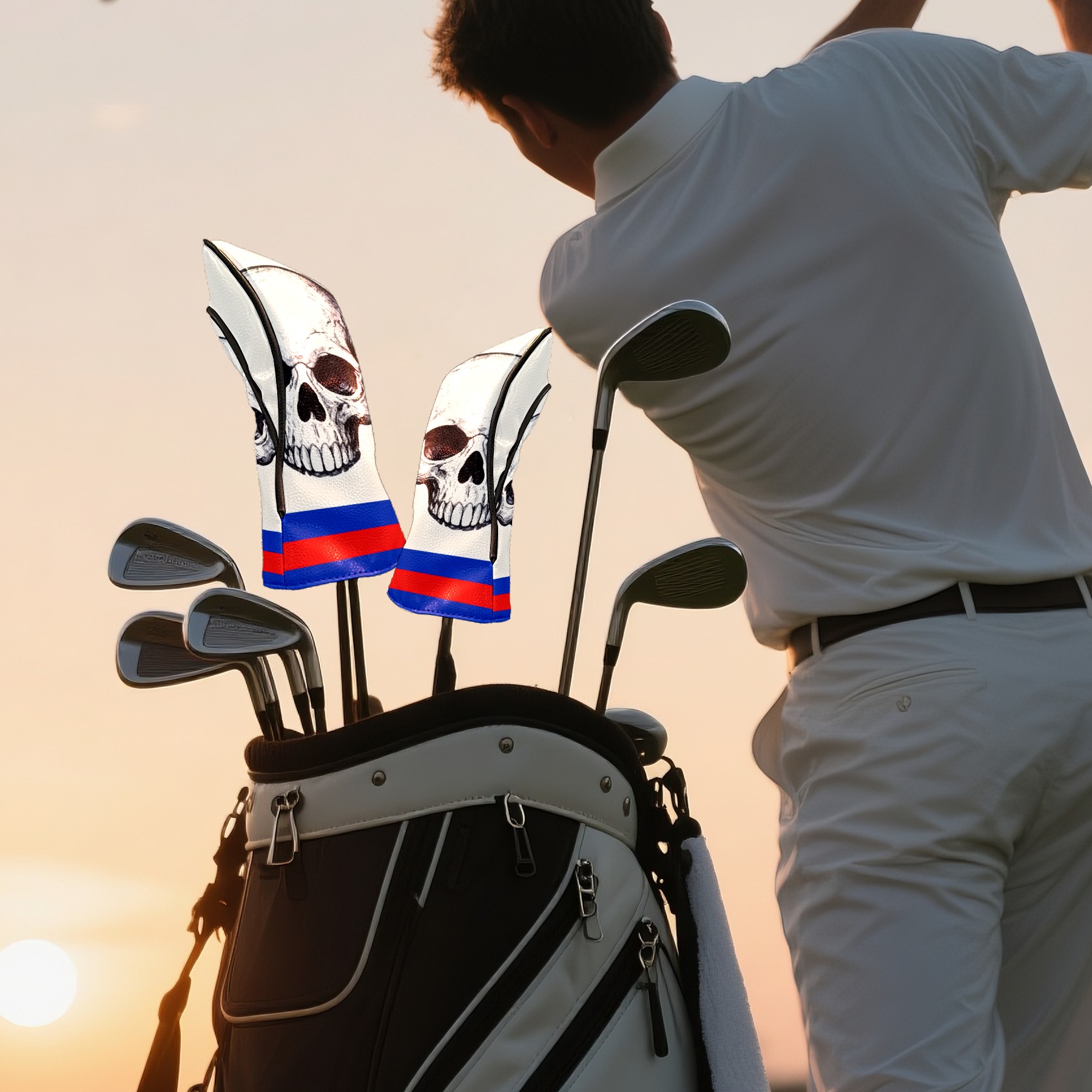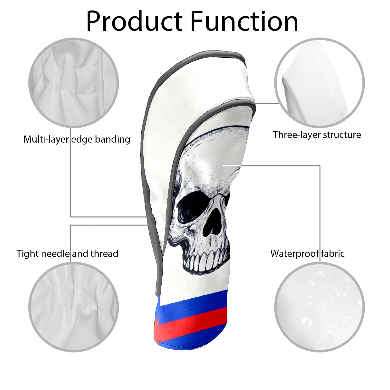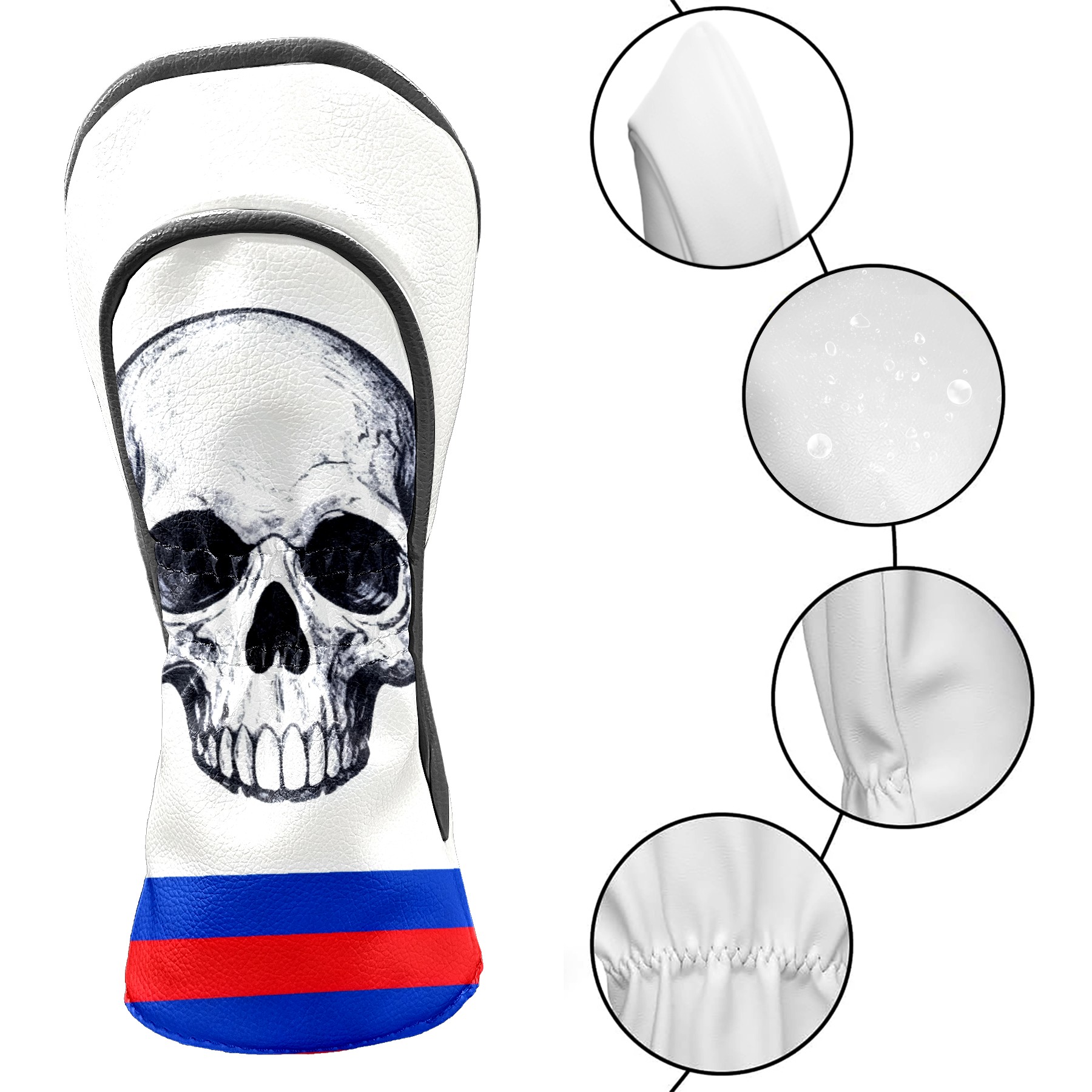 Golf Club Covers PU Leather Waterproof,Golf Club Head Covers for Fairway Woods and Hybrids White Skull Unisex Suitable for Most Brands
