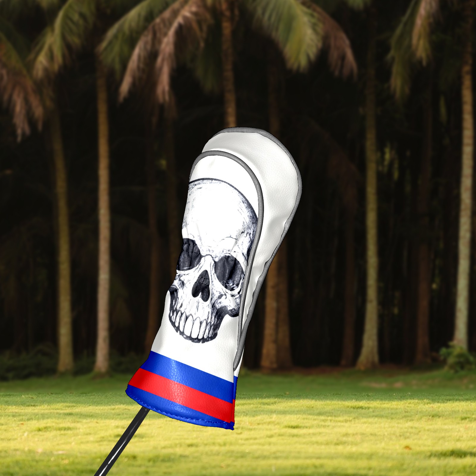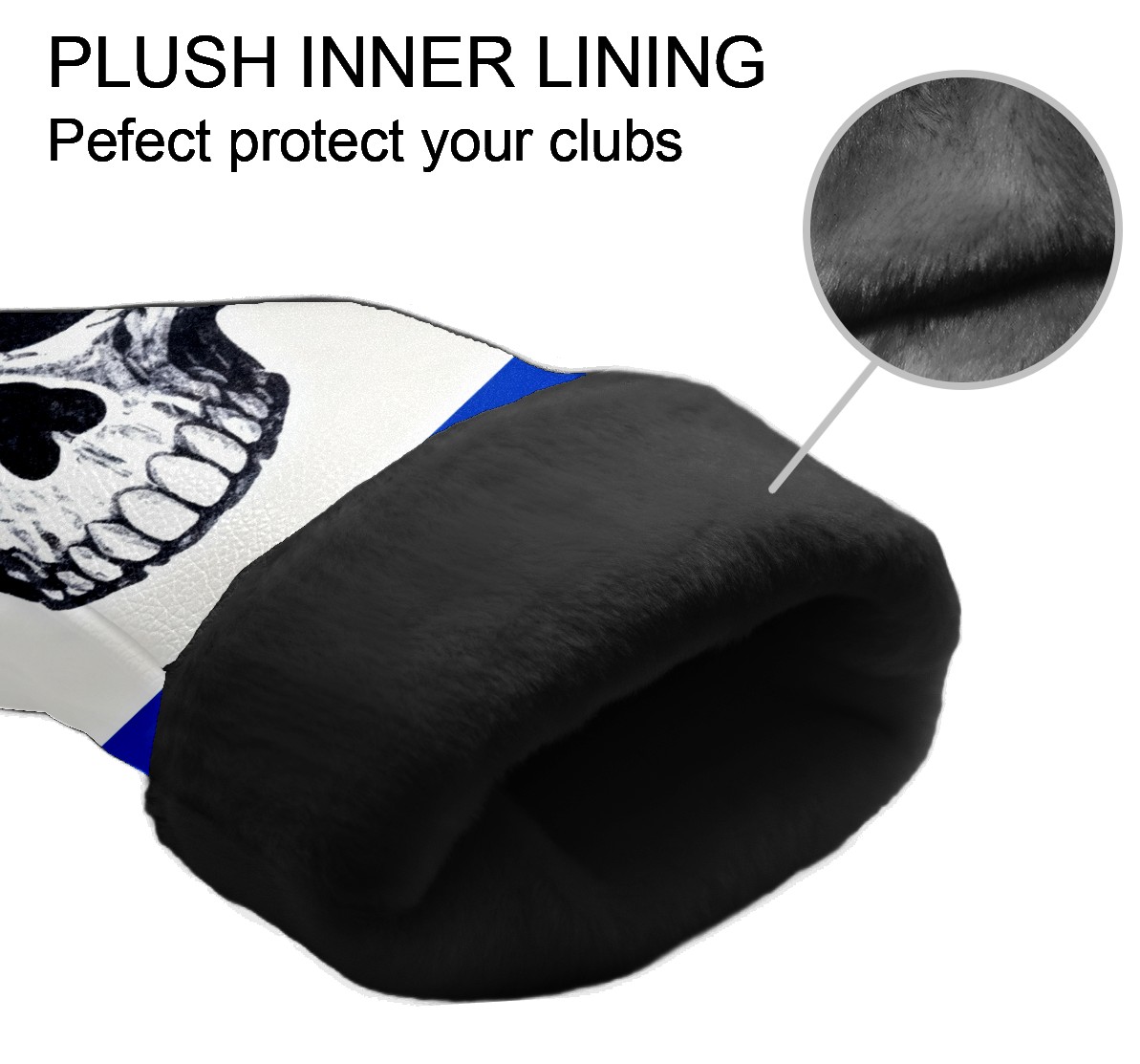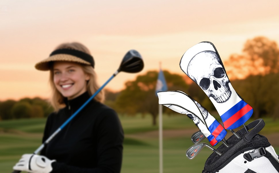 Golf Club Covers PU Leather Waterproof,Golf Club Head Covers for Fairway Woods and Hybrids White Skull Unisex Suitable for Most Brands