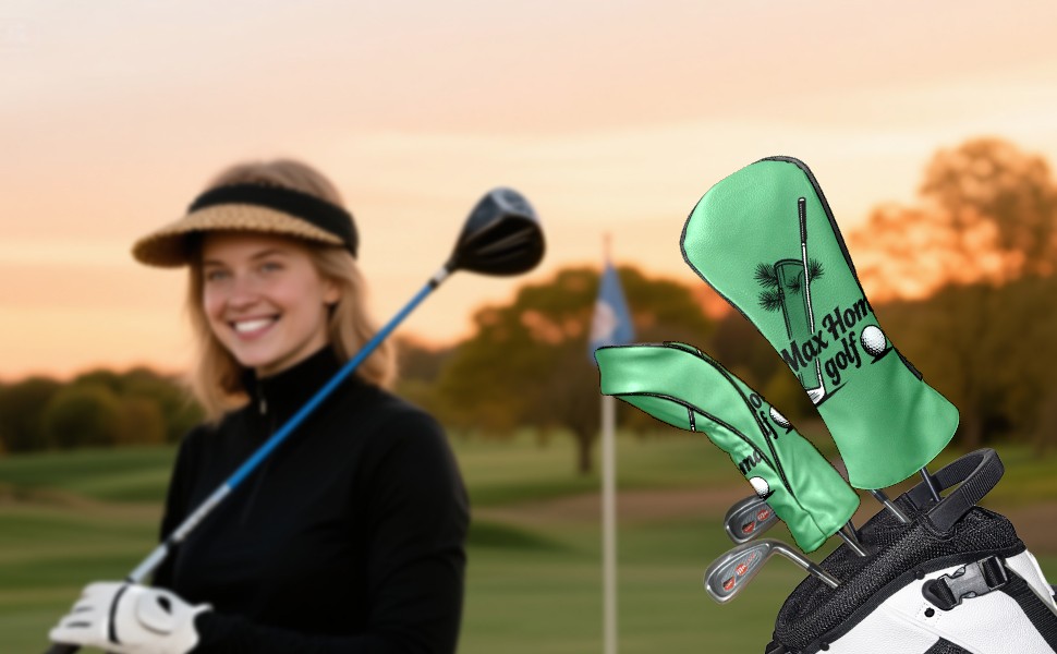Golf Club Covers PU Leather Waterproof,Golf Club Head Covers for Fairway Woods and Hybrids Green Unisex Suitable for Most Brands