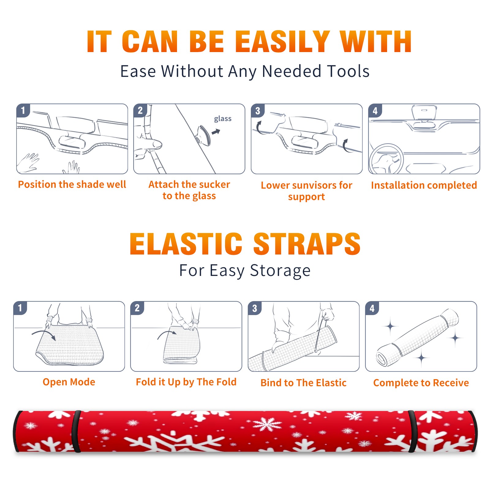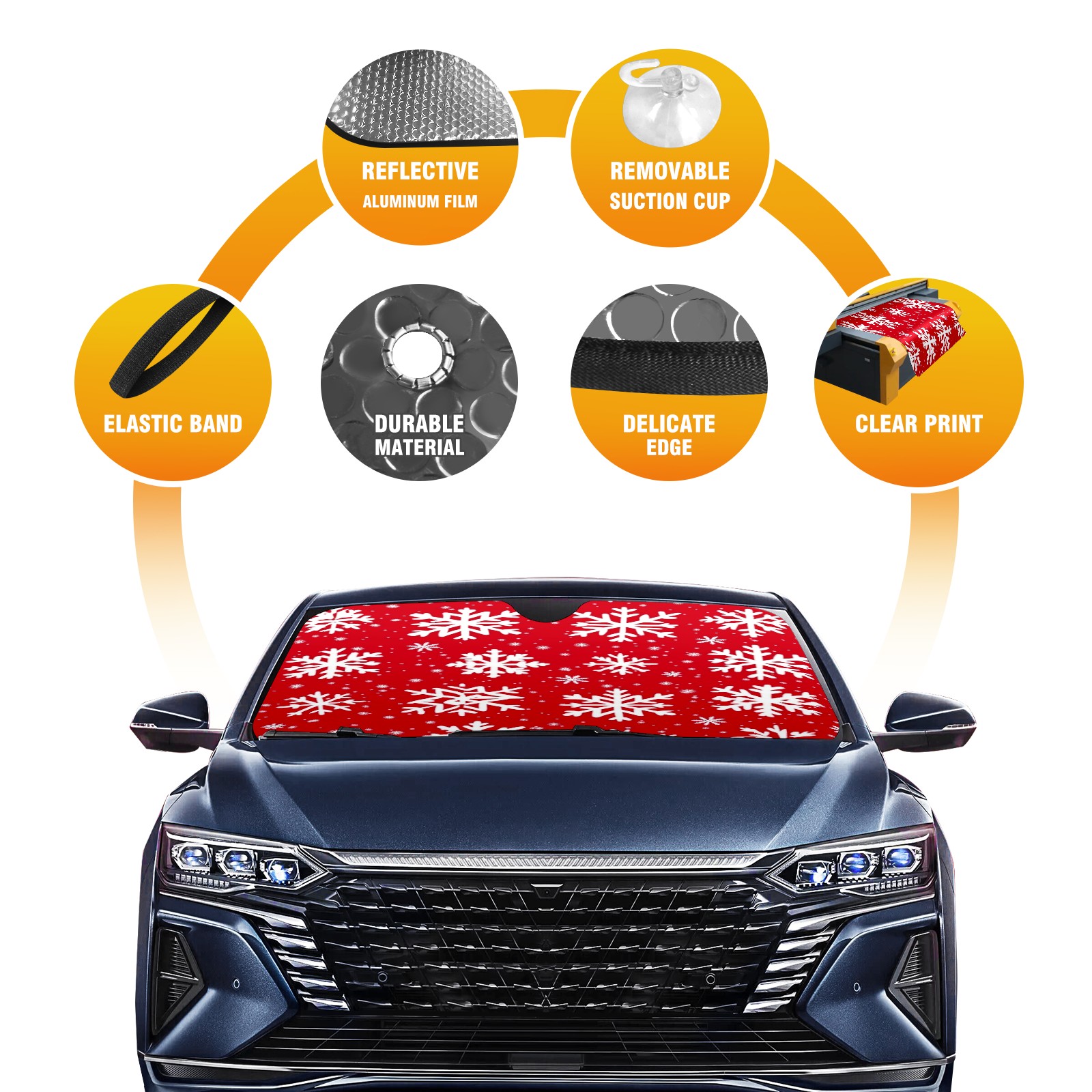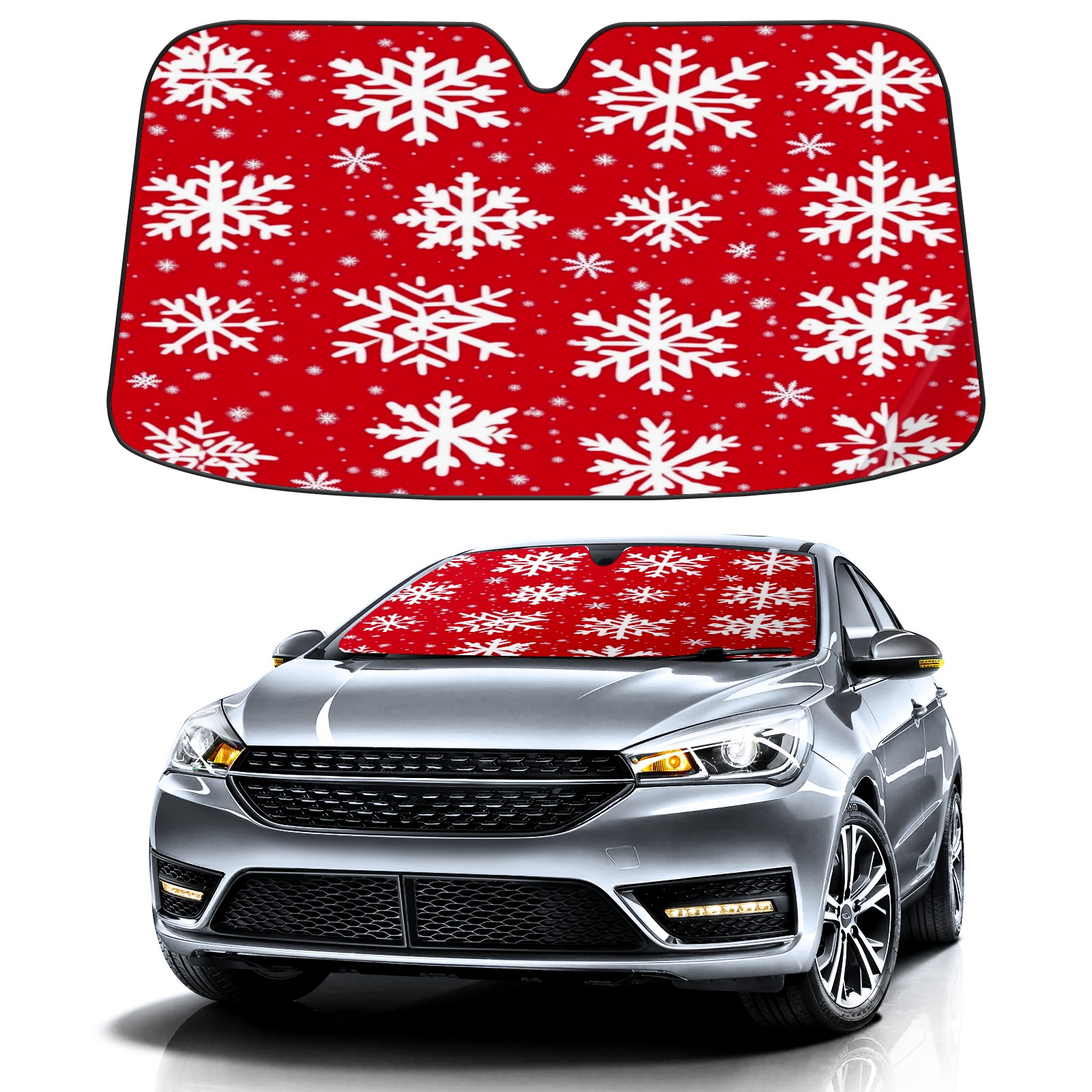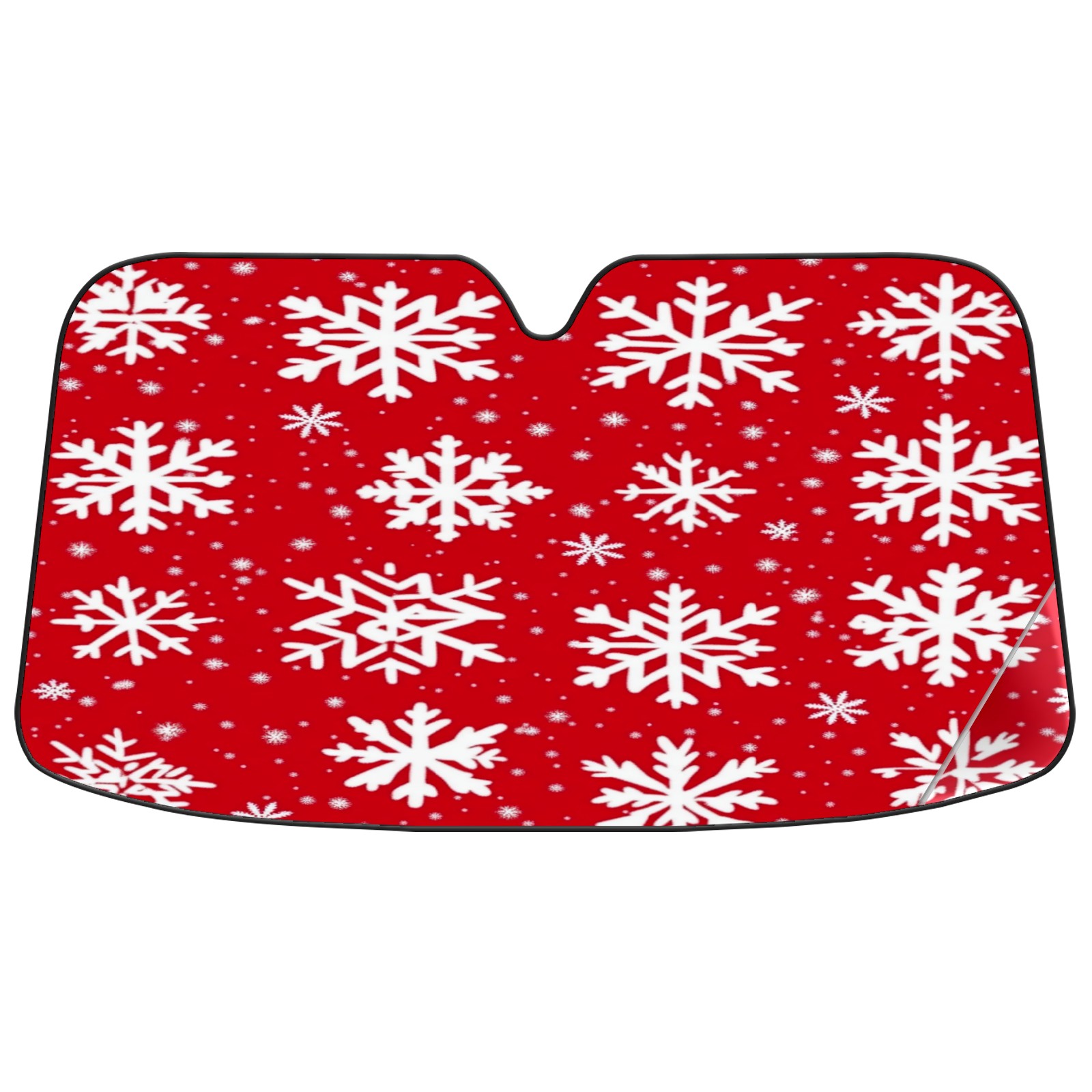 Car Windshield Sun Shade with UV Block & Heat Protection, Universal Foldable Front Window Sunshade for Automotive Sun Protection, Easy Fold Design(White Snowflakes)