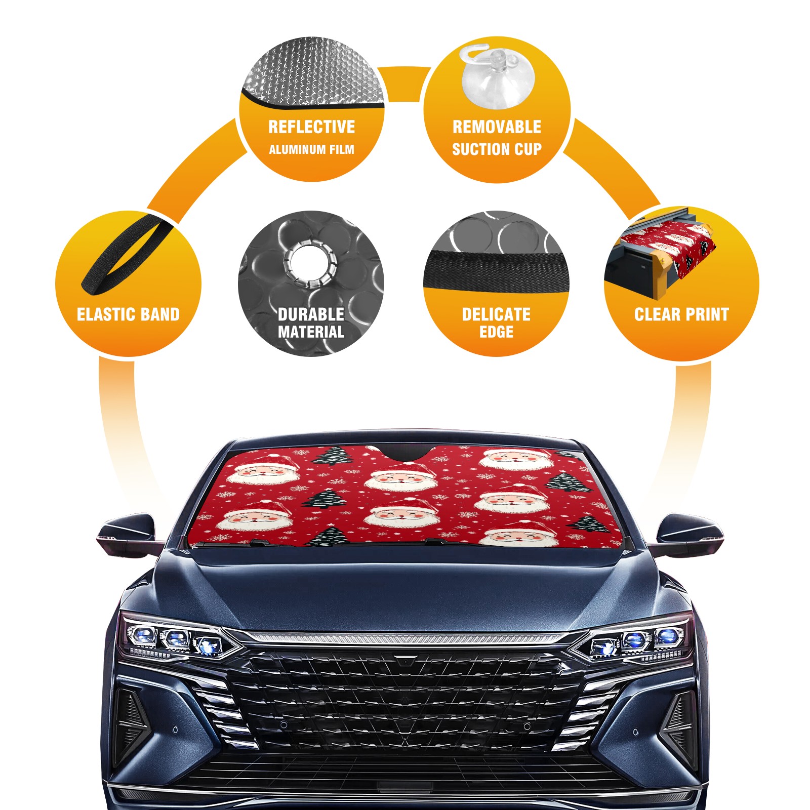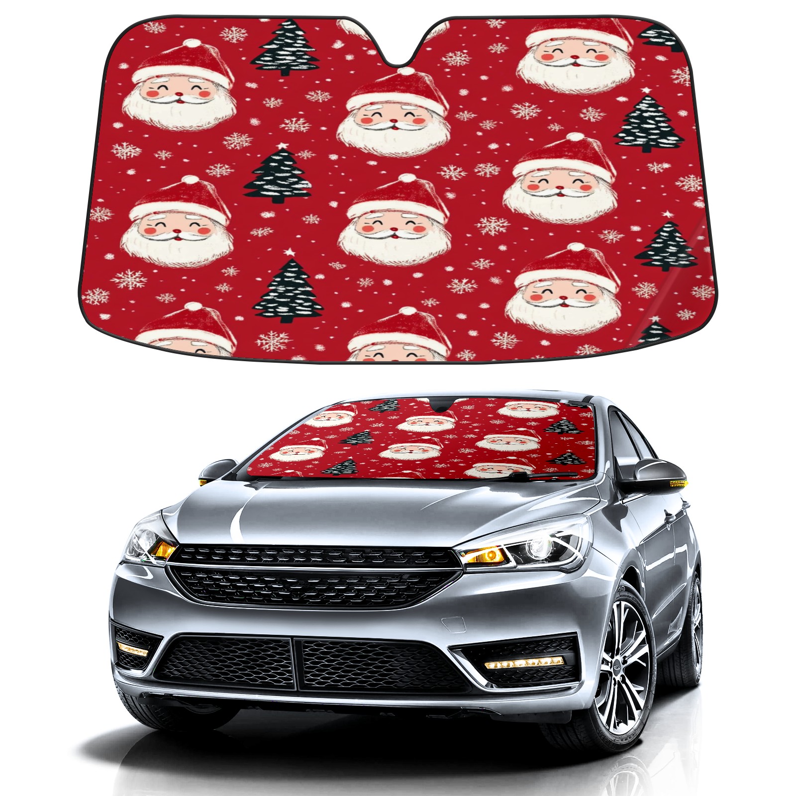 Car Windshield Sun Shade with UV Block & Heat Protection, Universal Foldable Front Window Sunshade for Automotive Sun Protection, Easy Fold Design(Santa Claus And Christmas Trees)