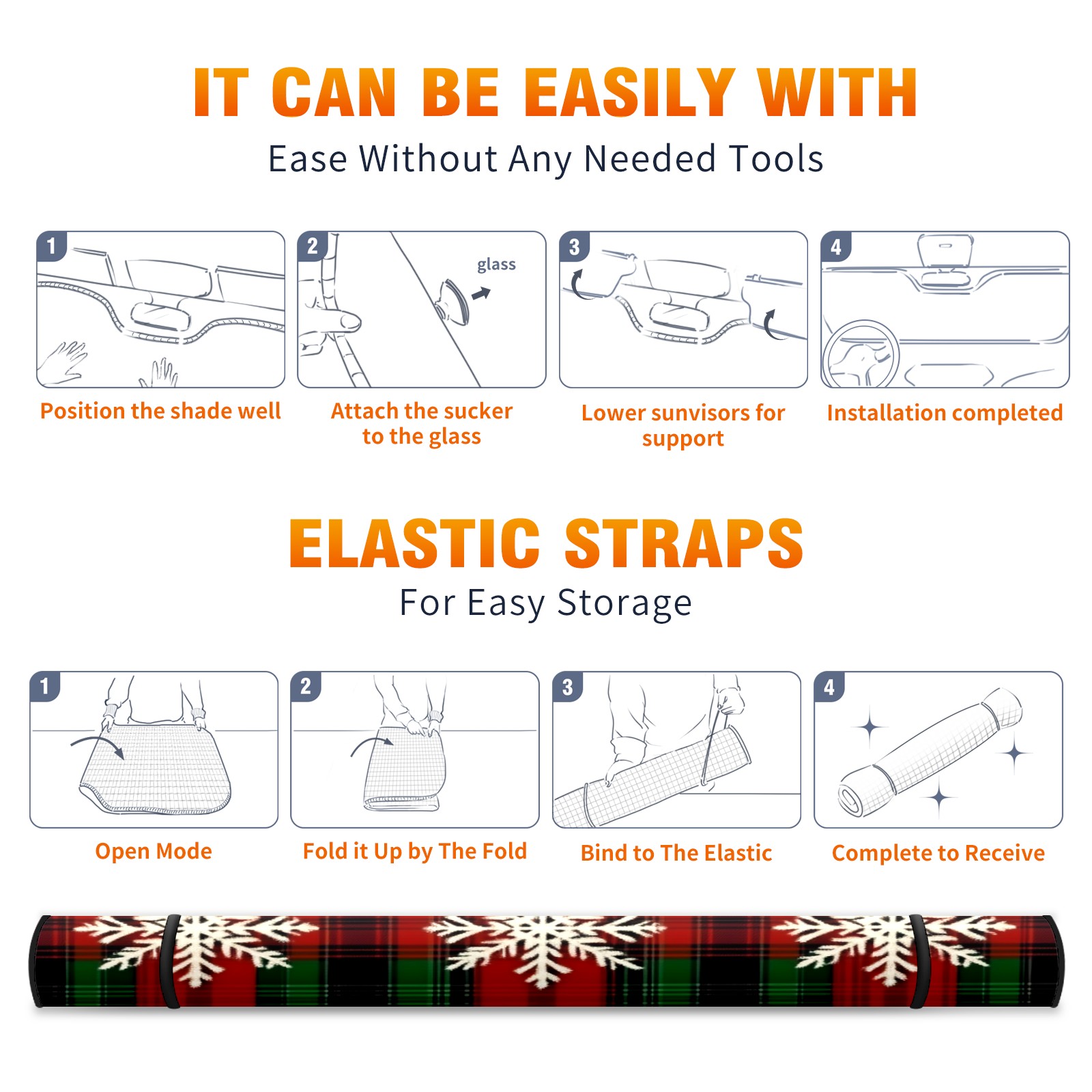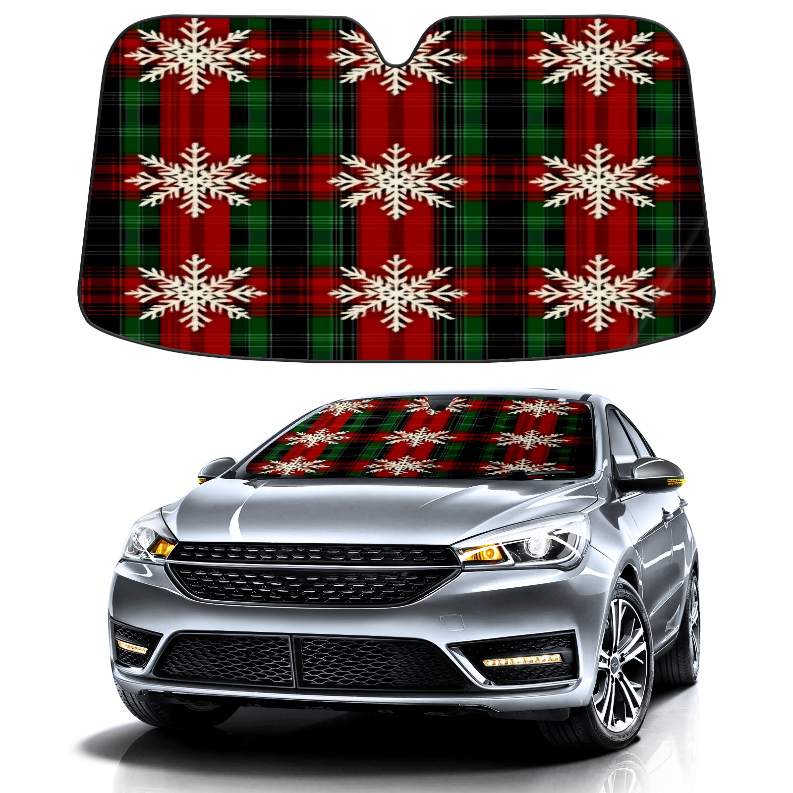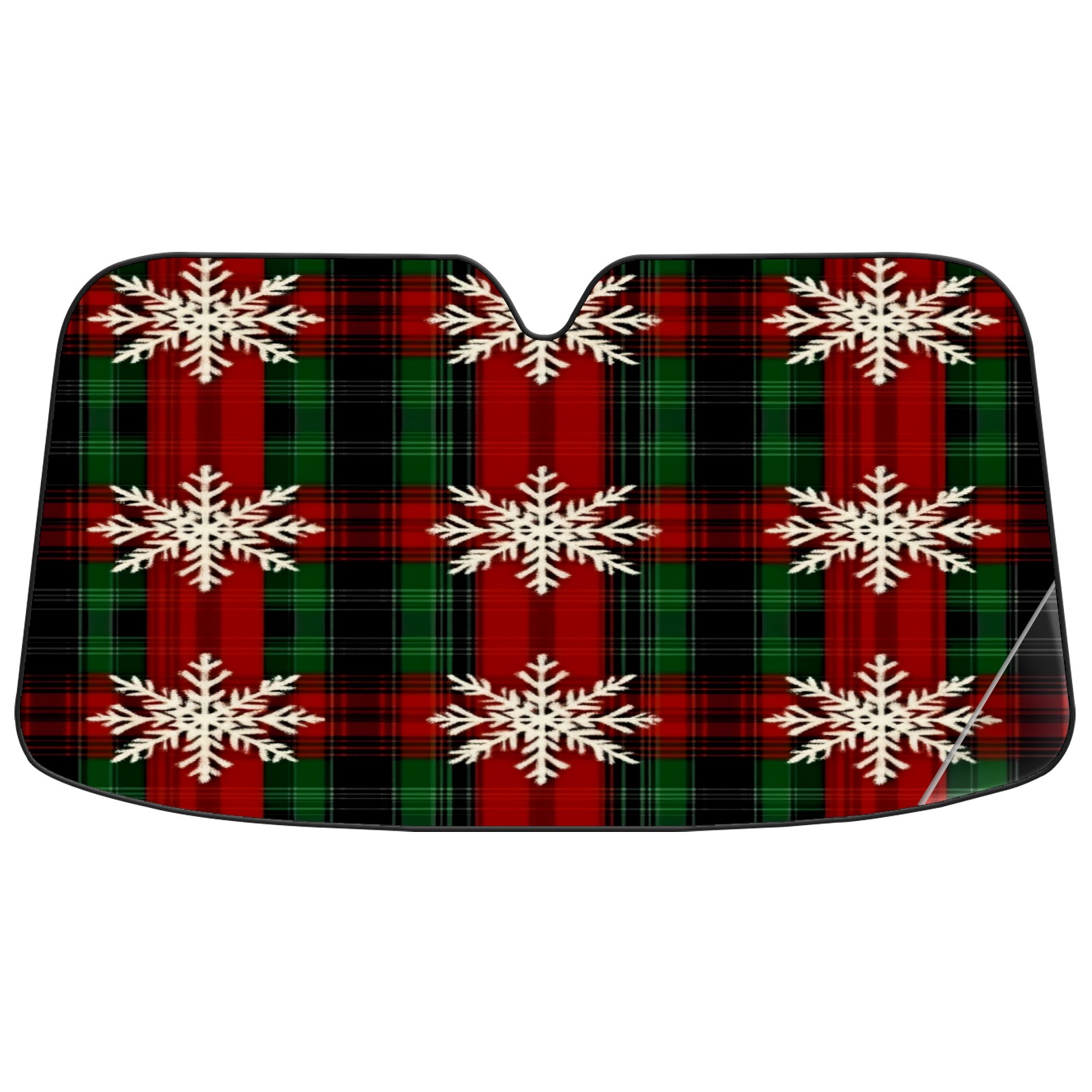 Car Windshield Sun Shade with UV Block & Heat Protection, Universal Foldable Front Window Sunshade for Automotive Sun Protection, Easy Fold Design(Red Green And Black Tartan Plaid Seamless)