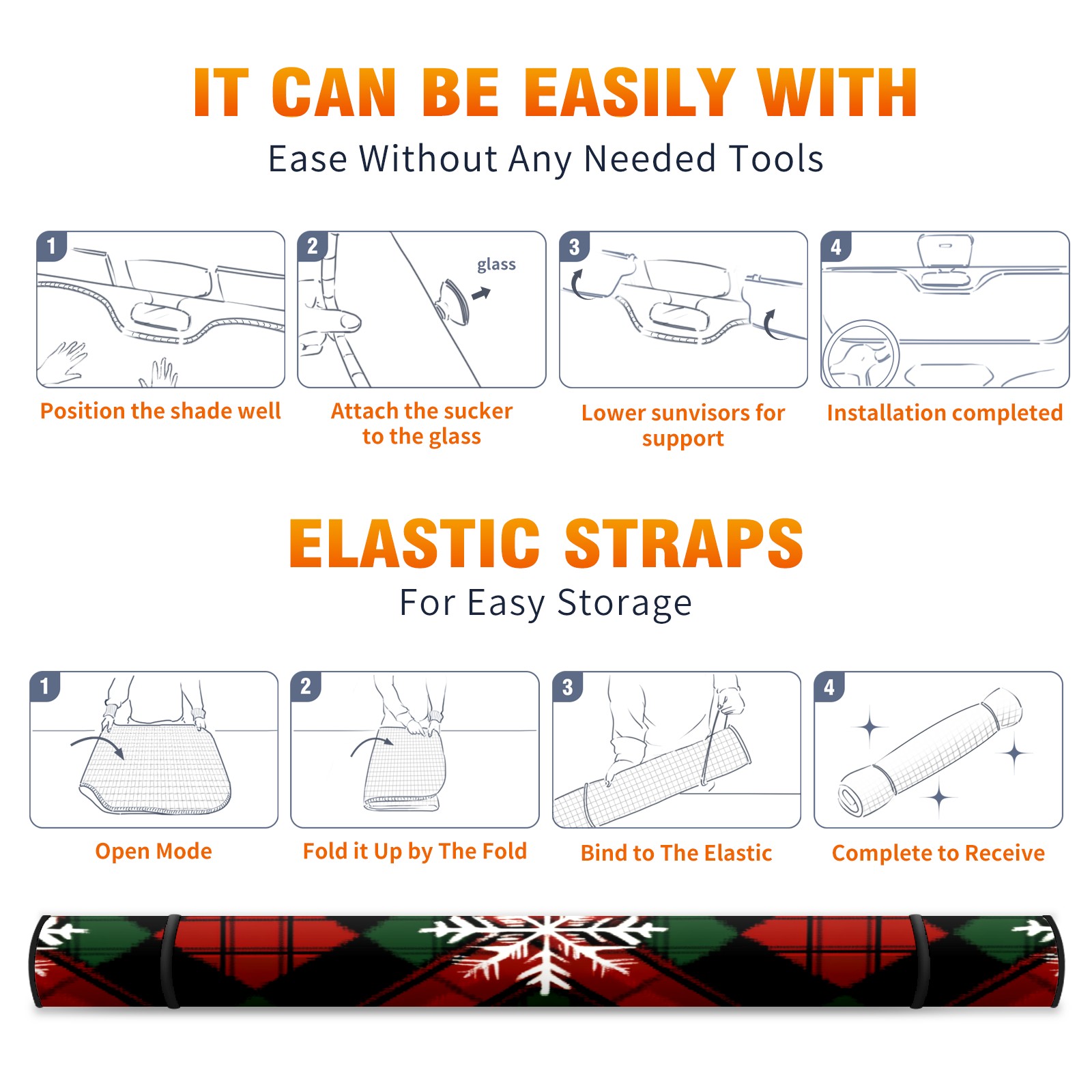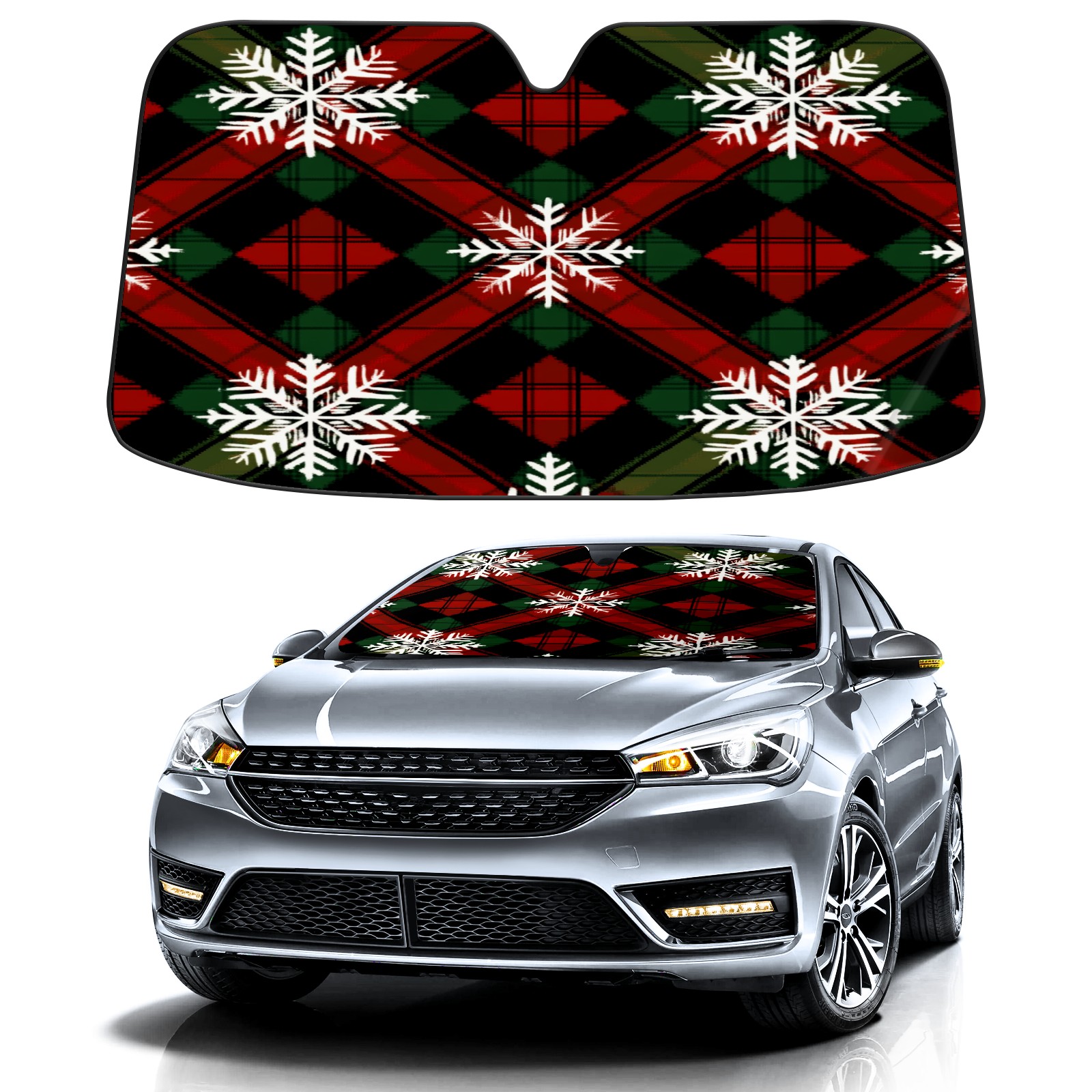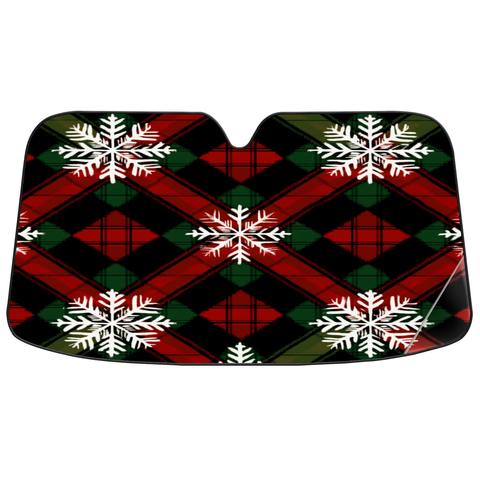 Car Windshield Sun Shade with UV Block & Heat Protection, Universal Foldable Front Window Sunshade for Automotive Sun Protection, Easy Fold Design(Red Green And Black Tartan)