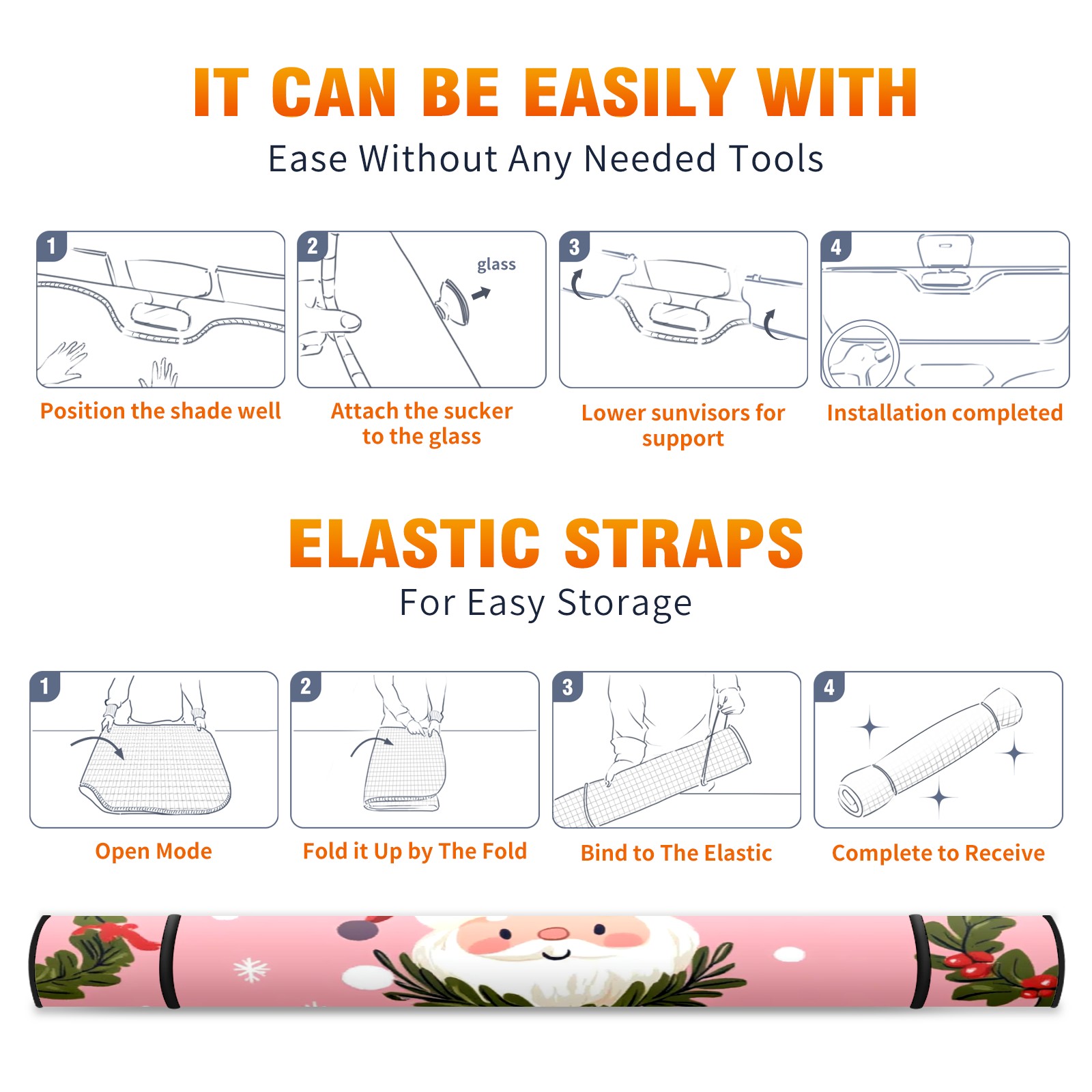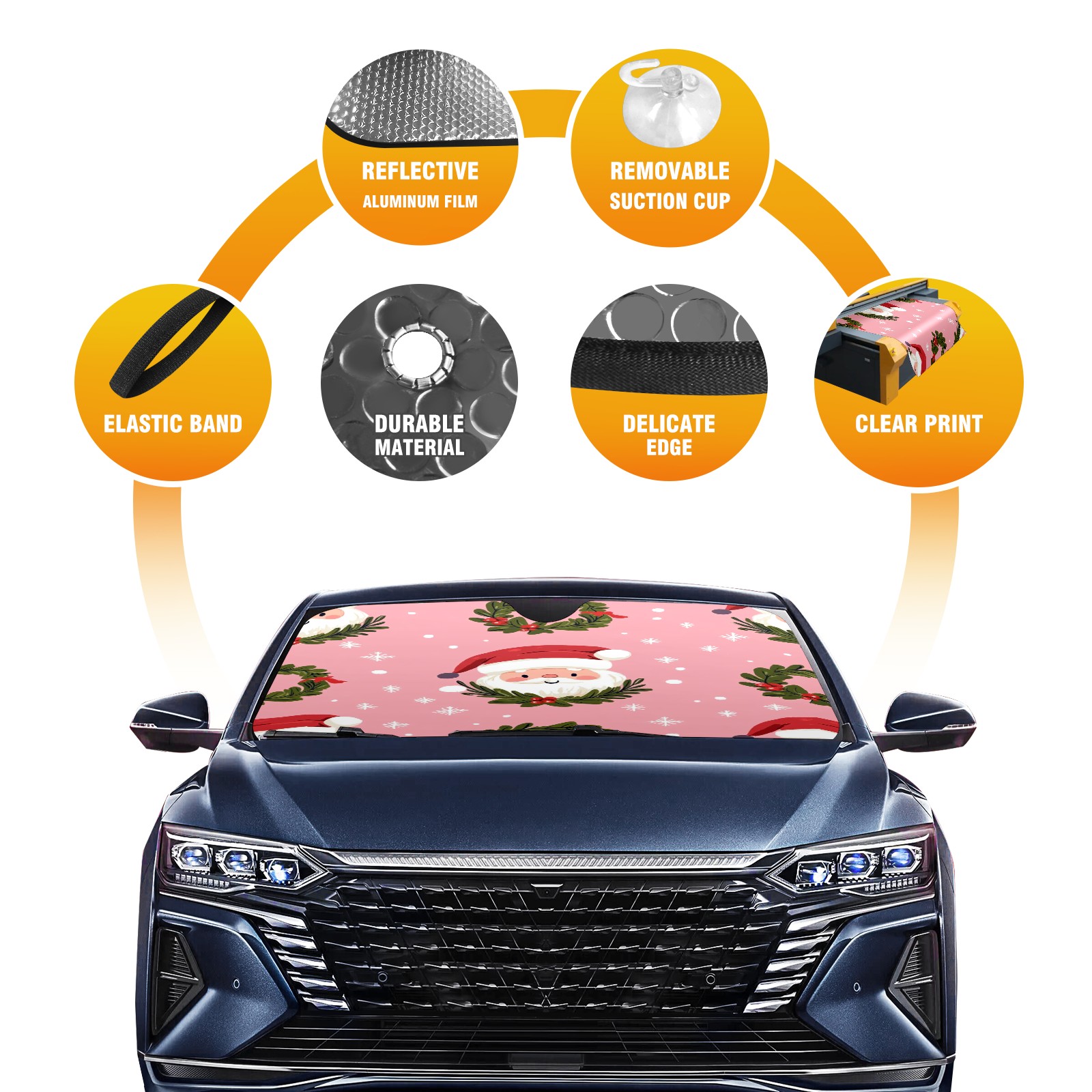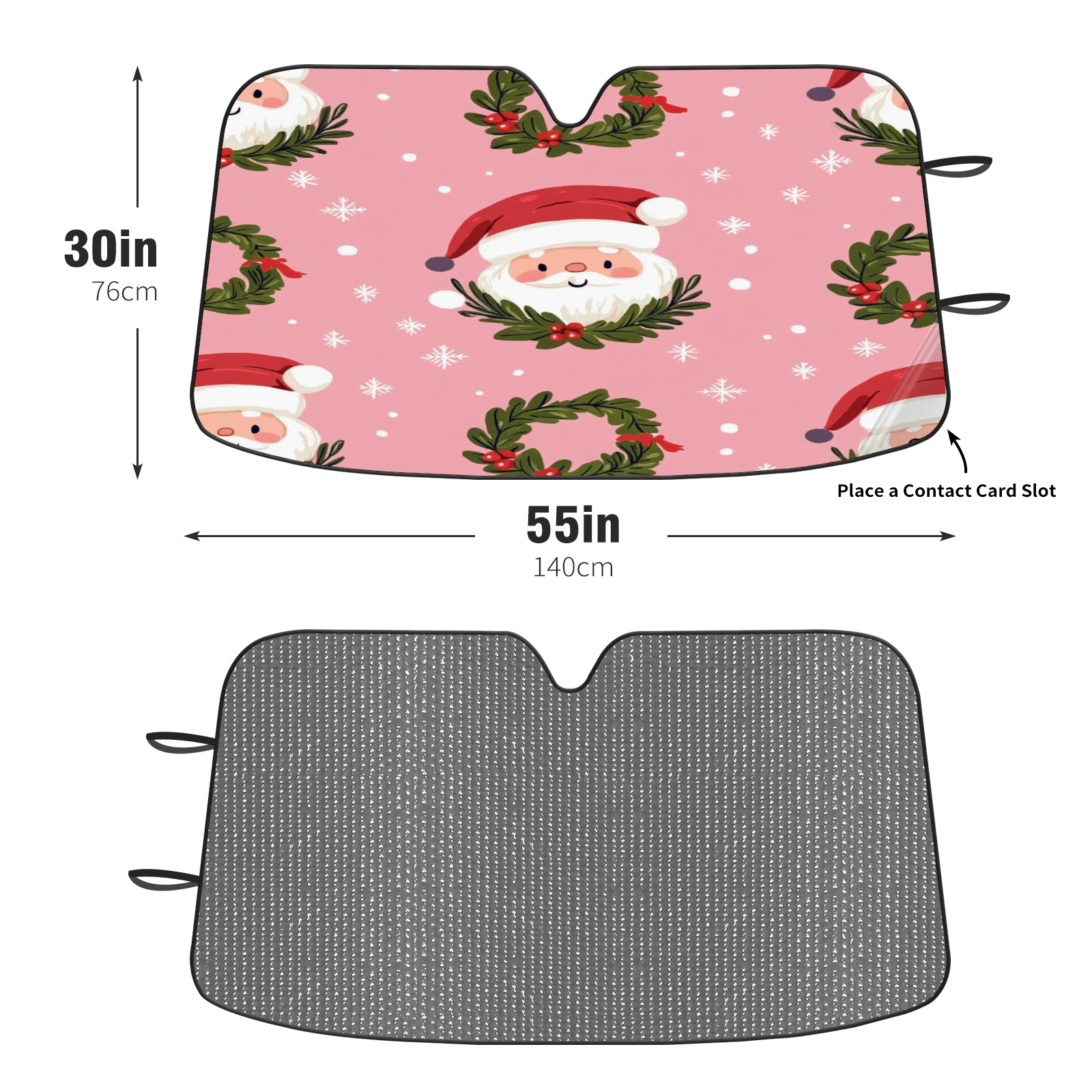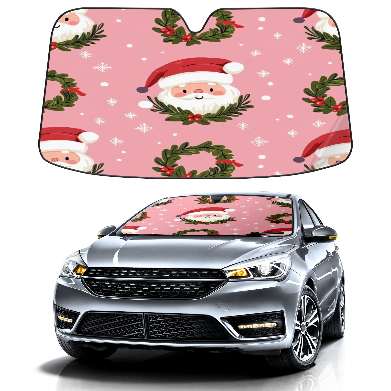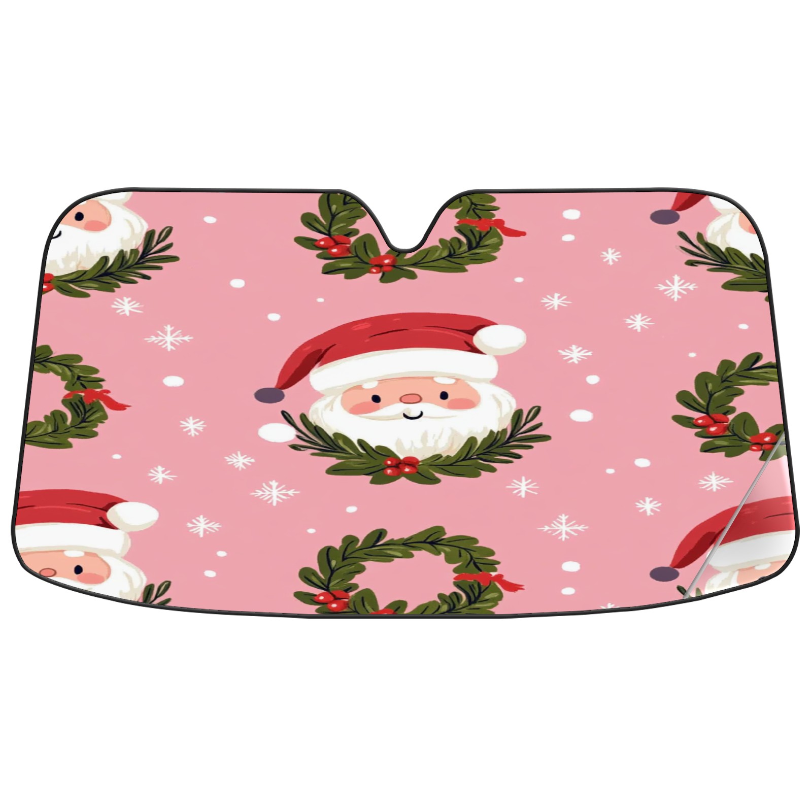 Car Windshield Sun Shade with UV Block & Heat Protection, Universal Foldable Front Window Sunshade for Automotive Sun Protection, Easy Fold Design(Cute Santa And Wreath)