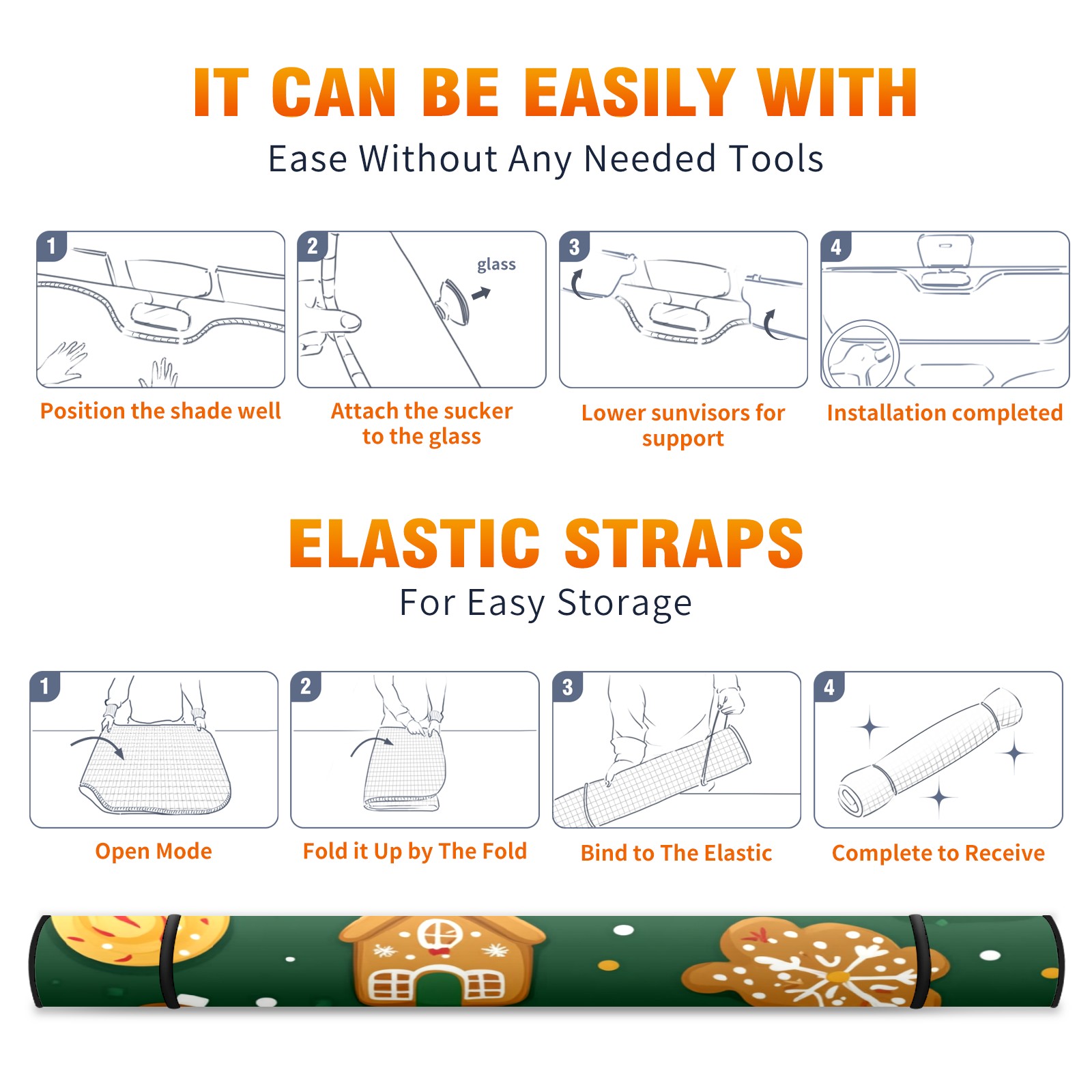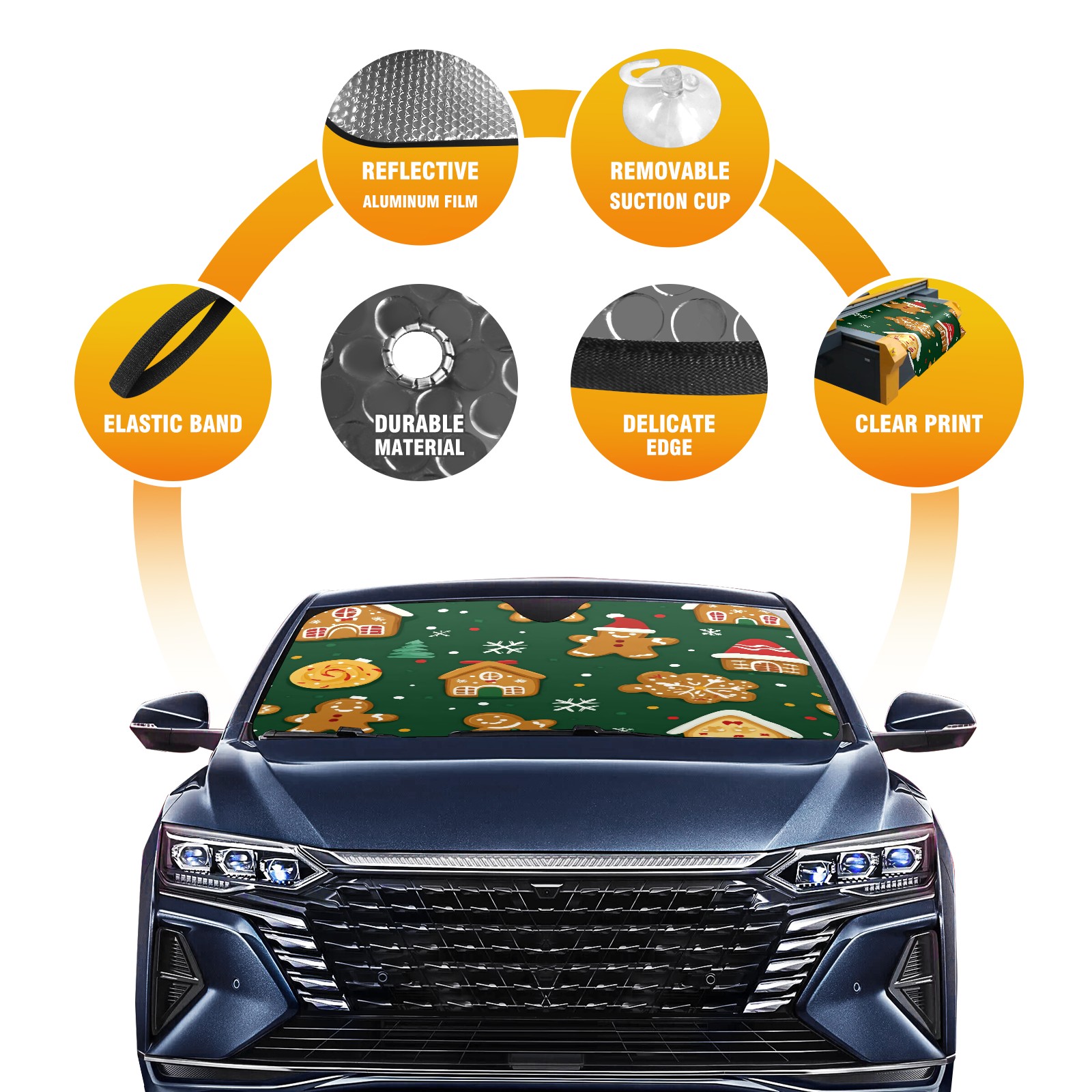 Car Windshield Sun Shade with UV Block & Heat Protection, Universal Foldable Front Window Sunshade for Automotive Sun Protection, Easy Fold Design(Christmas Pattern)