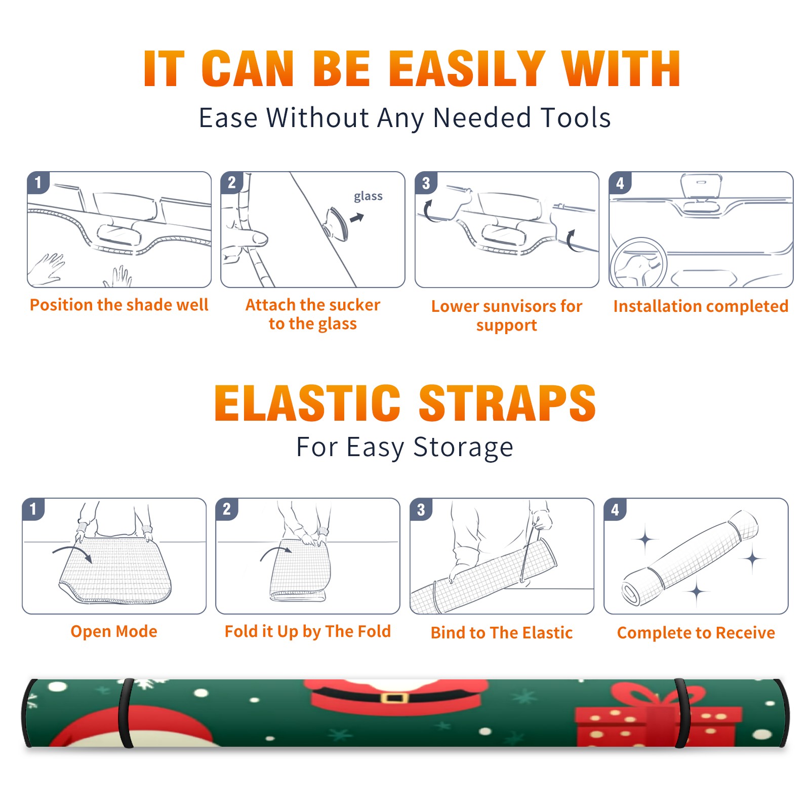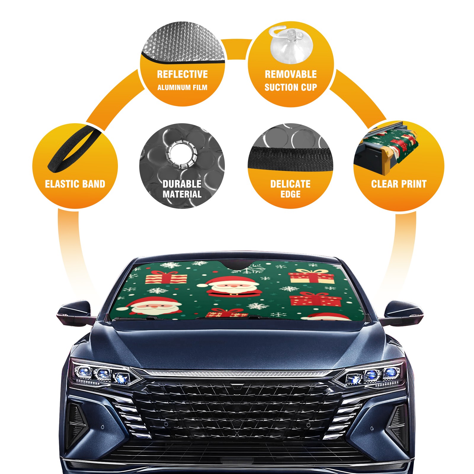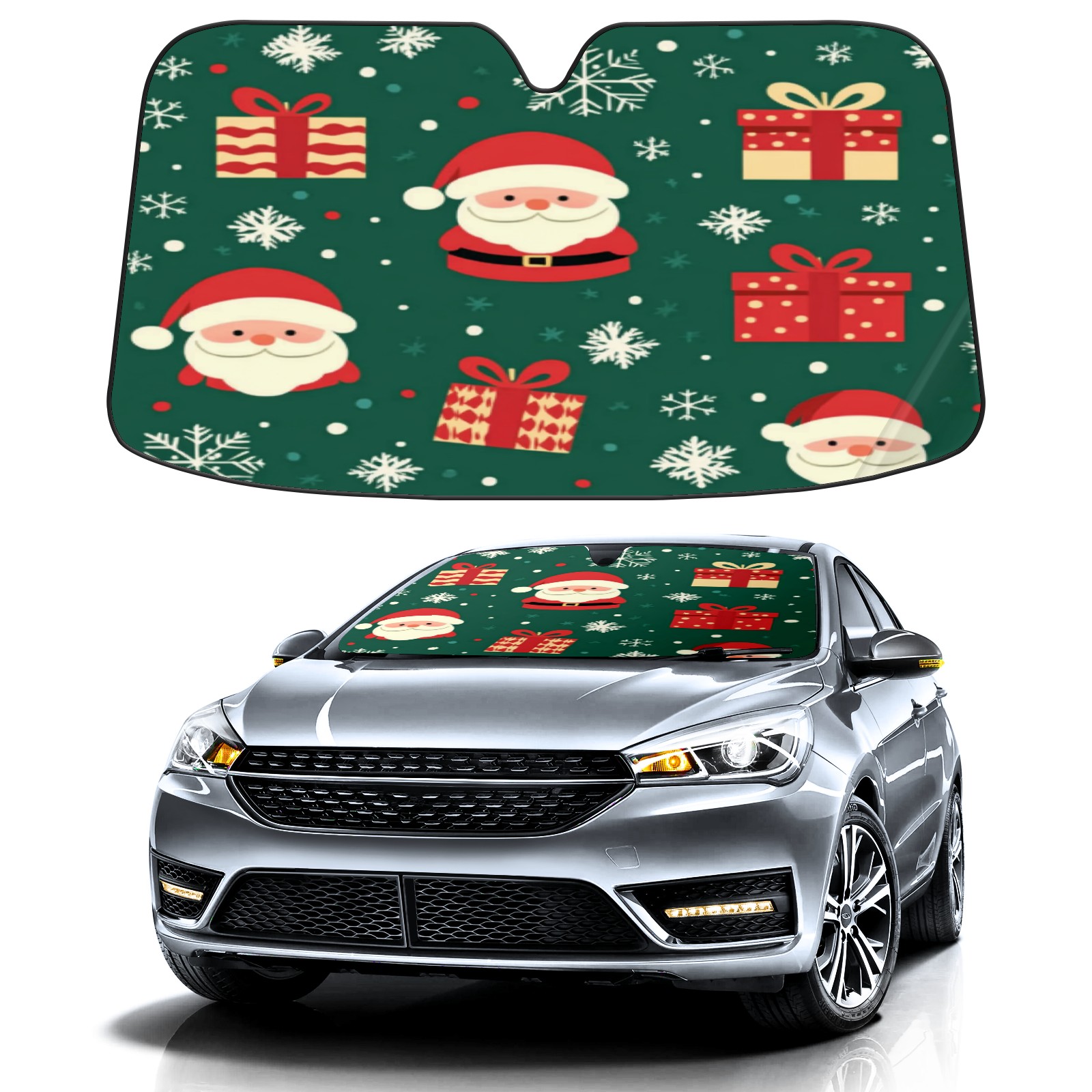 Car Windshield Sun Shade with UV Block & Heat Protection, Universal Foldable Front Window Sunshade for Automotive Sun Protection, Easy Fold Design(Christmas Gifts And Santa Claus)