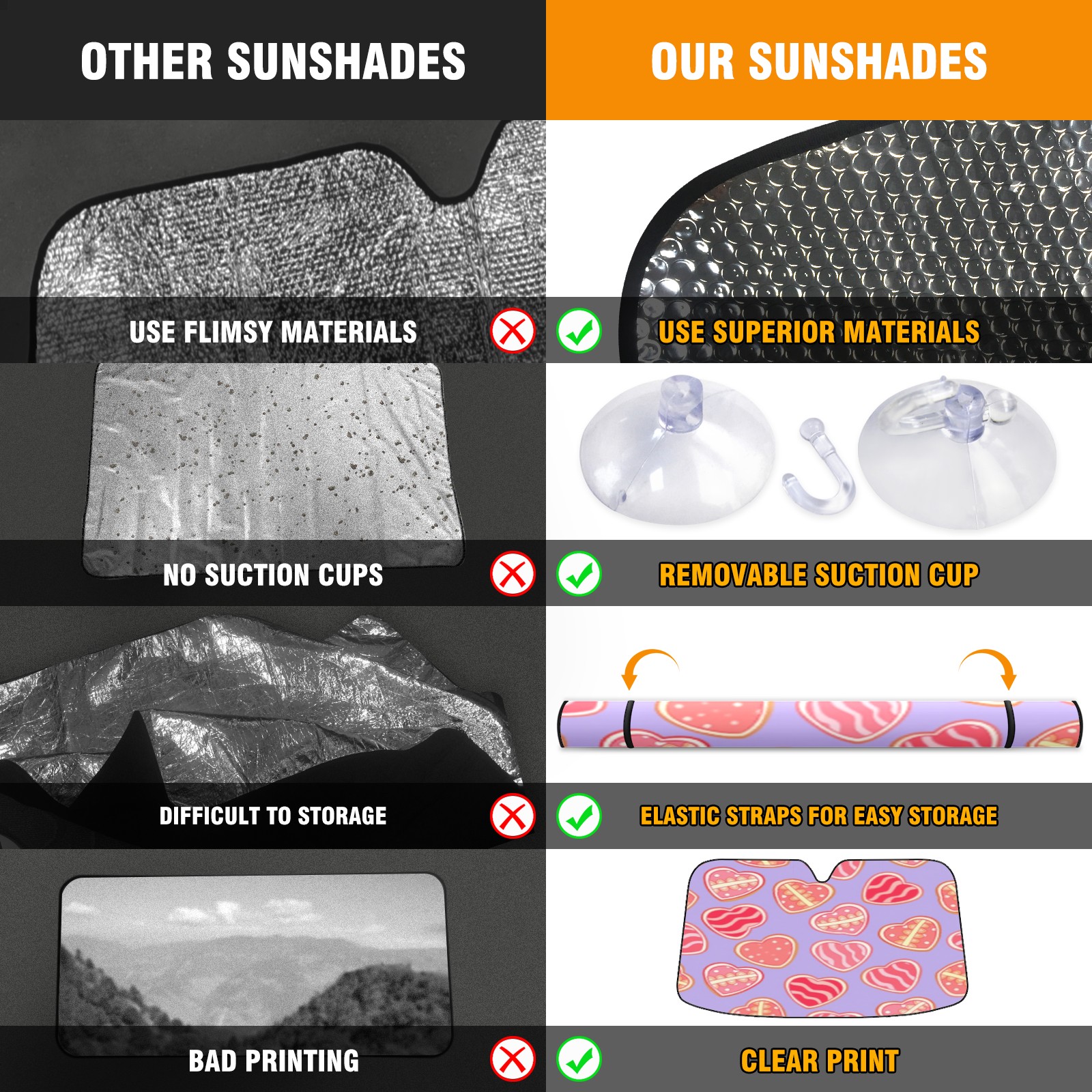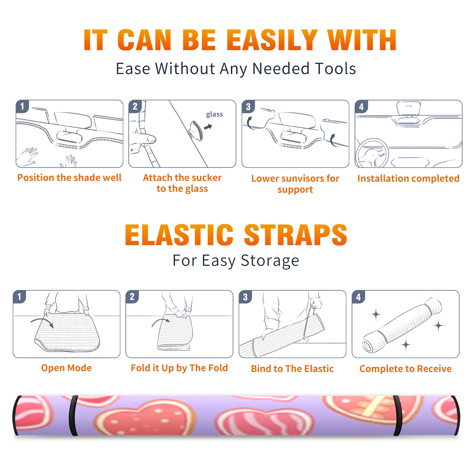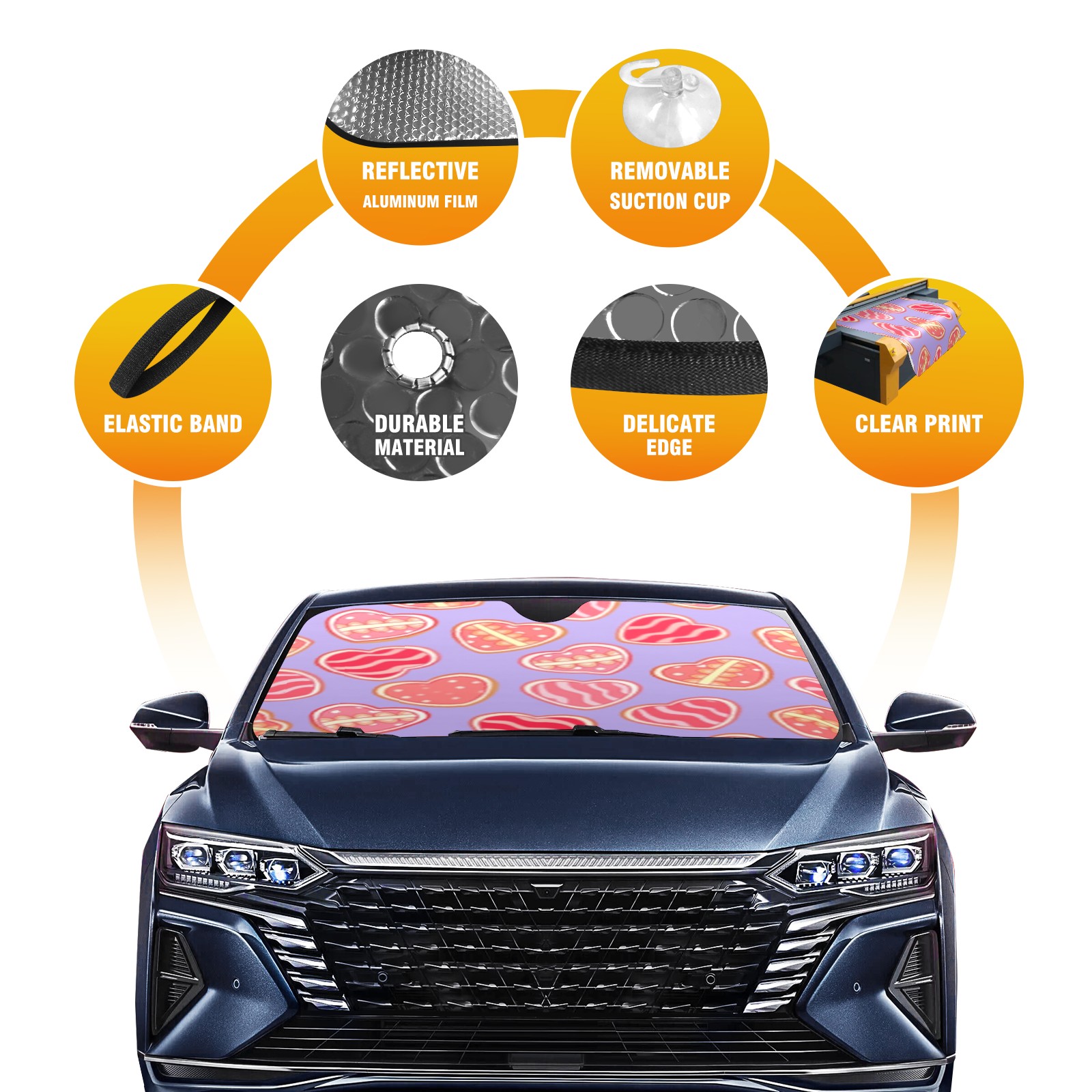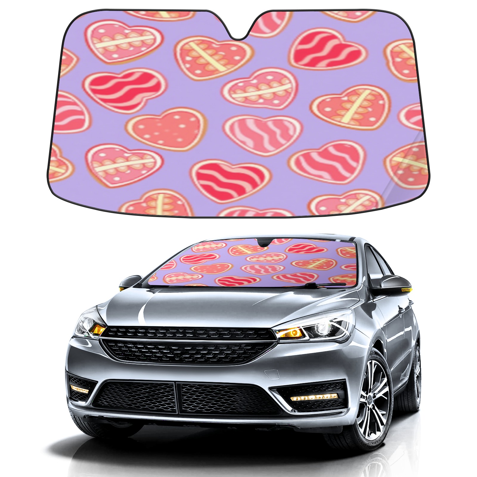 Car Windshield Sun Shade with UV Block & Heat Protection, Universal Foldable Front Window Sunshade for Automotive Sun Protection, Easy Fold Design(Sweet Hearts)