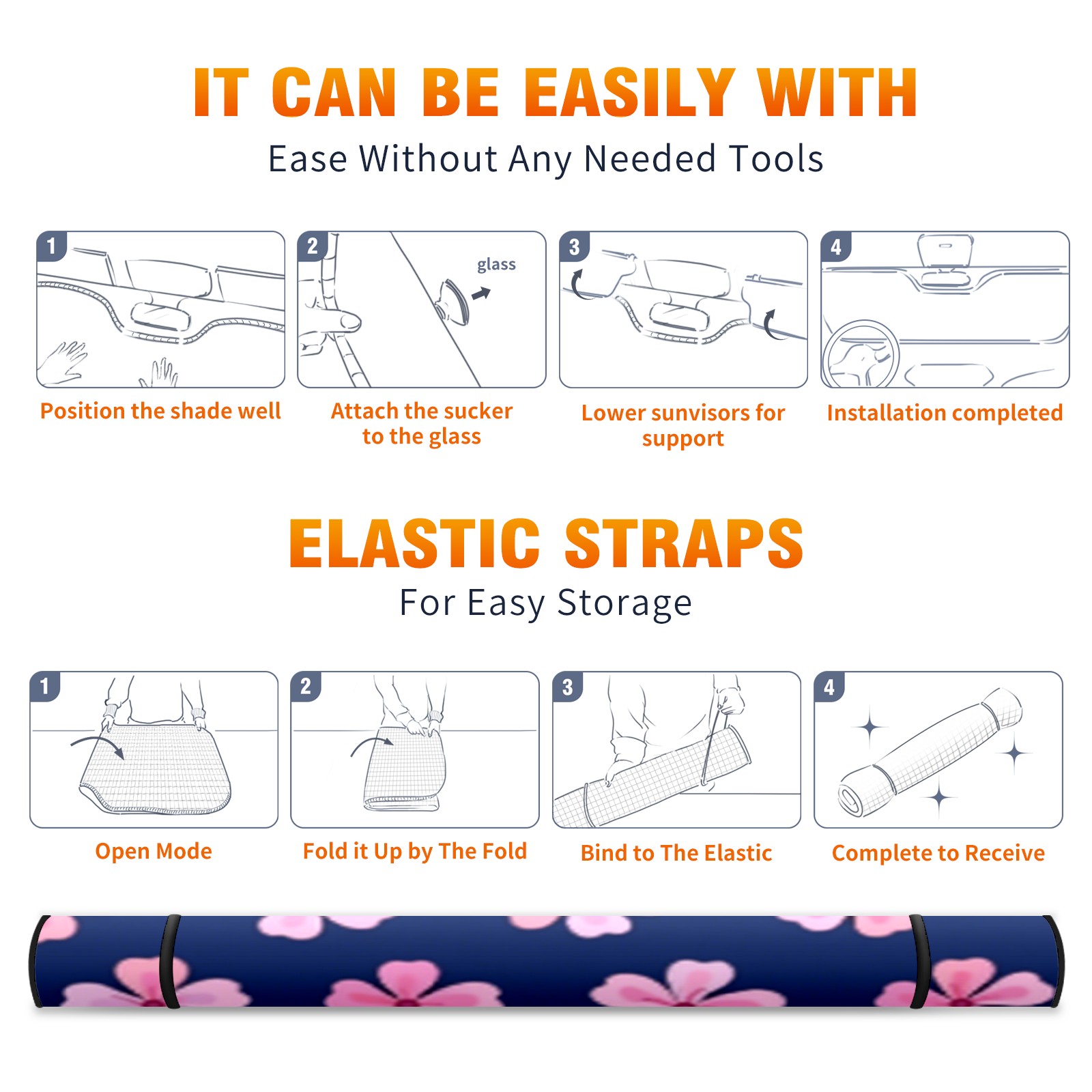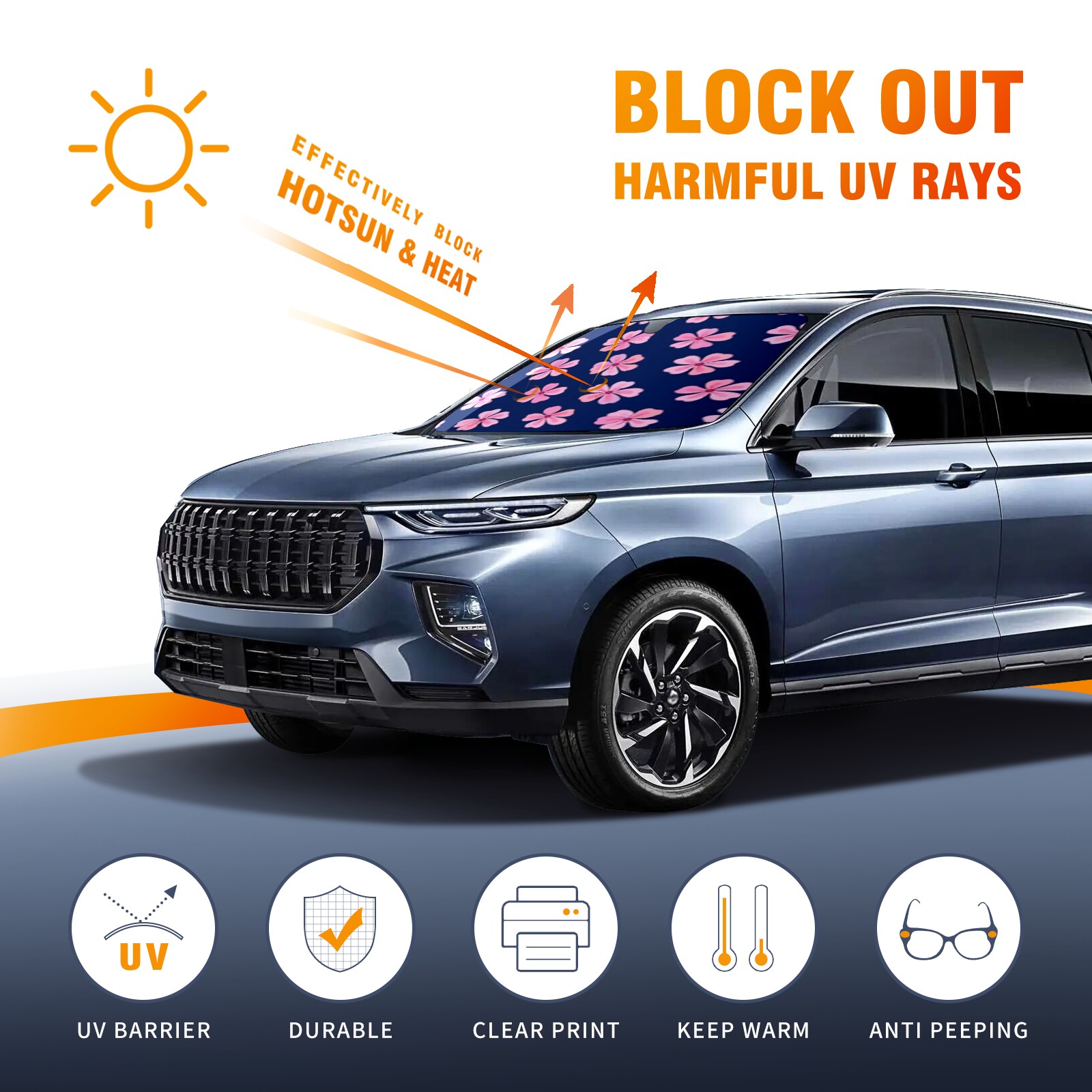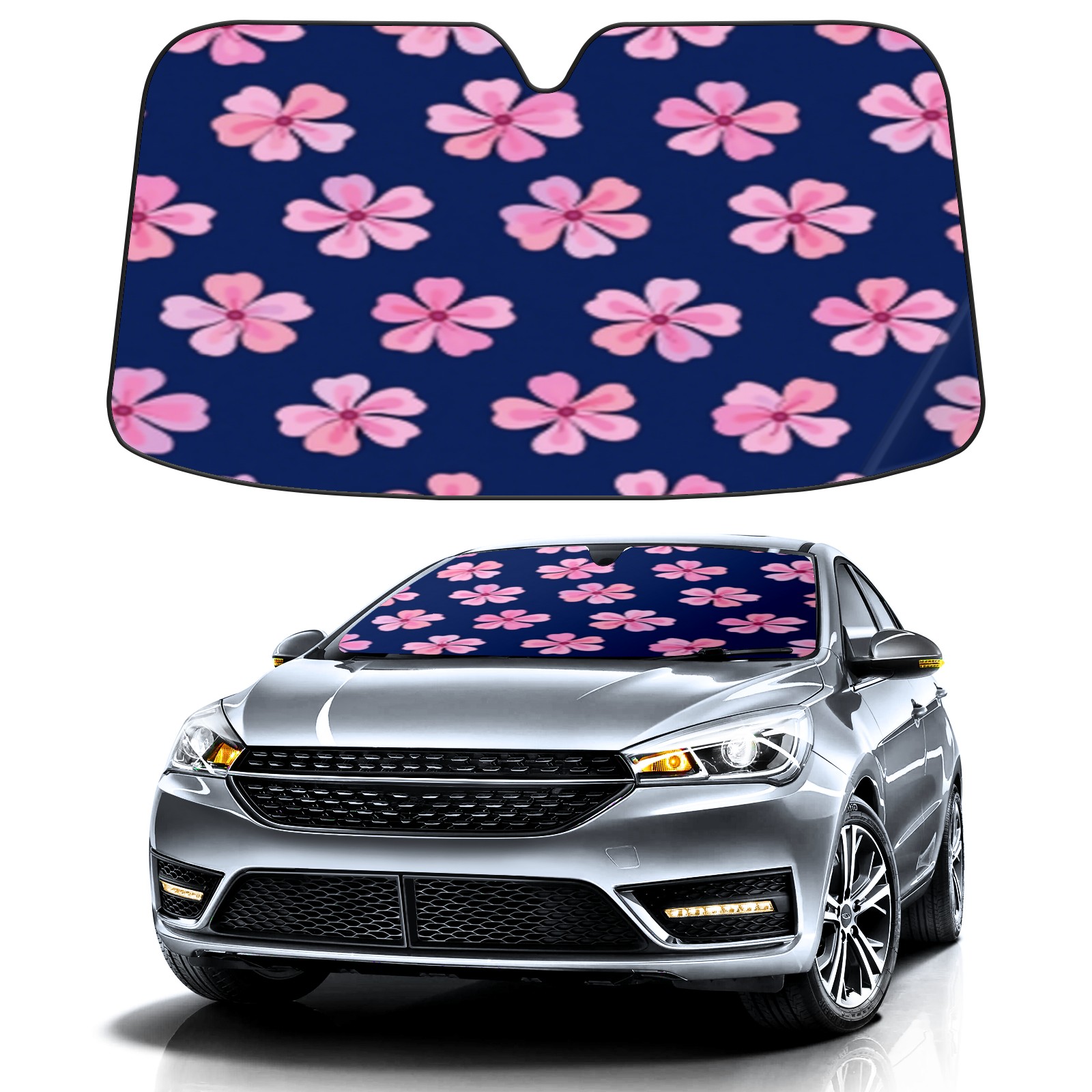 Car Windshield Sun Shade with UV Block & Heat Protection, Universal Foldable Front Window Sunshade for Automotive Sun Protection, Easy Fold Design(Pink Flowers)