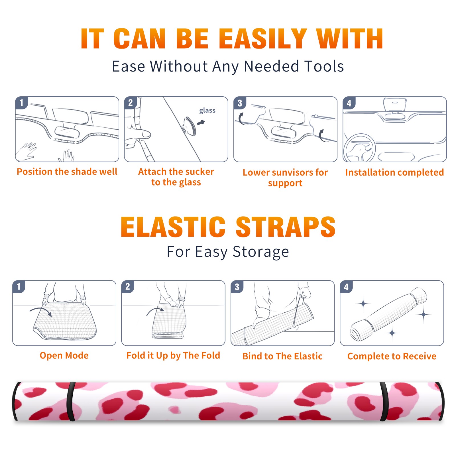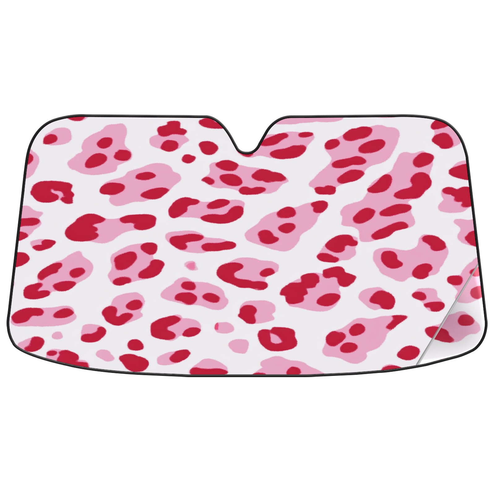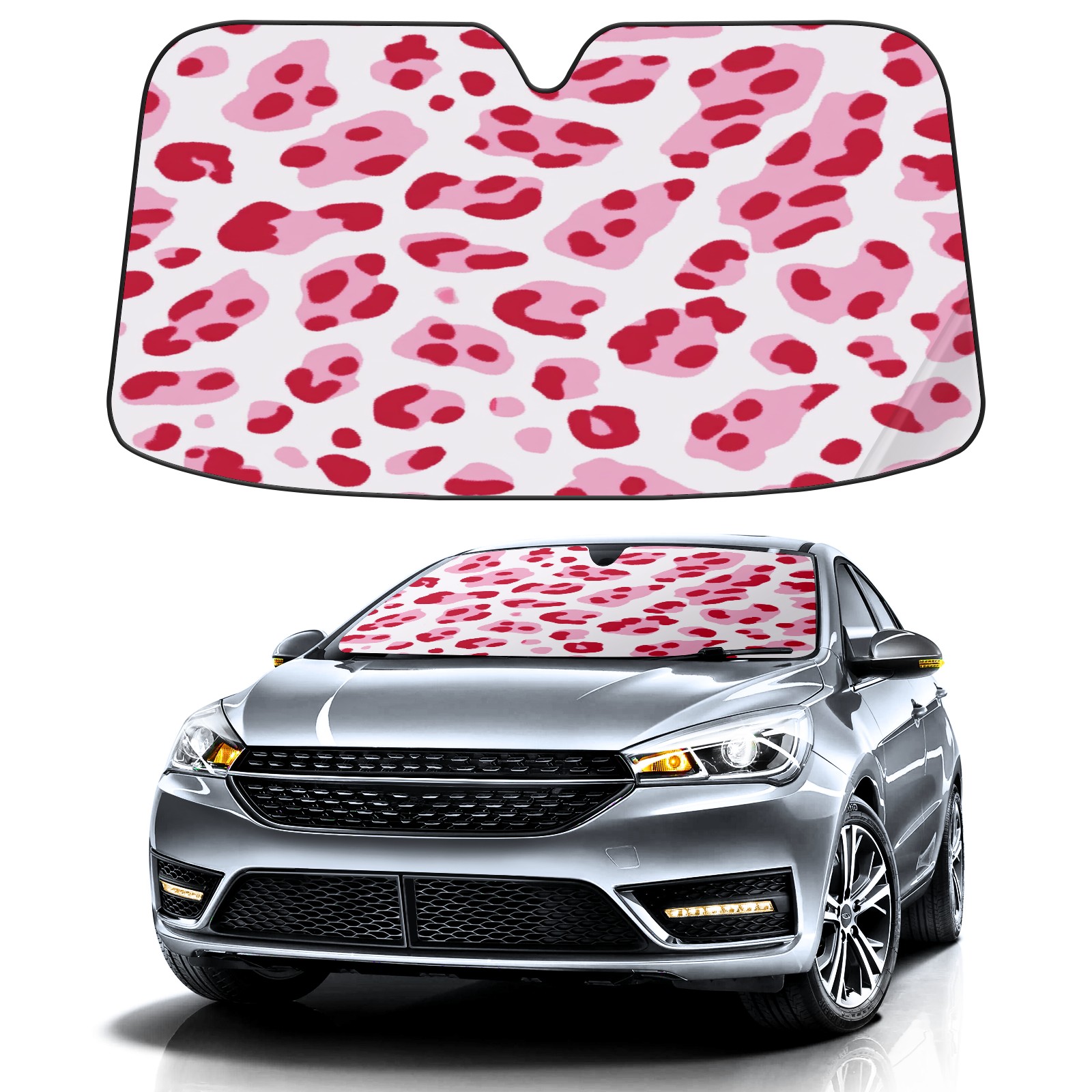 Car Windshield Sun Shade with UV Block & Heat Protection, Universal Foldable Front Window Sunshade for Automotive Sun Protection, Easy Fold Design(Pink Leopard)