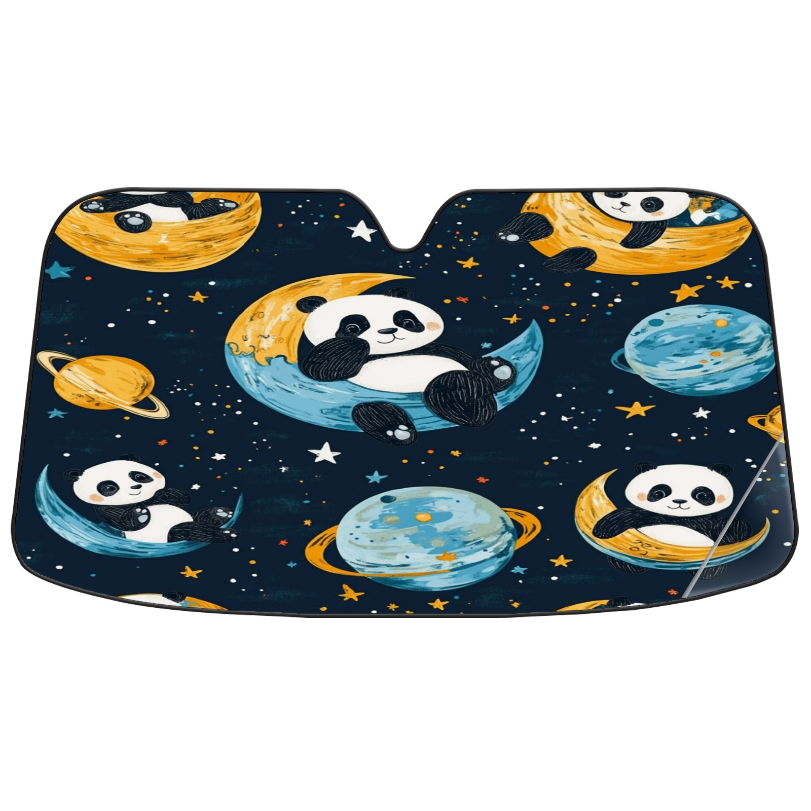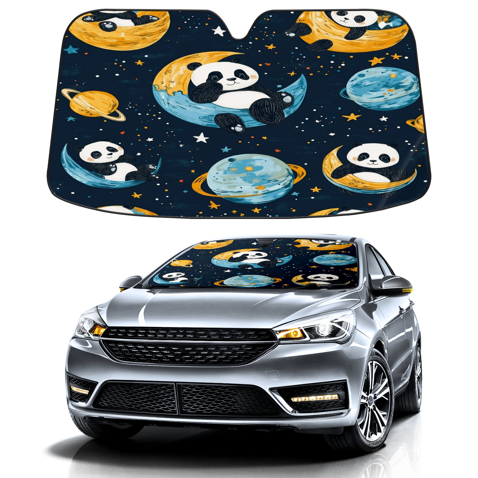 Car Windshield Sun Shade with UV Block & Heat Protection, Universal Foldable Front Window Sunshade for Automotive Sun Protection, Easy Fold Design(Playful Pandas Floating)