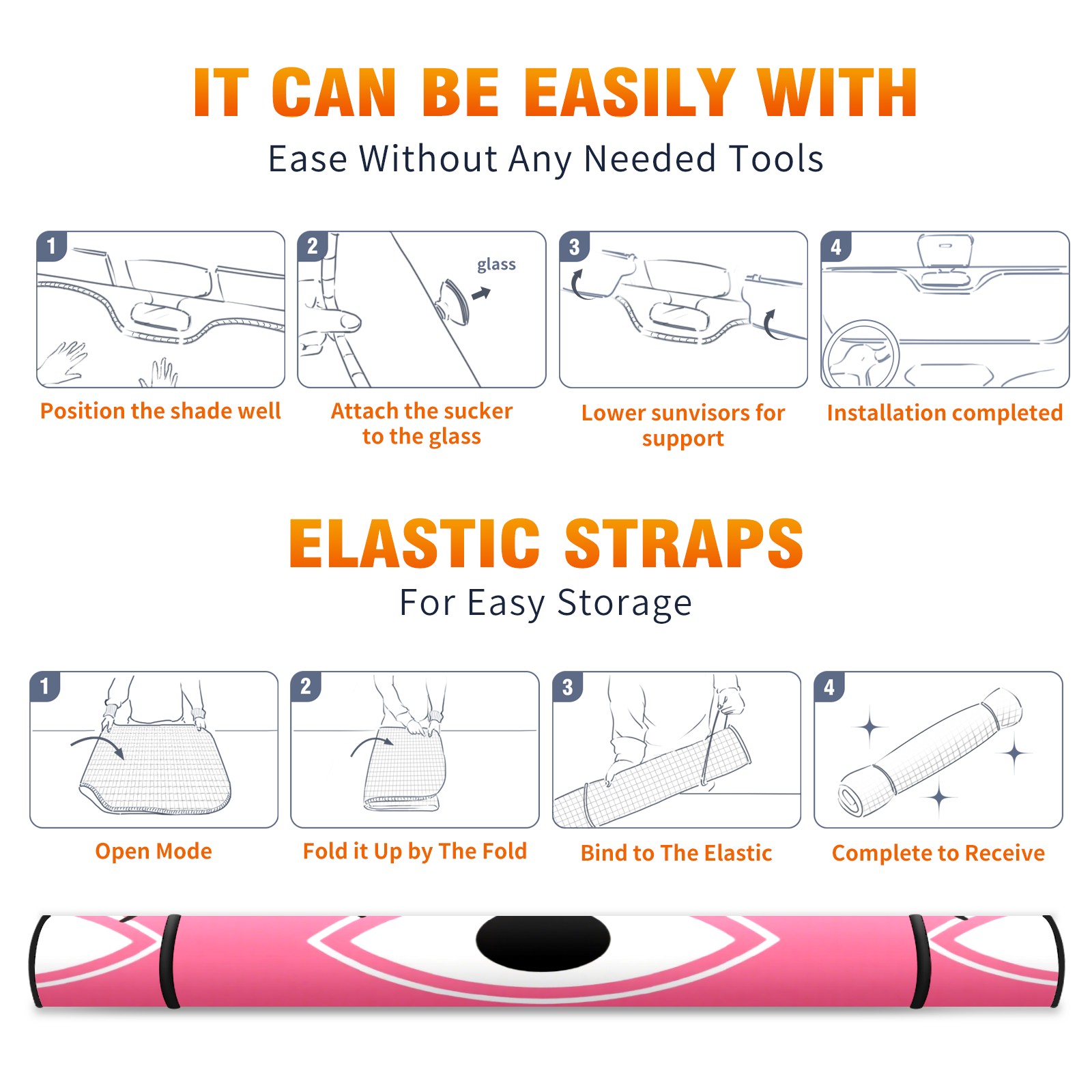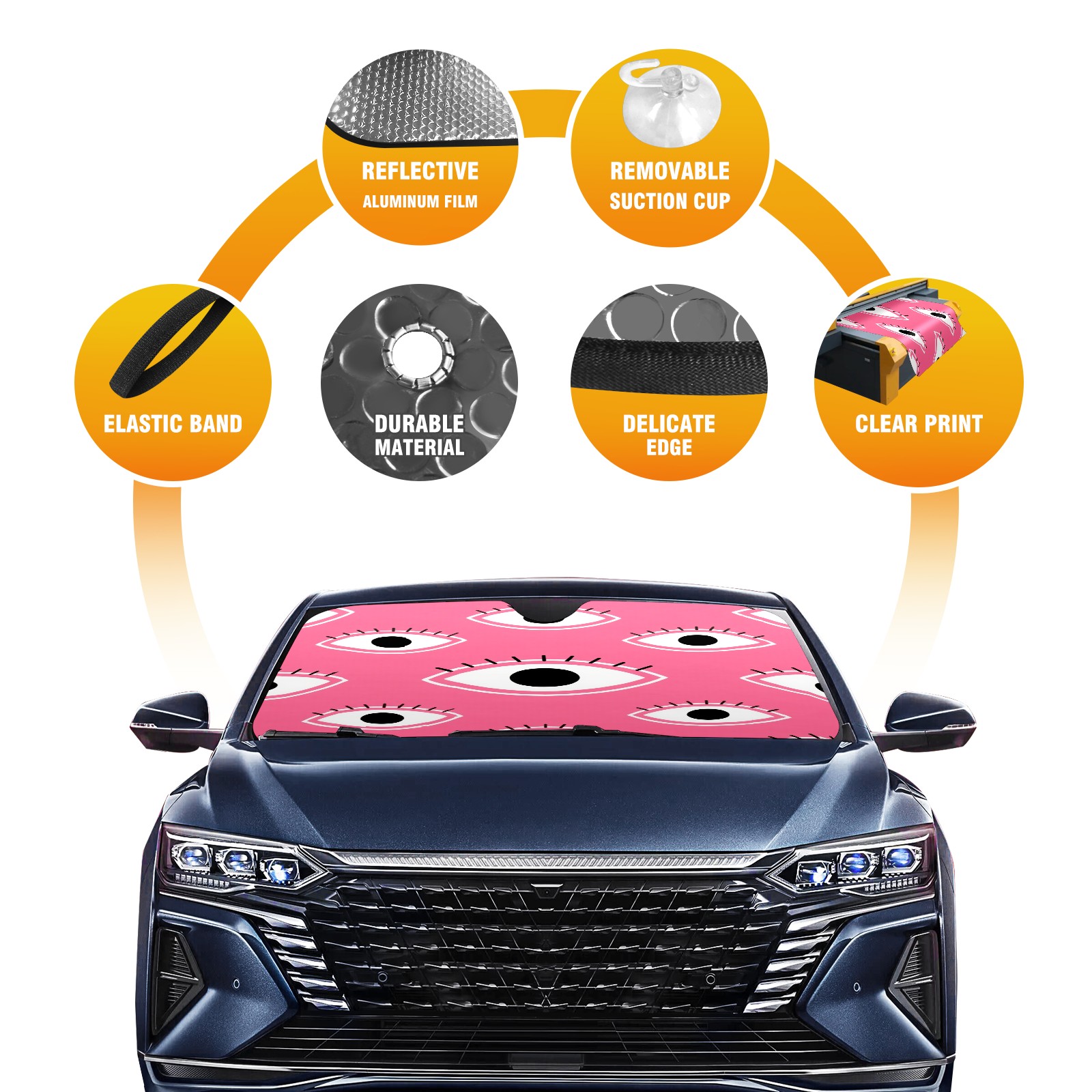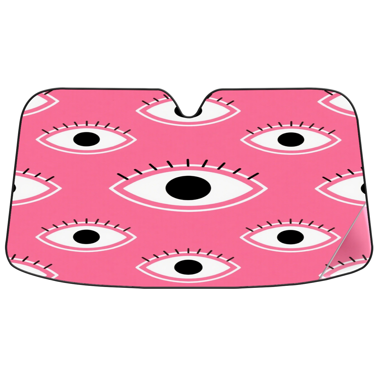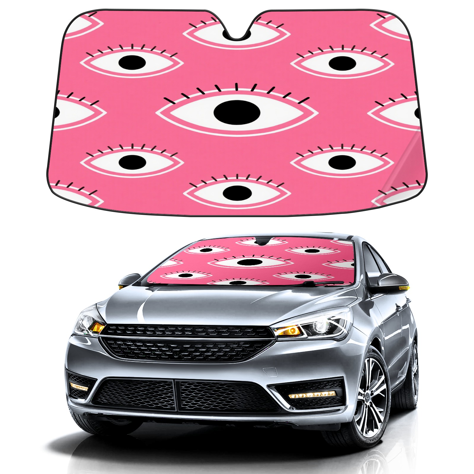 Car Windshield Sun Shade with UV Block & Heat Protection, Universal Foldable Front Window Sunshade for Automotive Sun Protection, Easy Fold Design(Pink Eyes)