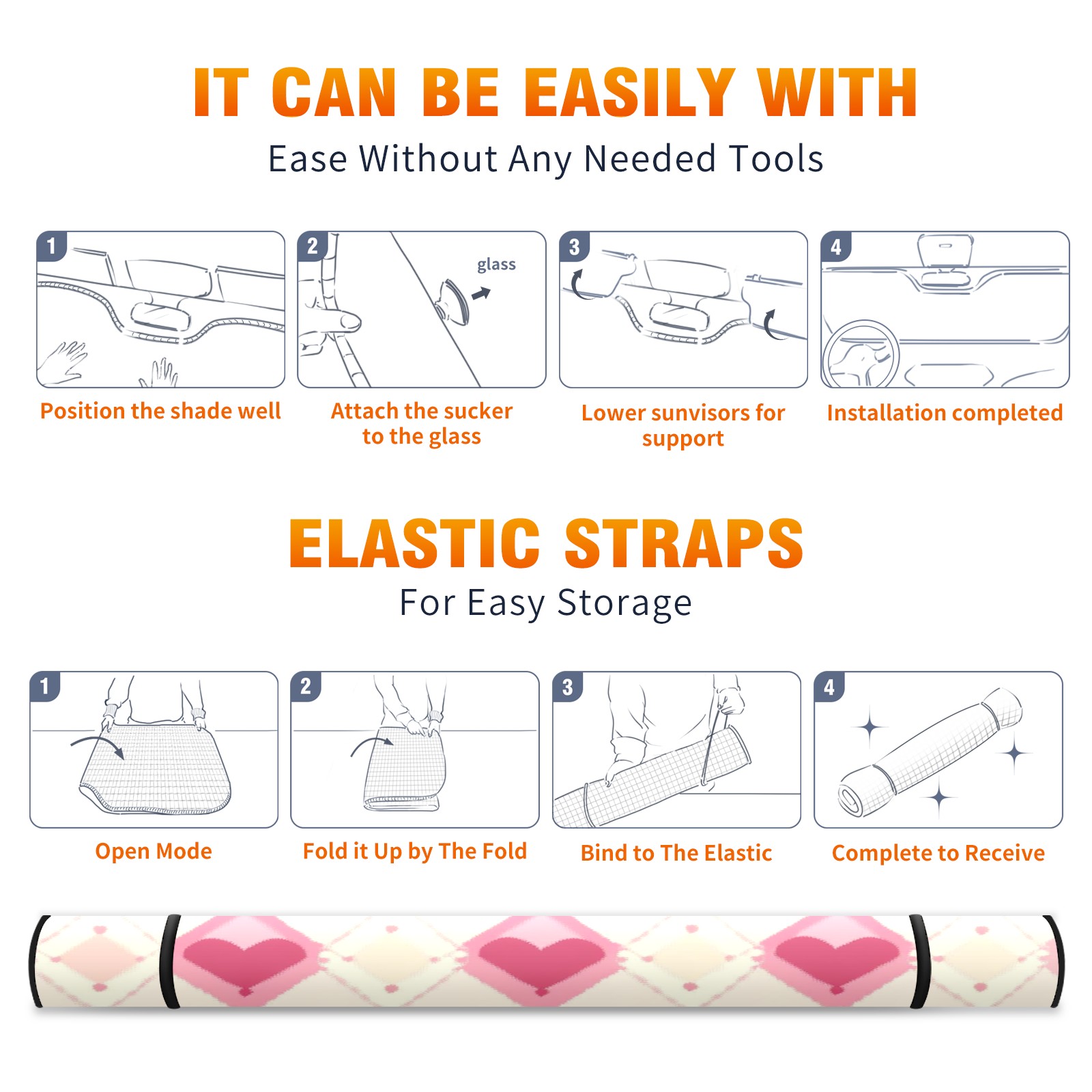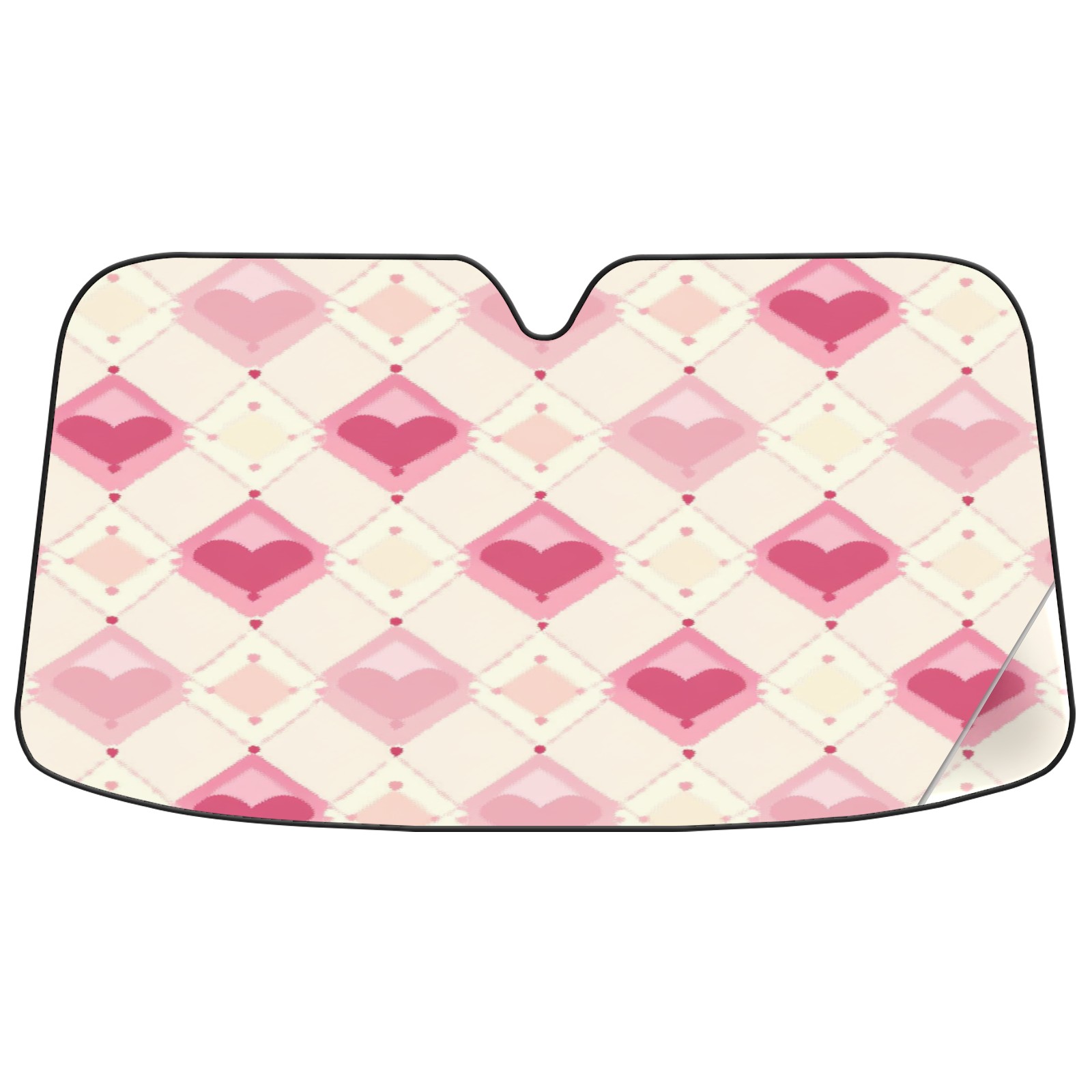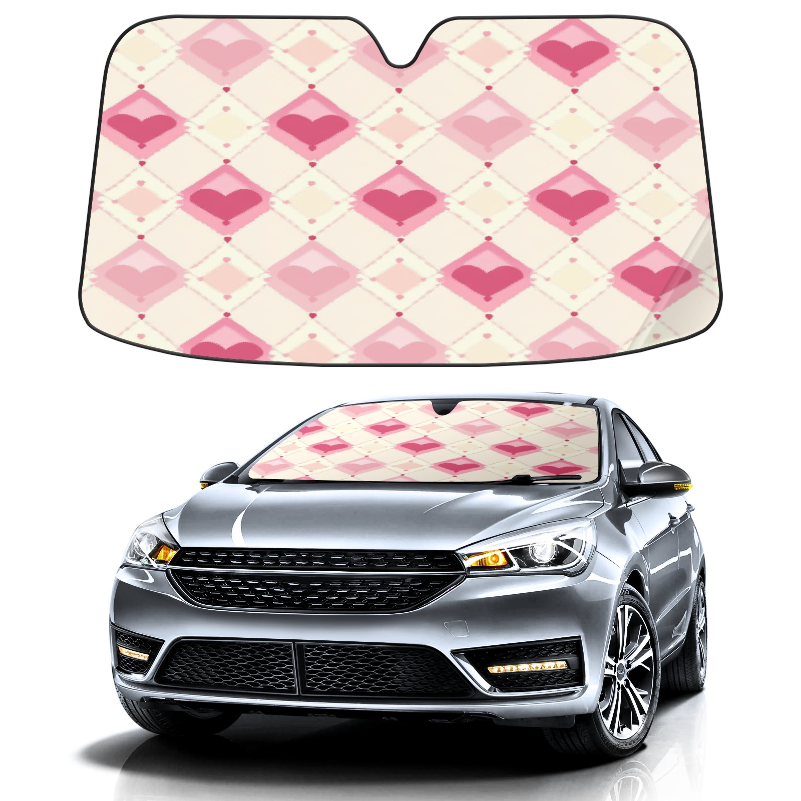 Car Windshield Sun Shade with UV Block & Heat Protection, Universal Foldable Front Window Sunshade for Automotive Sun Protection, Easy Fold Design(Pink And White Diamond)