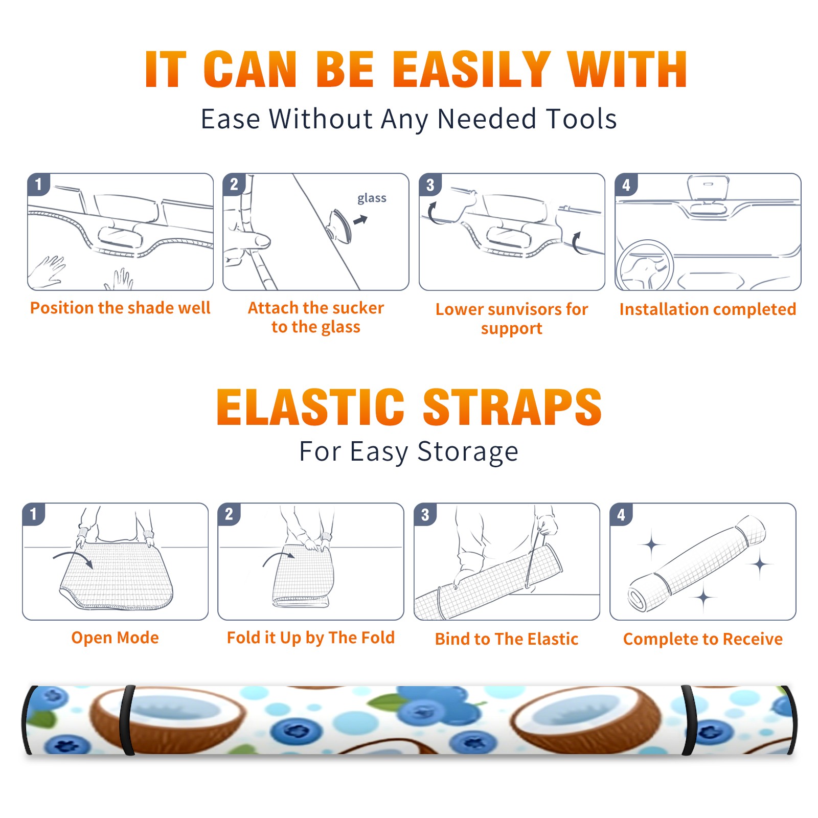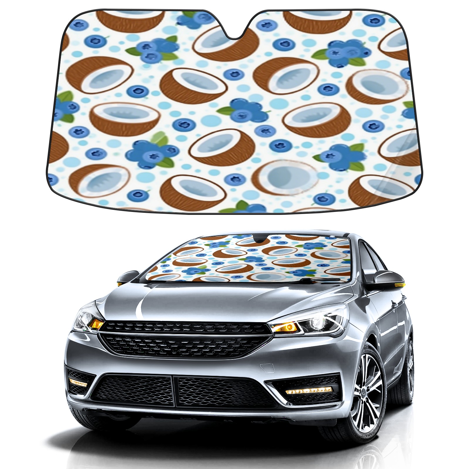 Car Windshield Sun Shade with UV Block & Heat Protection, Universal Foldable Front Window Sunshade for Automotive Sun Protection, Easy Fold Design(Blueberry Coconut)