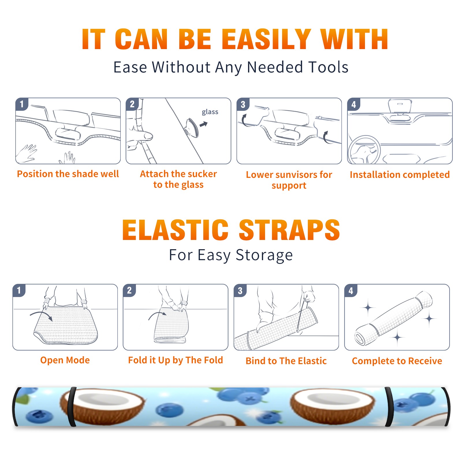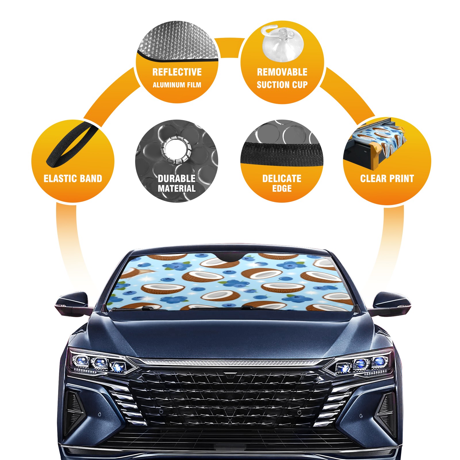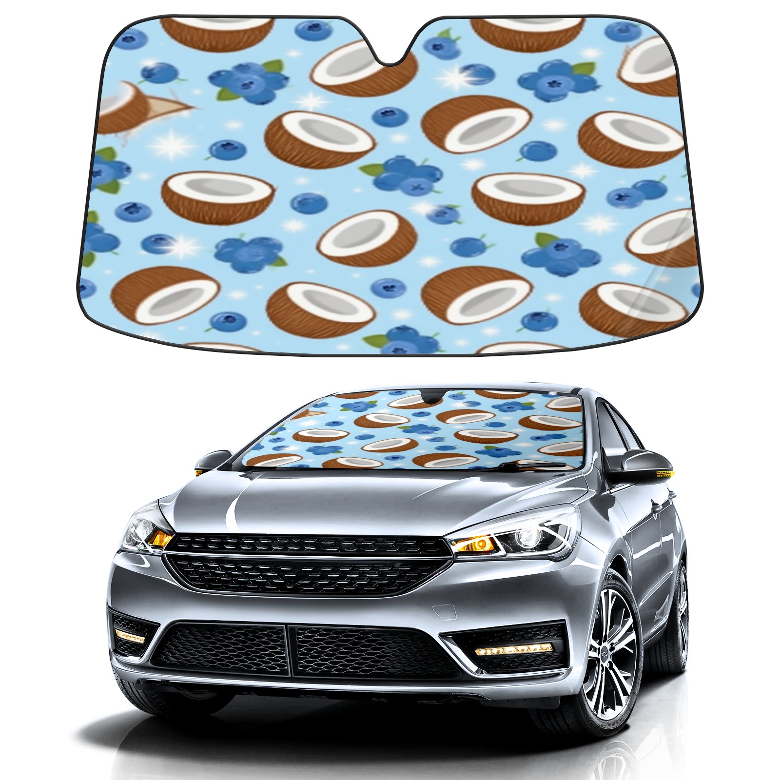 Car Windshield Sun Shade with UV Block & Heat Protection, Universal Foldable Front Window Sunshade for Automotive Sun Protection, Easy Fold Design(Coconut Blueberry)