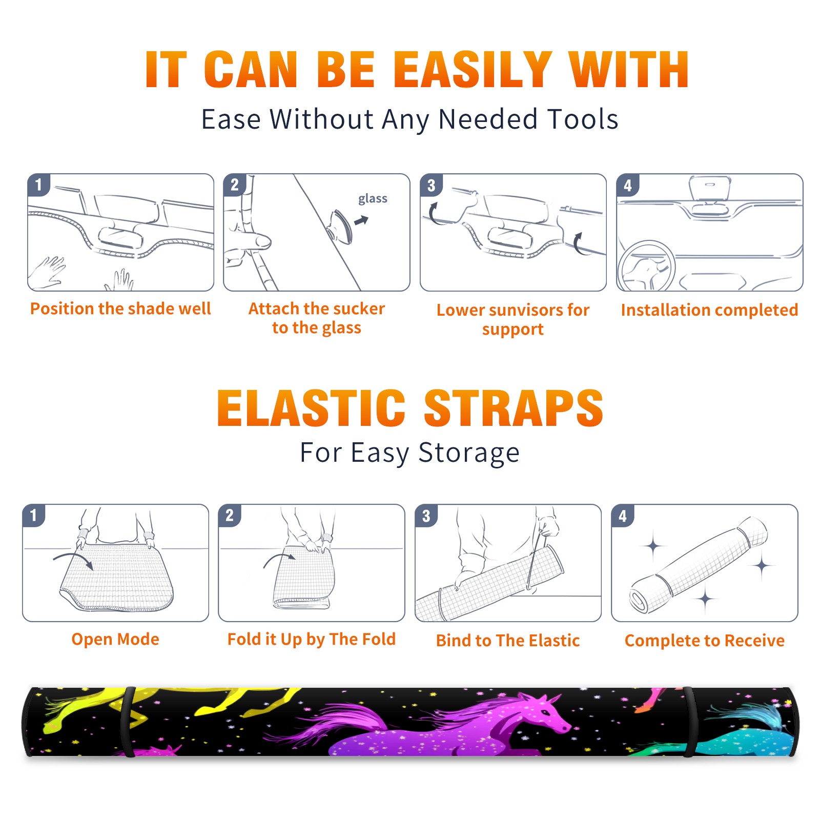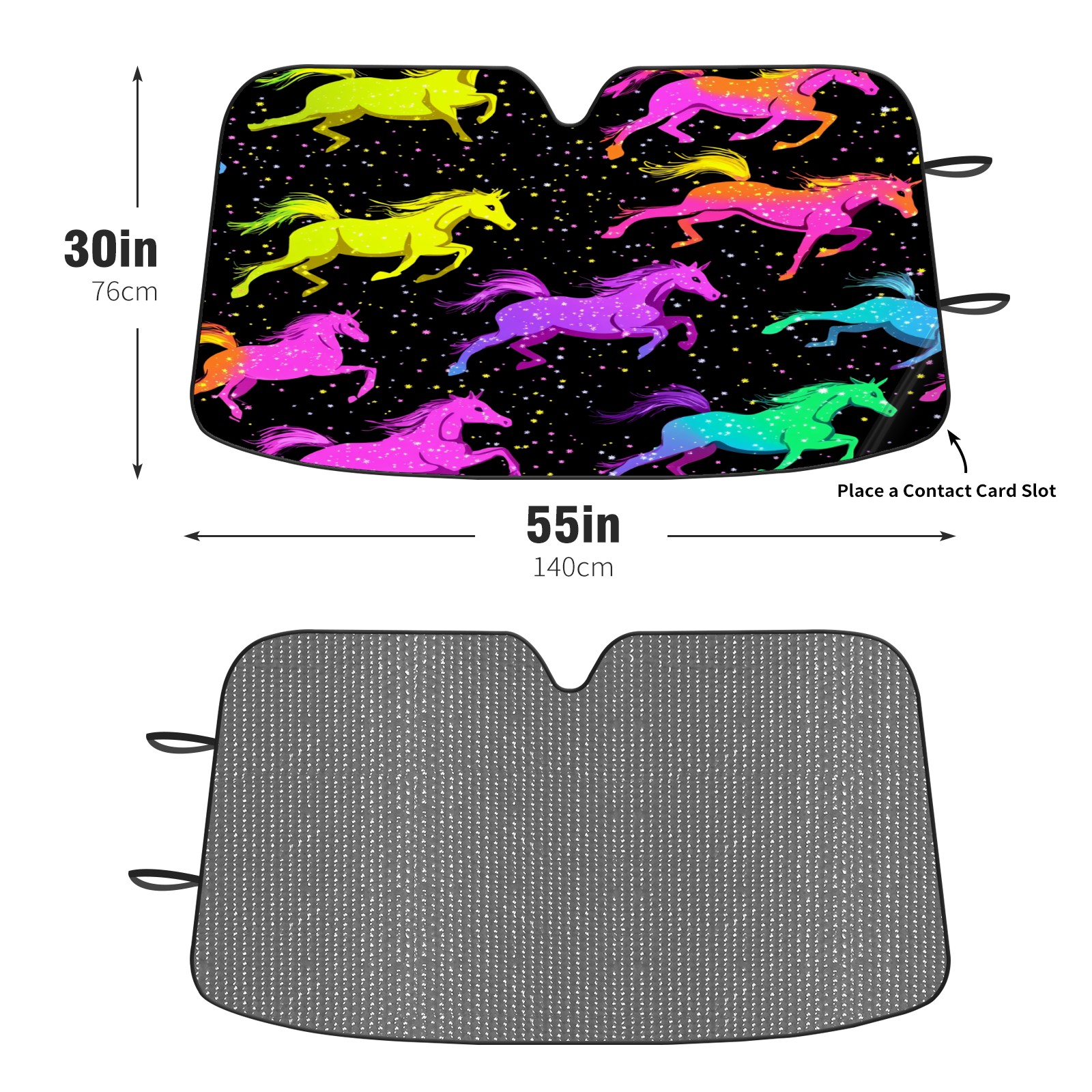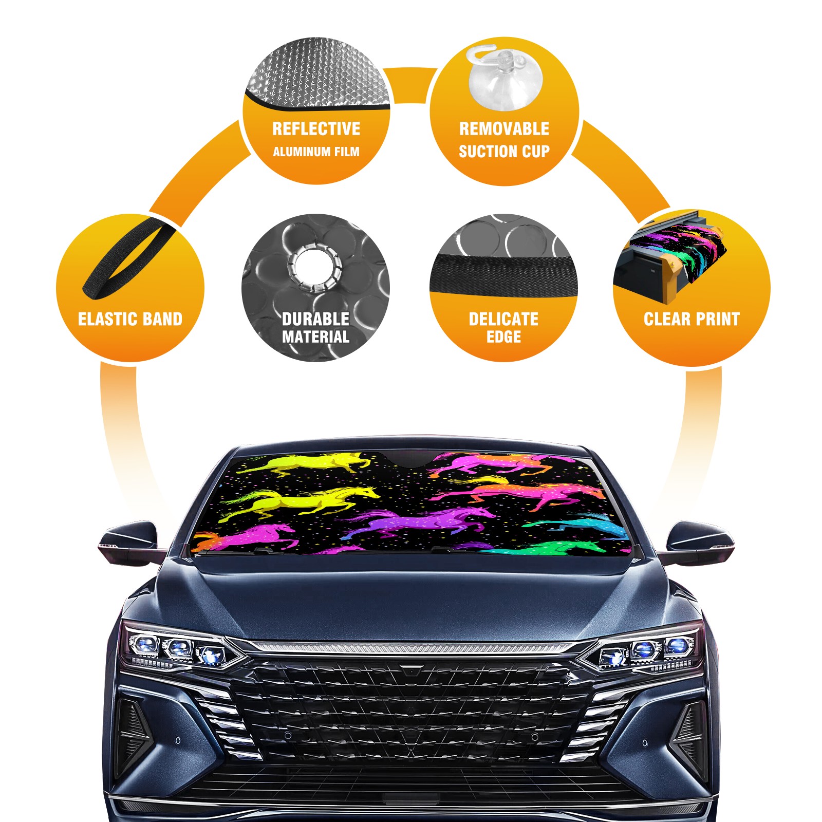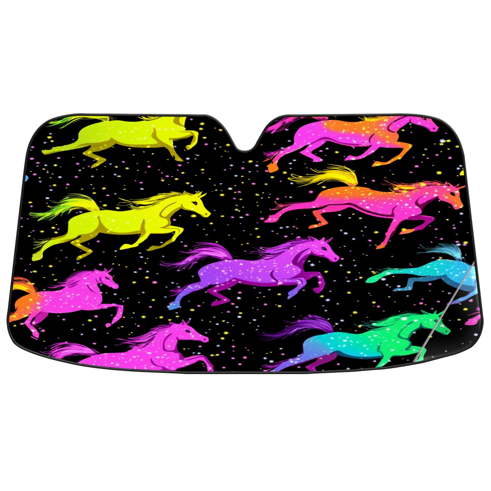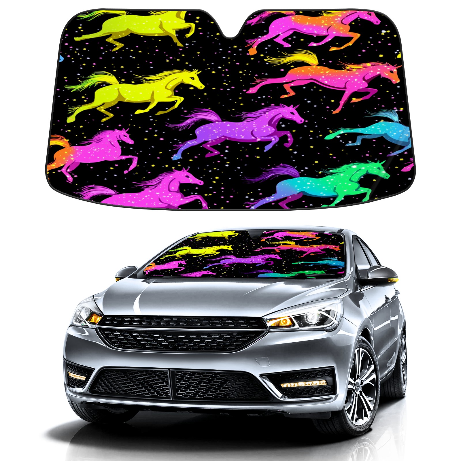 Car Windshield Sun Shade with UV Block & Heat Protection, Universal Foldable Front Window Sunshade for Automotive Sun Protection, Easy Fold Design(Neon-colored Horses Running)