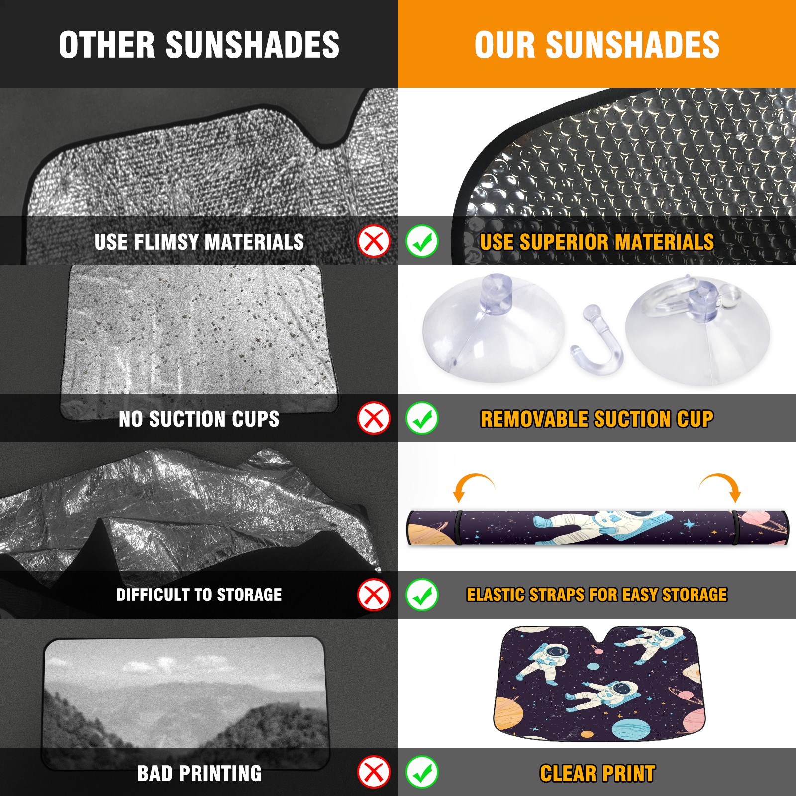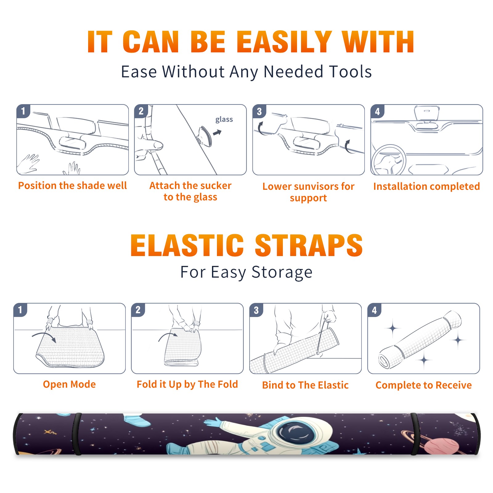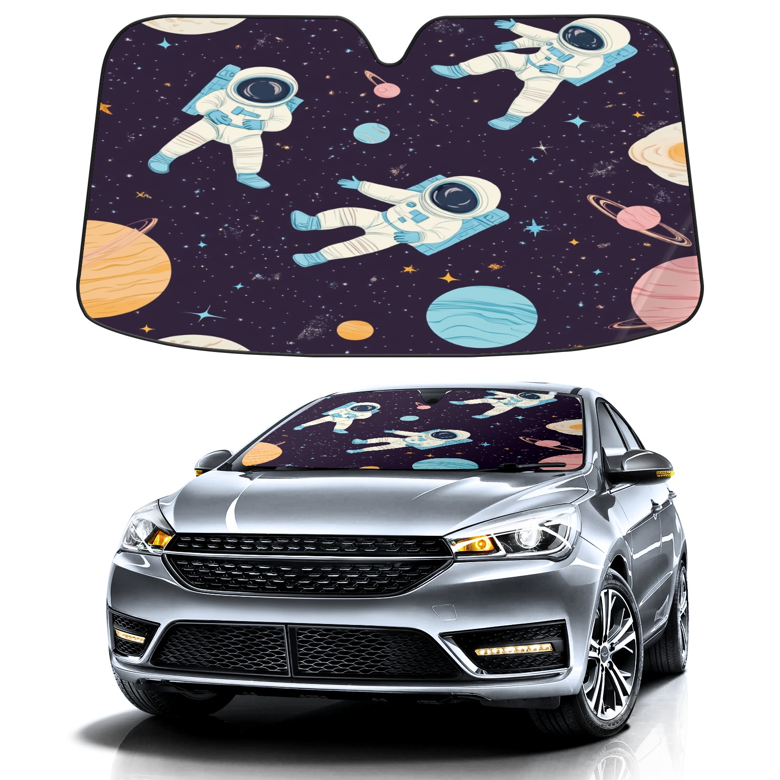 Car Windshield Sun Shade with UV Block & Heat Protection, Universal Foldable Front Window Sunshade for Automotive Sun Protection, Easy Fold Design(Astronauts Floating)