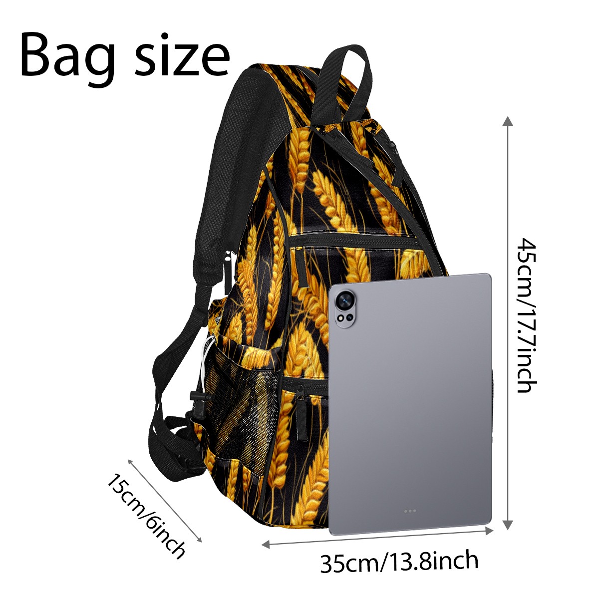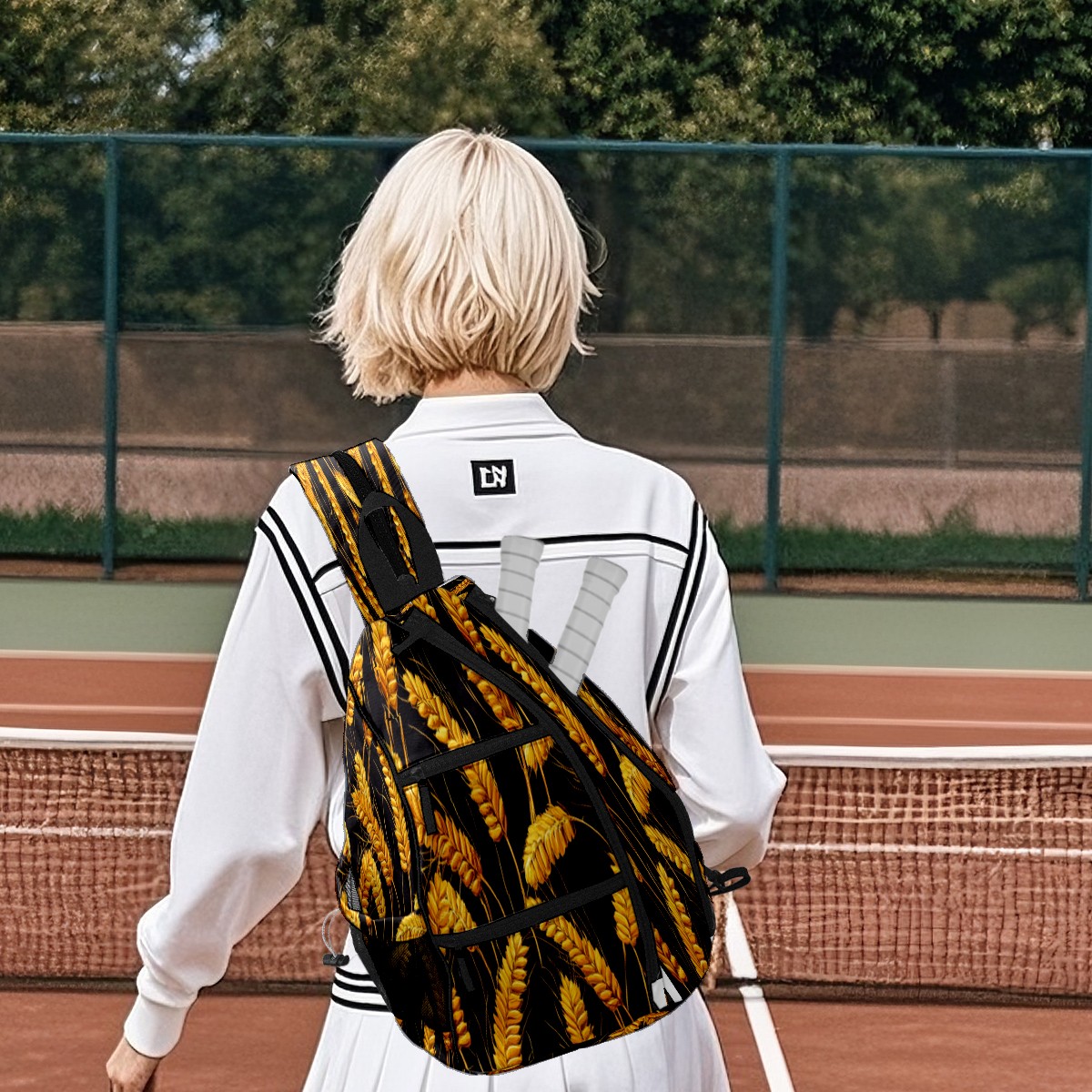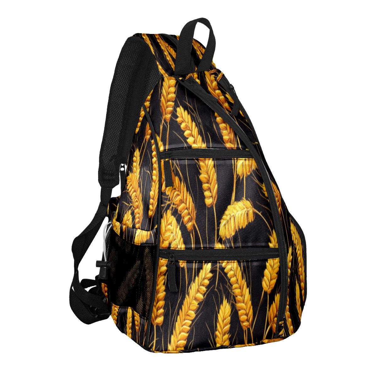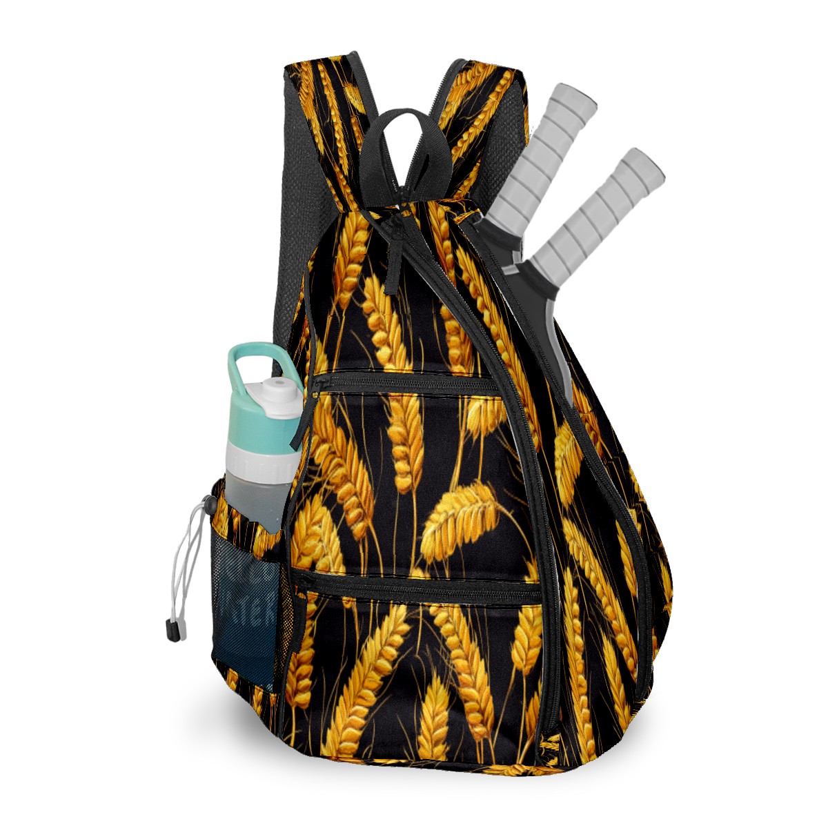 Pickleball Sling Bag for Women and Men - Backpack with Nylon Fabric/Woven Strap/Mesh Pocket/Fence Hook/Large Capacity/Adjustable Sling Bag Wheat Pattern