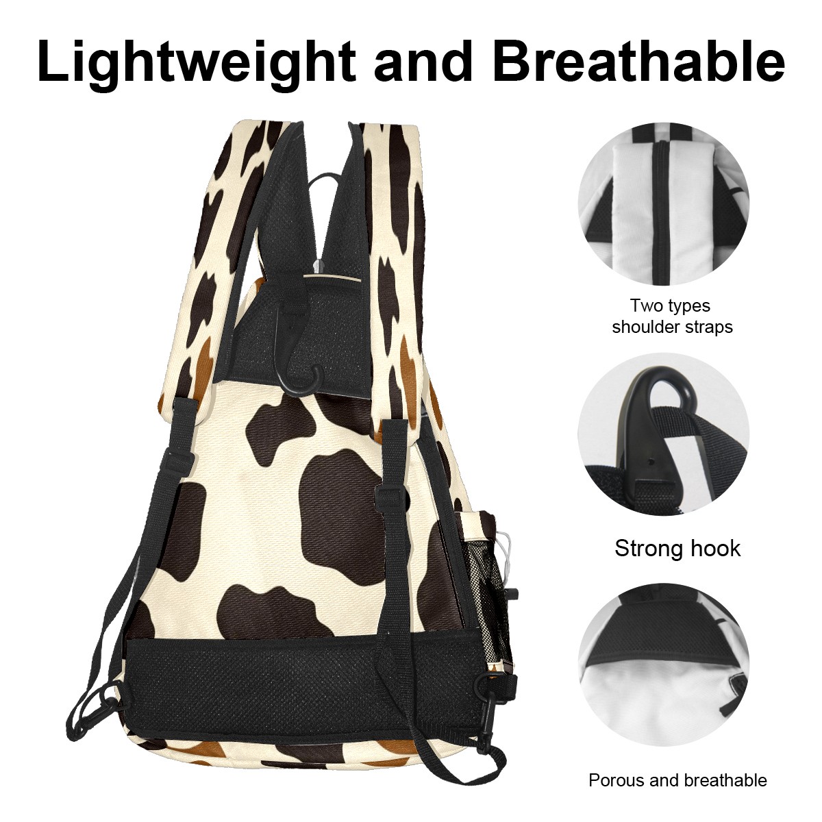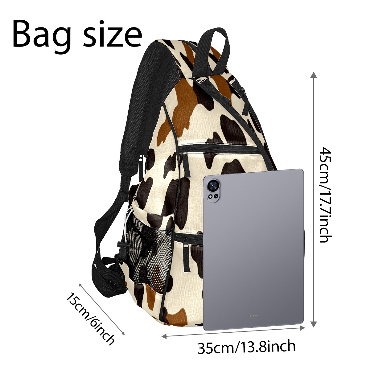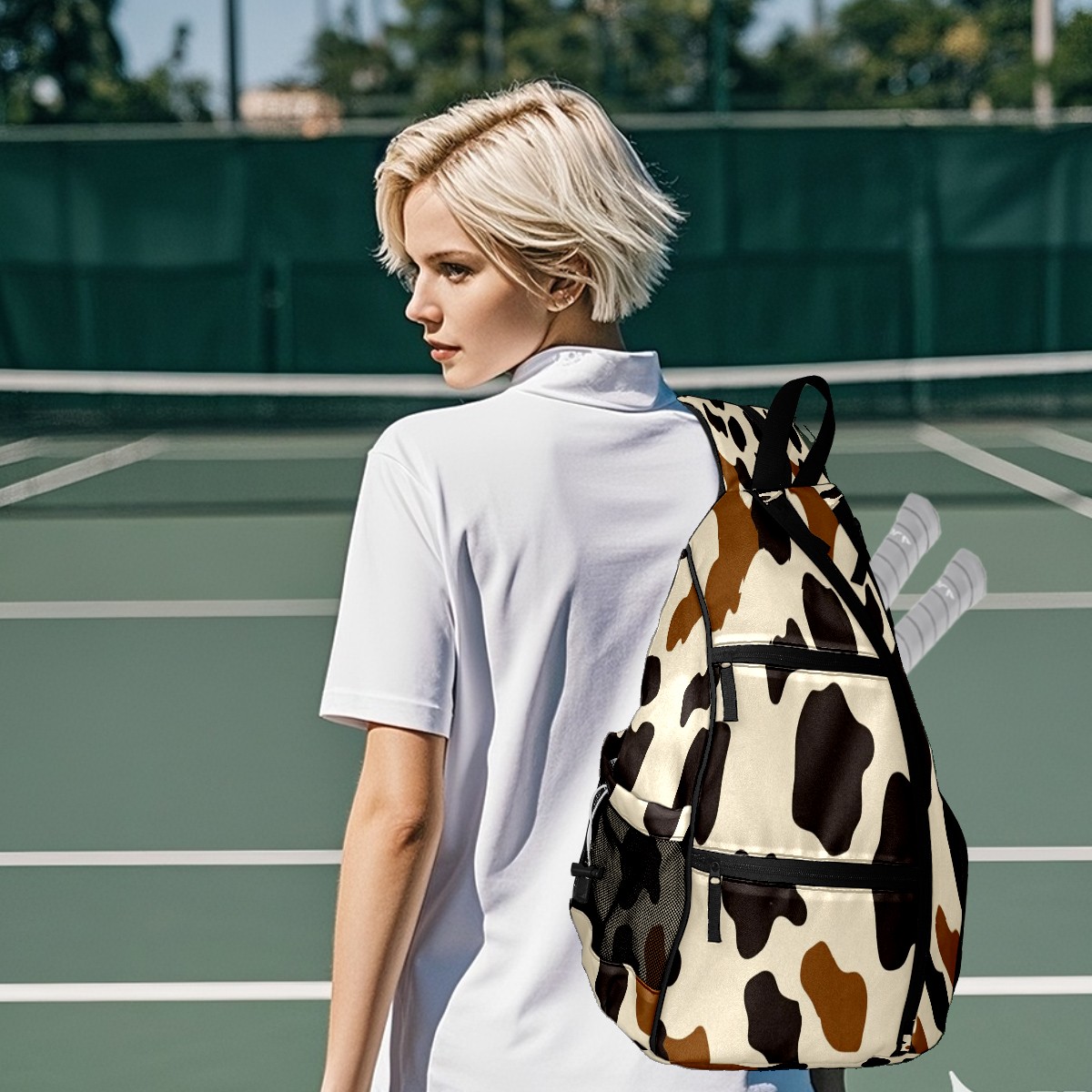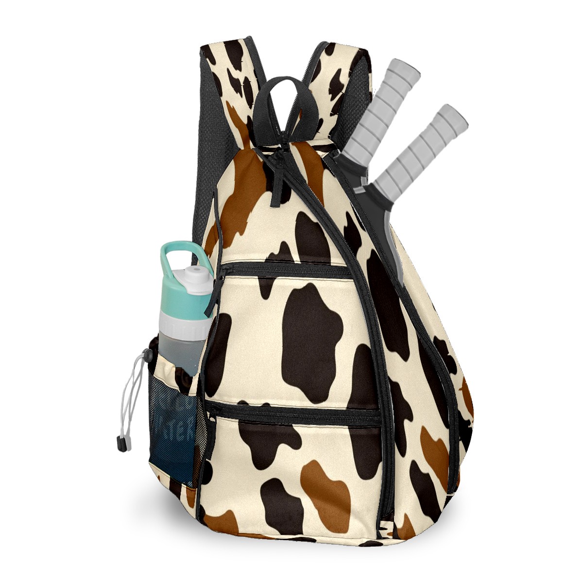 Pickleball Sling Bag for Women and Men - Backpack with Nylon Fabric/Woven Strap/Mesh Pocket/Fence Hook/Large Capacity/Adjustable Sling Bag Cow Print Pattern