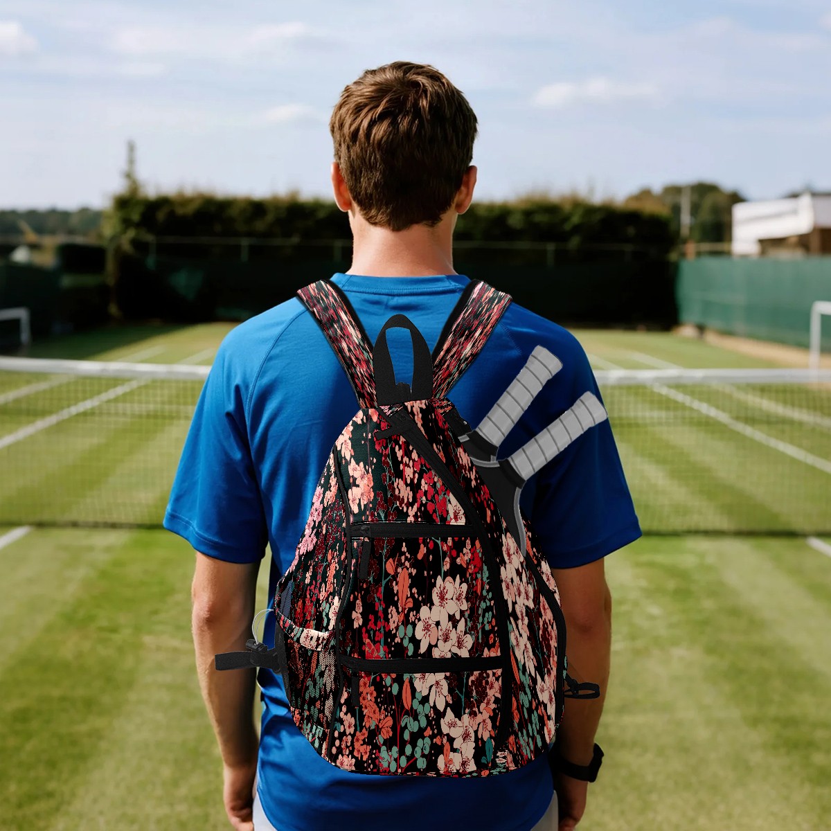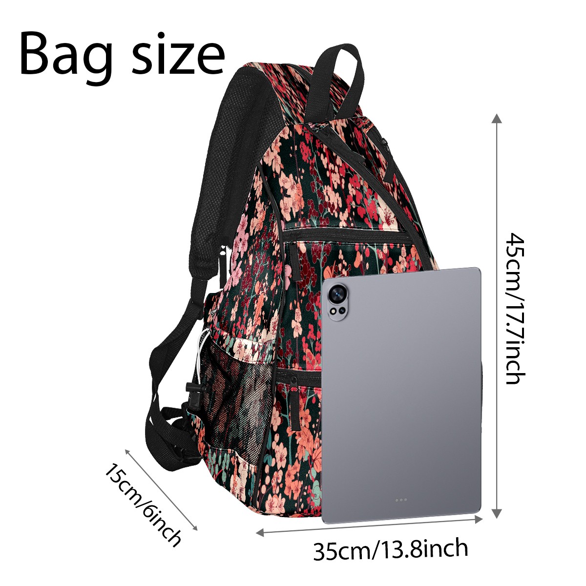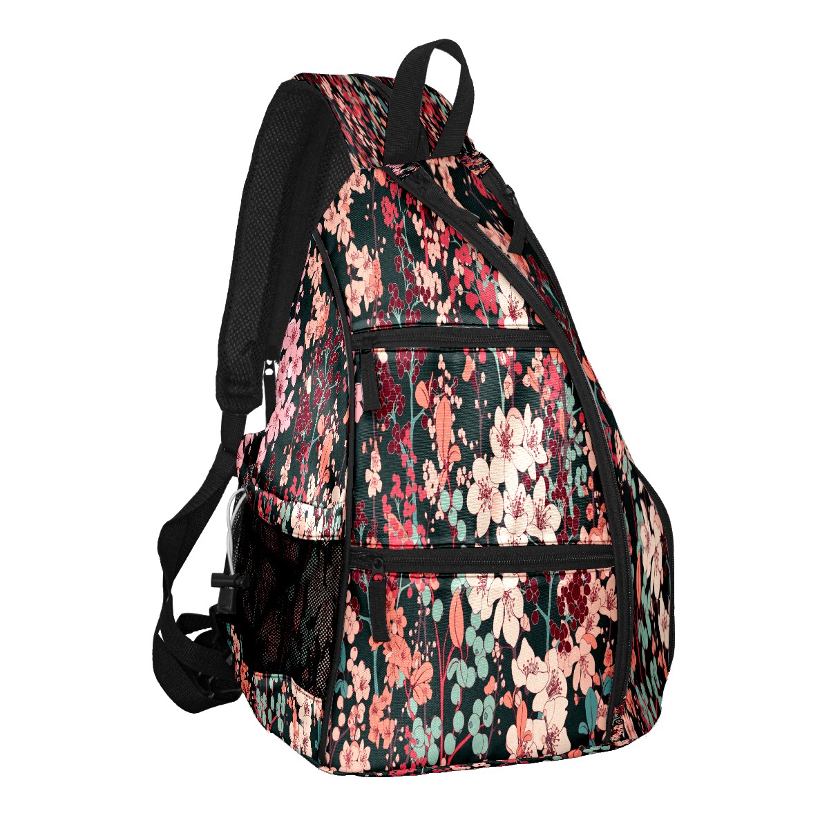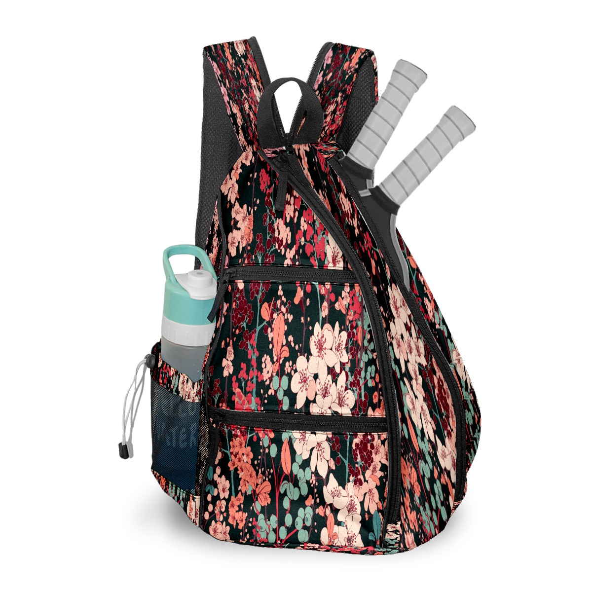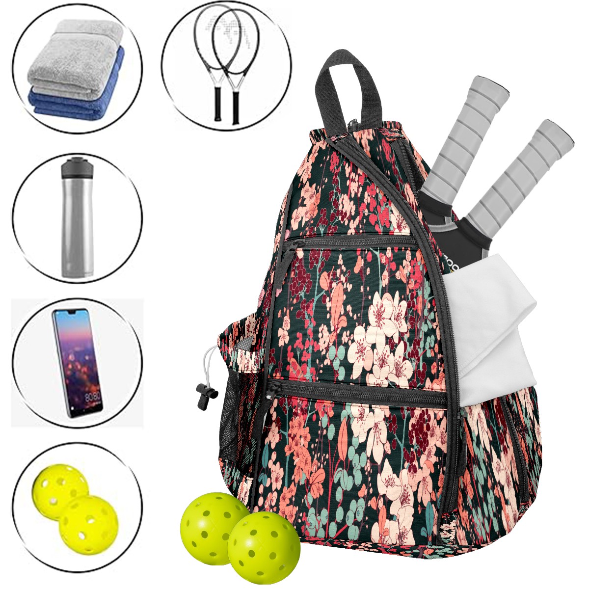 Pickleball Sling Bag for Women and Men - Backpack with Nylon Fabric/Woven Strap/Mesh Pocket/Fence Hook/Large Capacity/Adjustable Sling Bag Vintage Florals Pattern