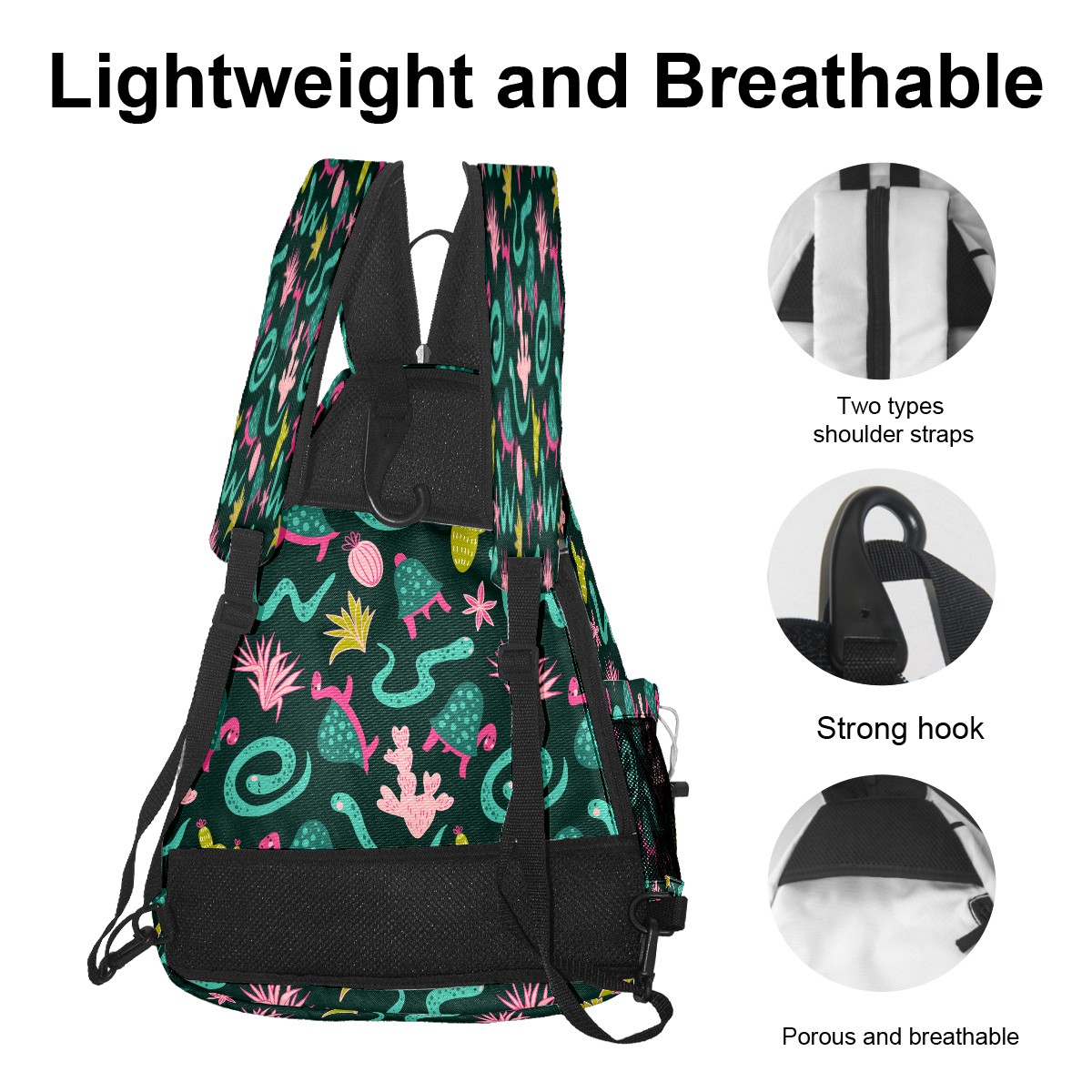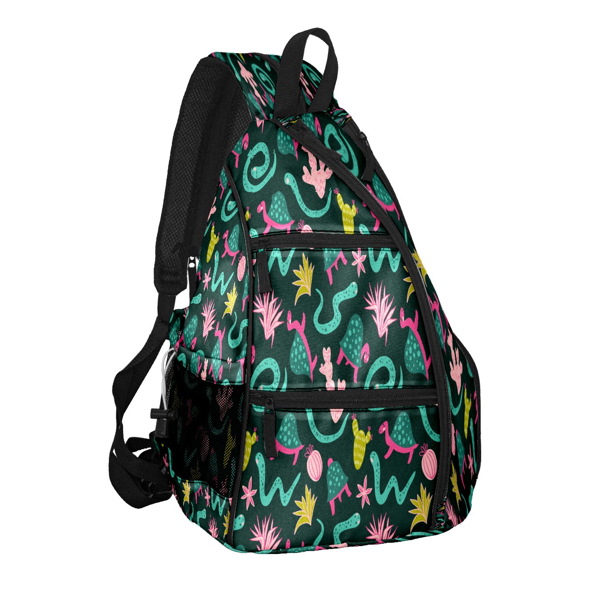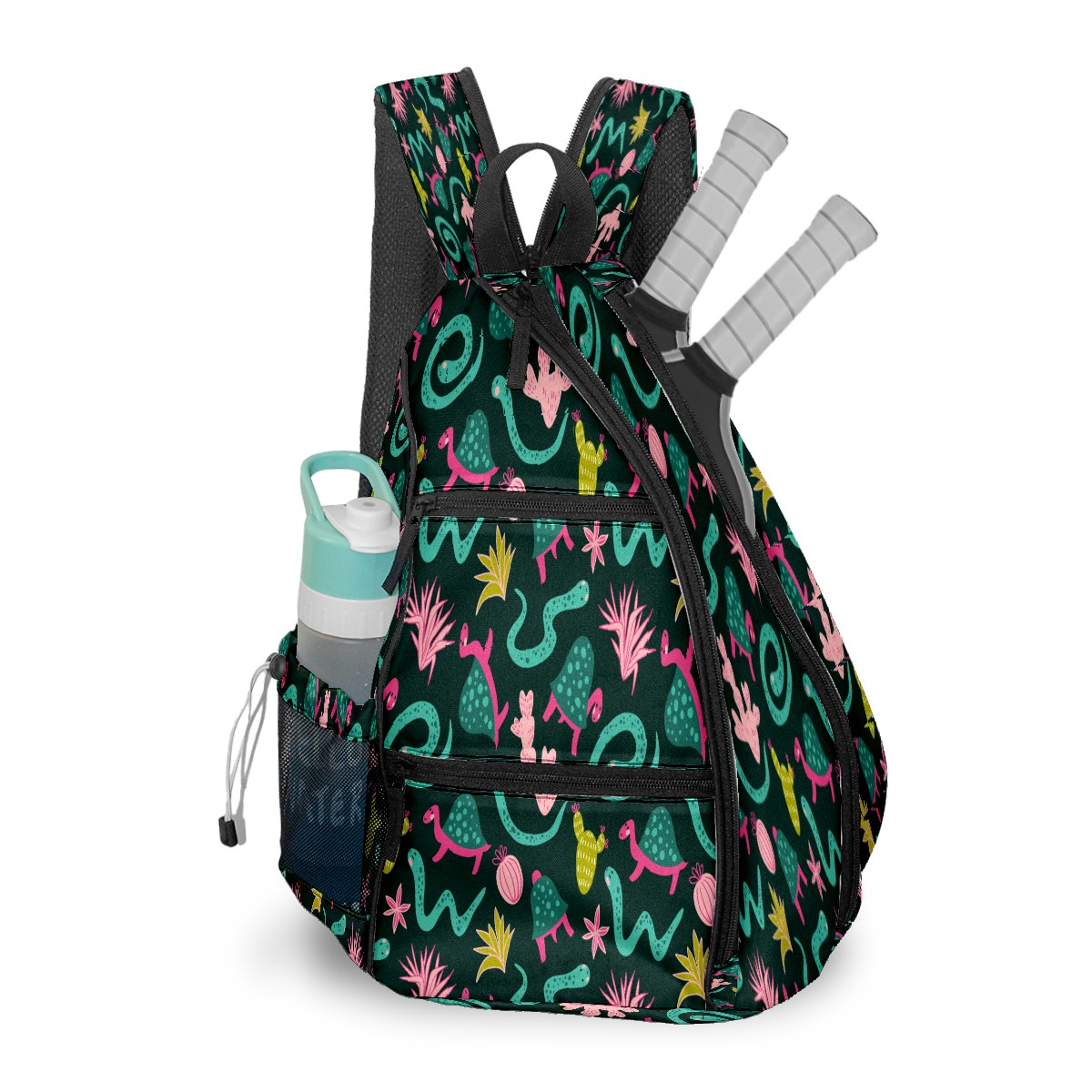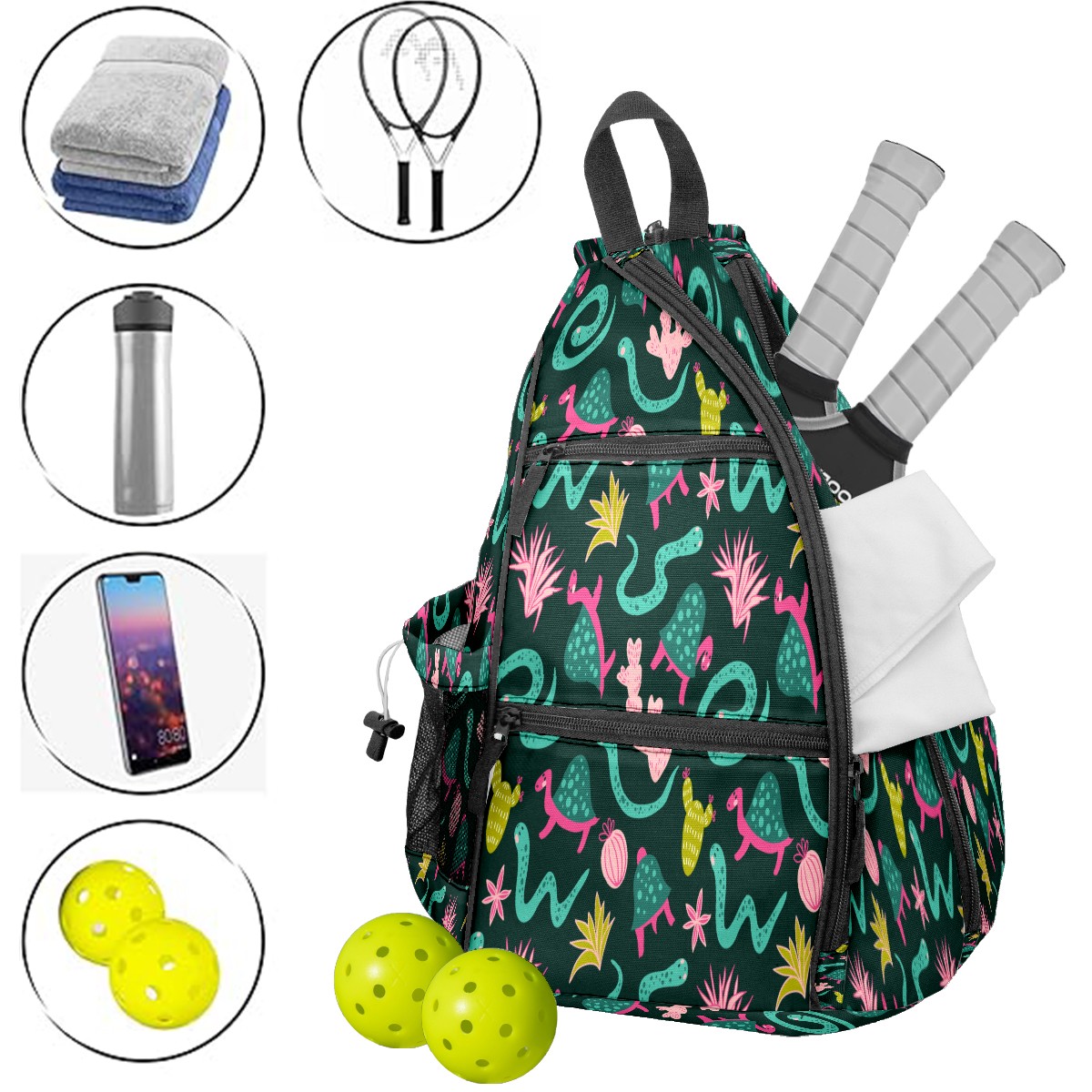 Pickleball Sling Bag for Women and Men - Backpack with Nylon Fabric/Woven Strap/Mesh Pocket/Fence Hook/Large Capacity/Adjustable Sling Bag Animal Tortoise Snake with Cactus