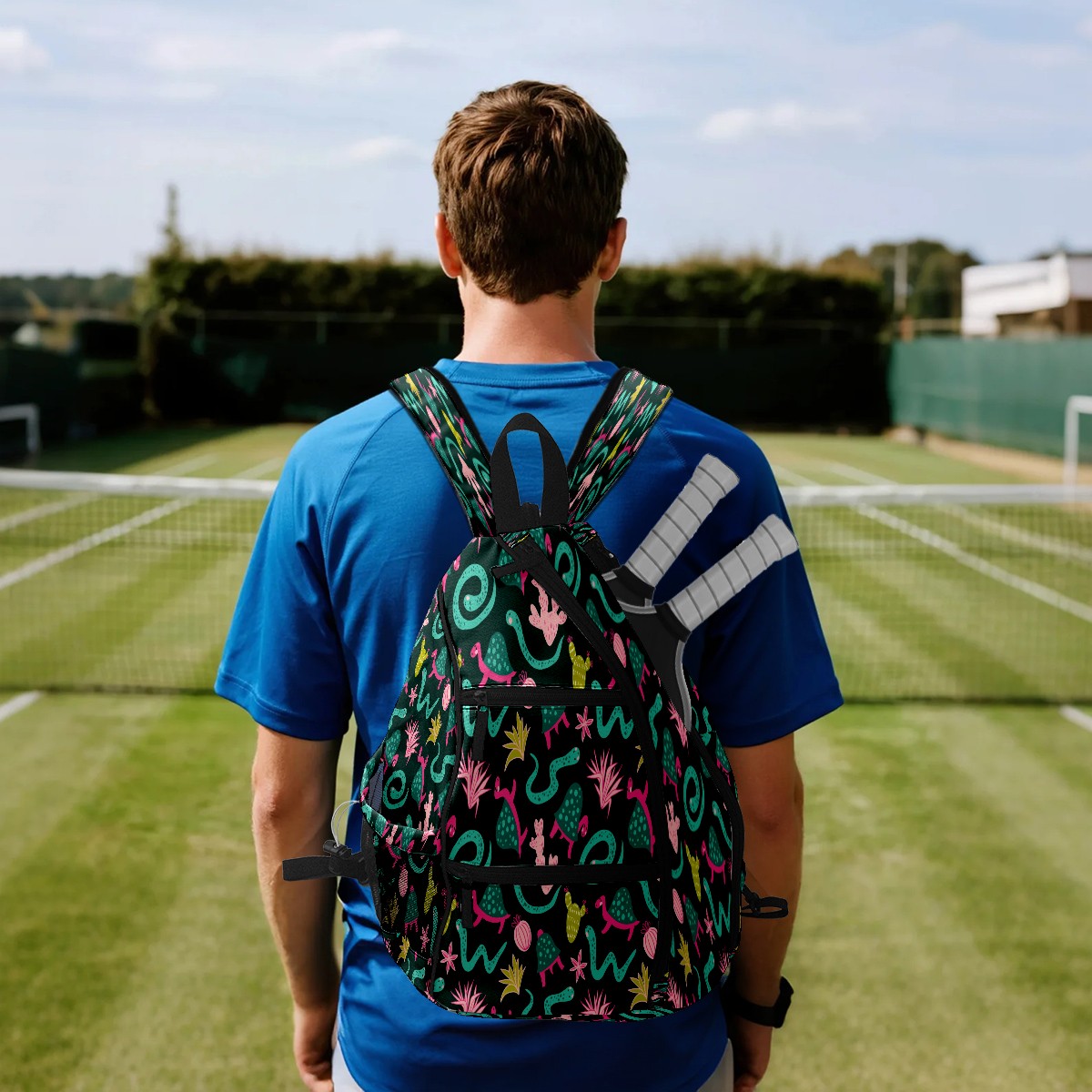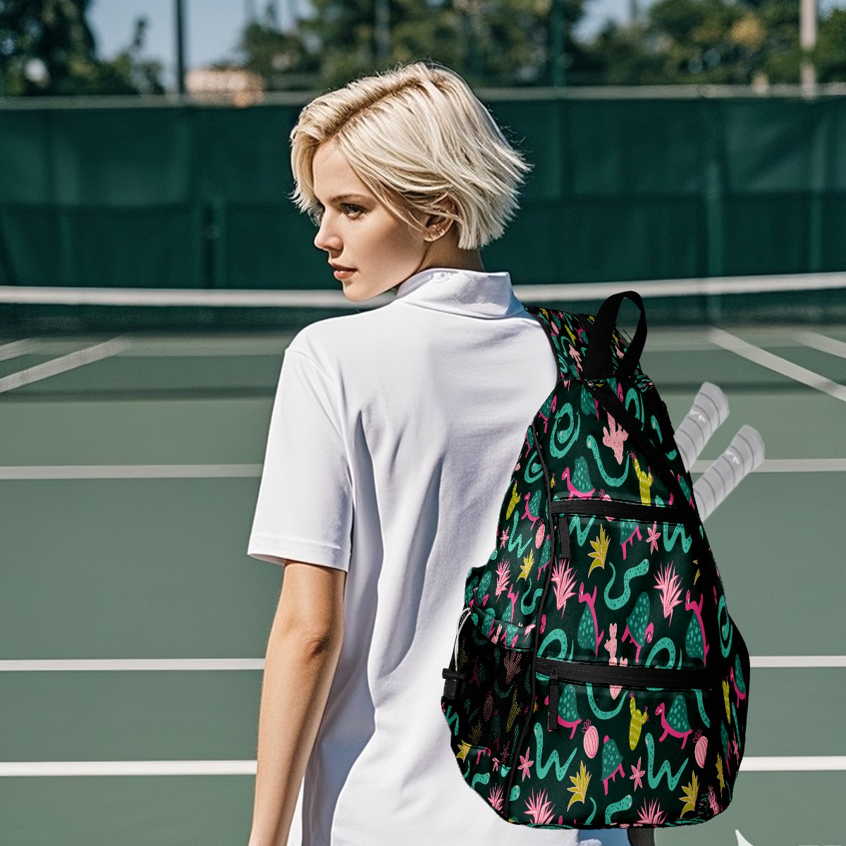 <p>Pickleball Bag | From “Equipment Chaos” to “One Bag to Rule Them All” — A Revolution on the Court</p> <p>The Origin: Every time we bent down to pick up scattered rackets, balls, and water bottles, we silently vowed — we had to create a pickleball bag that could “cure laziness”!</p> <p>✨ 5 Core Features, Designed for Pickleball Players</p> <p>✅ Durable Construction: Wear-resistant nylon + reinforced woven straps + breathable mesh pockets withstand the “brutal tests” of dropping rackets and dragging on the ground; the mesh pockets also allow wet towels to “breathe”;</p> <p>✅ Spacious storage: 15×35×45cm golden dimensions, easily accommodating 2 racquets + 10 balls + water bottle + spare clothes, saying goodbye to the awkwardness of “left hand holding the racquet, right hand chasing the ball”;</p> <p>✅ Cloud-like carrying experience: Padded back panel + air mesh shoulder straps, feel like you're being carried by a cloud while swinging your racket, no sweating even after prolonged use, no soreness after playing, keep your energy for what you love;</p> <p>✅ Transformable magic: Shoulder straps hide a “zipper mechanism,” unzip to instantly transform into a daily crossbody bag — take it straight to the mall after work, seamless transition from commuting to playing;</p> <p>✅ Bag Recognition Tool: Exclusive contrasting patterns act like a “signal flare” on the court, making your bag stand out in a crowd. No more worries about grabbing the wrong one!</p> <p>Starting with solving your own problems, we hope this bag will accompany you in swinging your racket with abandon, leaving all your energy for what you love!</p>
