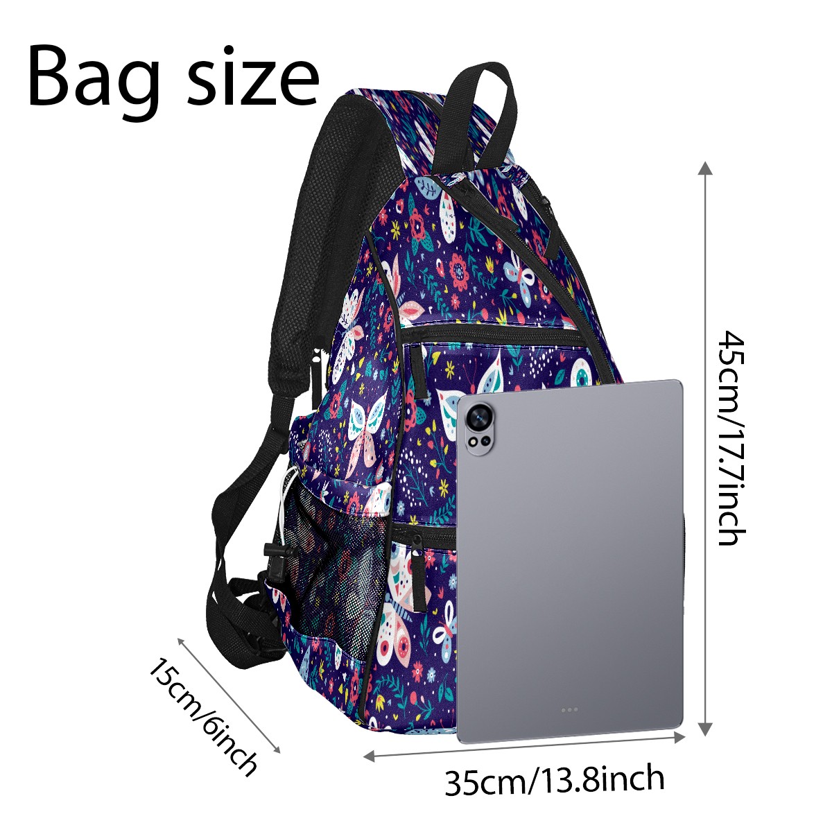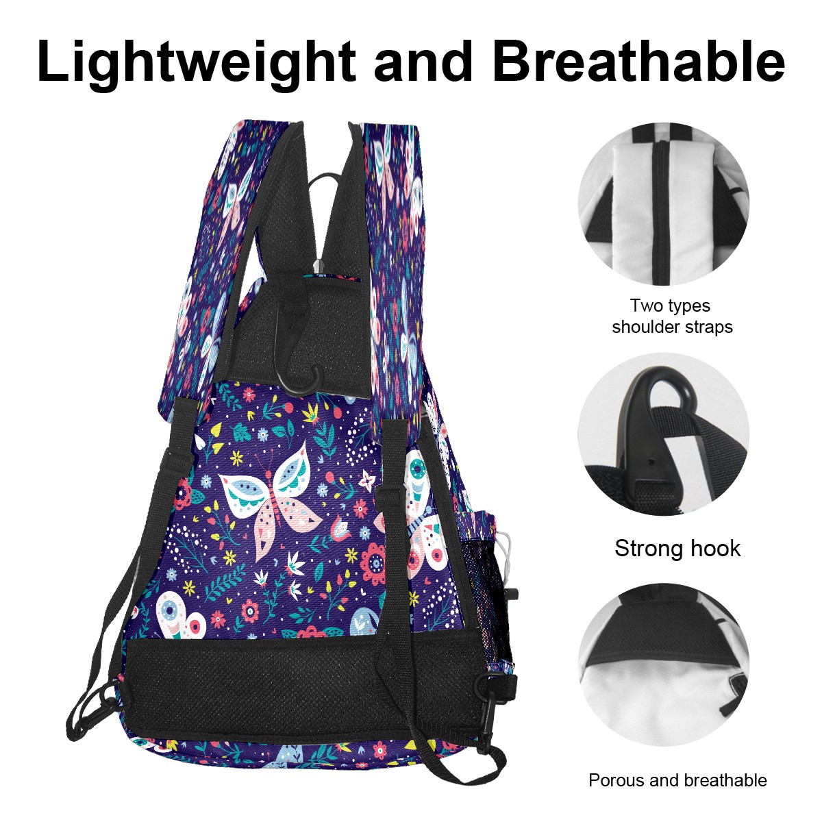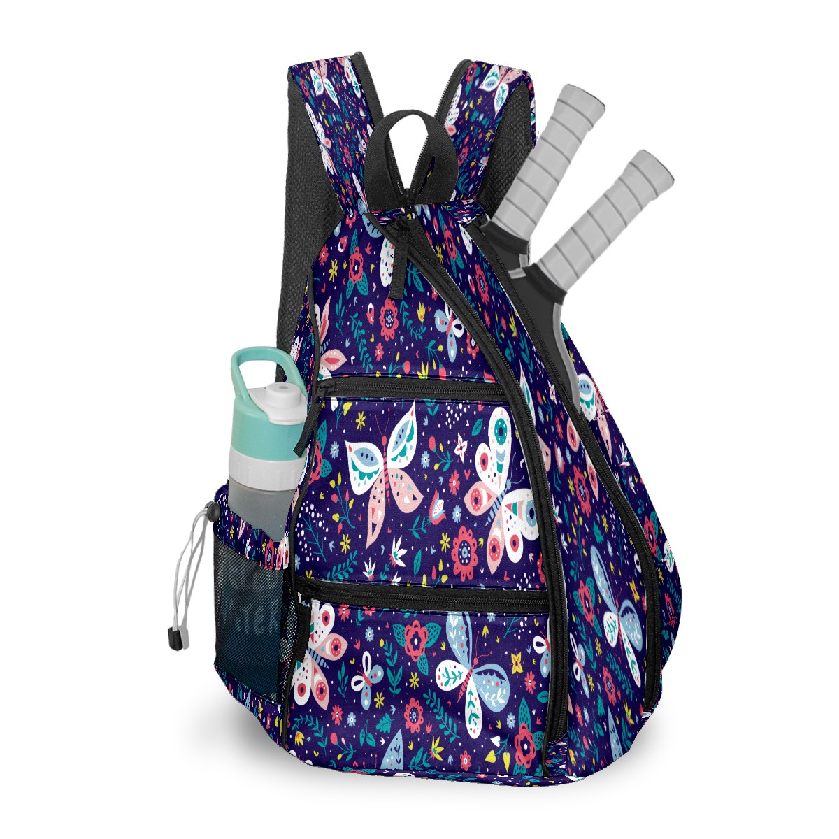 Pickleball Sling Bag for Women and Men - Backpack with Nylon Fabric/Woven Strap/Mesh Pocket/Fence Hook/Large Capacity/Adjustable Sling Bag Butterfly Florals Pattern