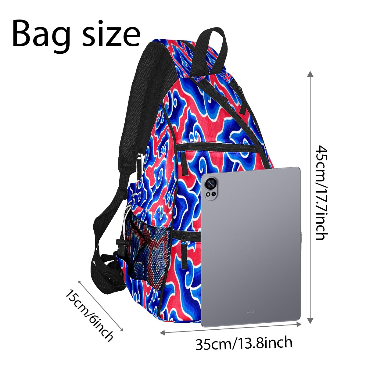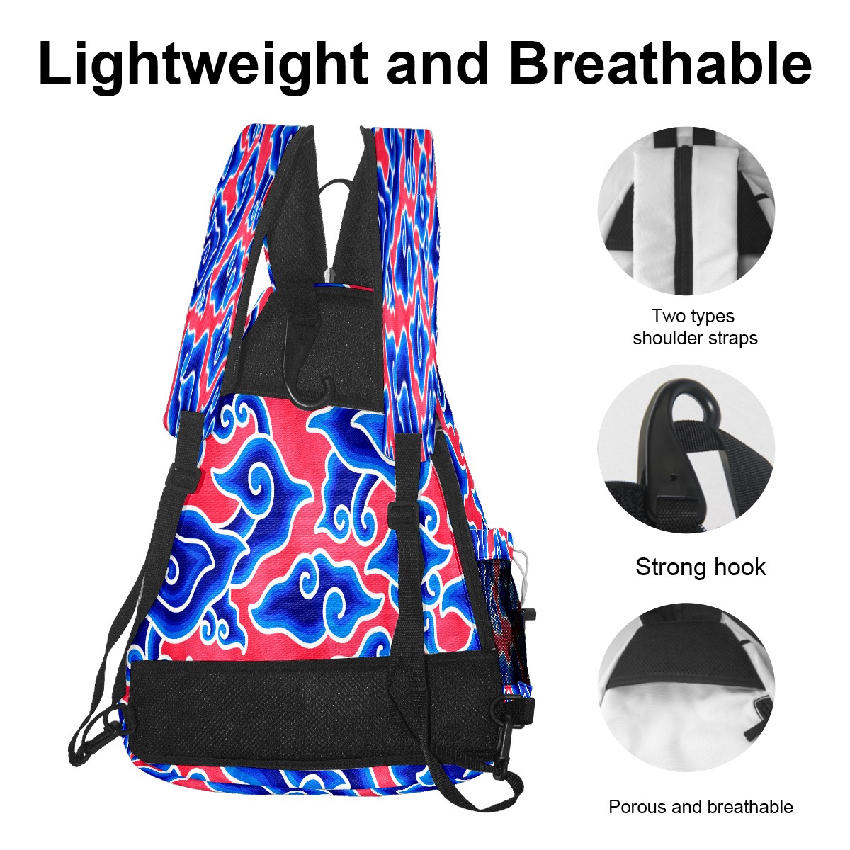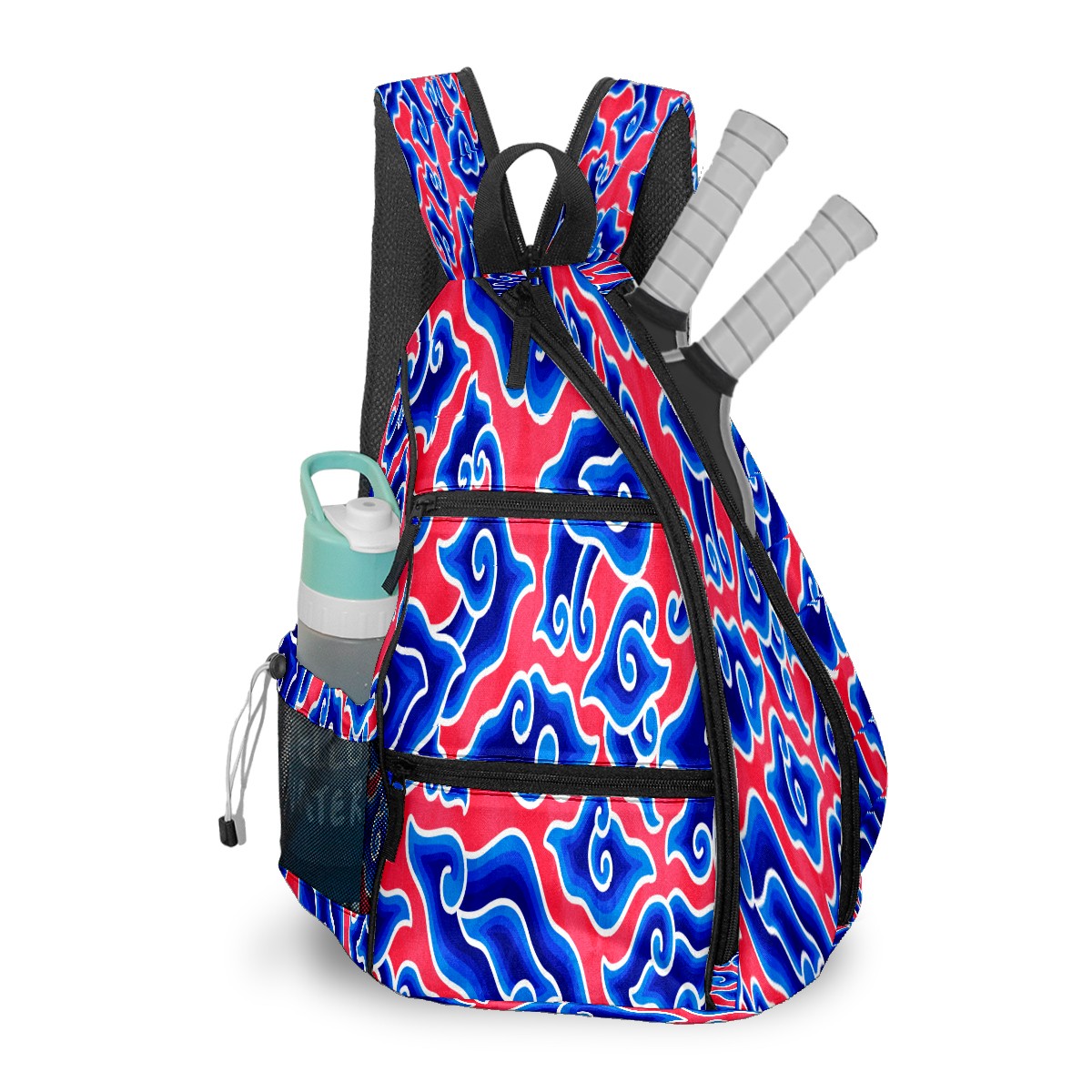 Pickleball Sling Bag for Women and Men - Backpack with Nylon Fabric/Woven Strap/Mesh Pocket/Fence Hook/Large Capacity/Adjustable Sling Bag Chinese Blue Red Cloud Megamend