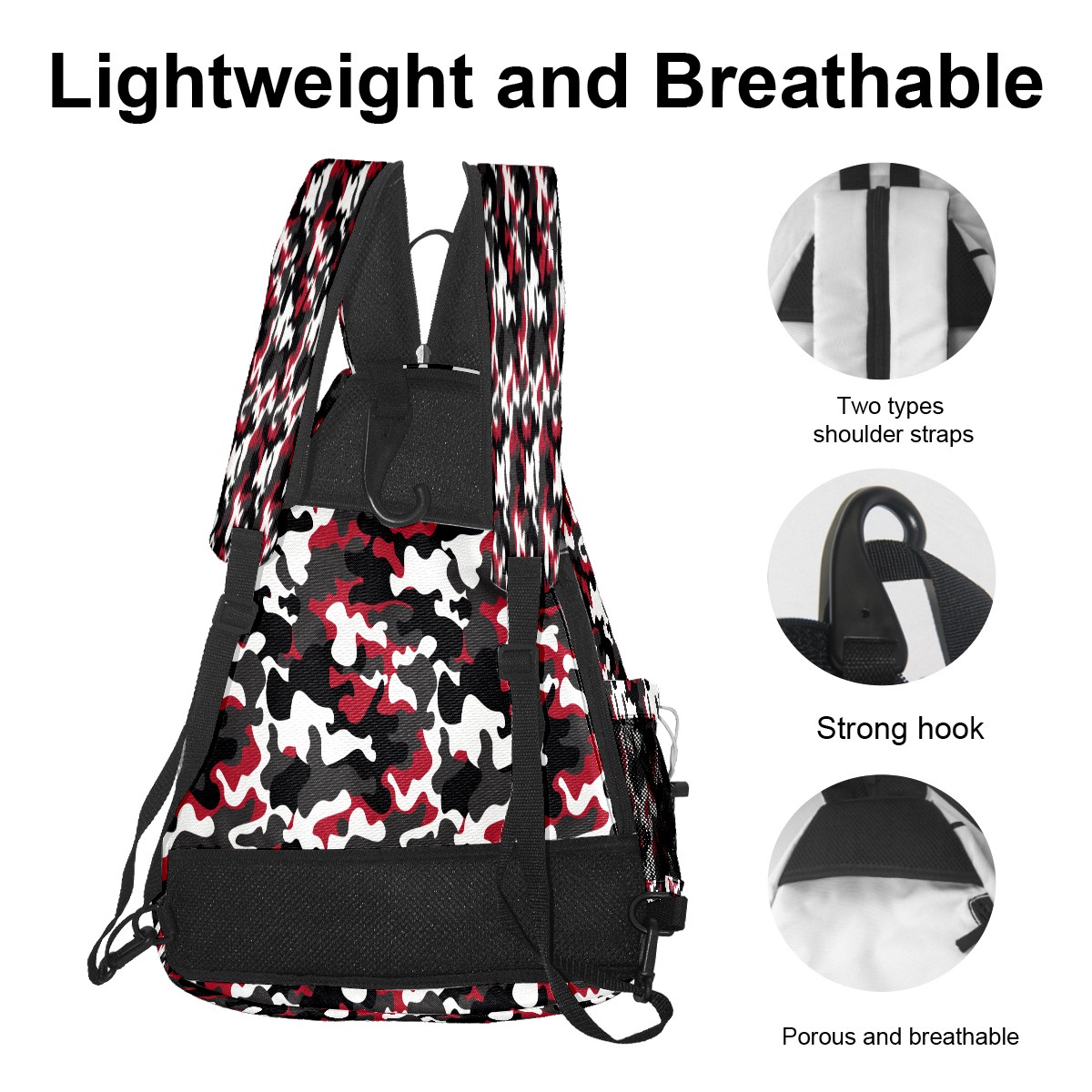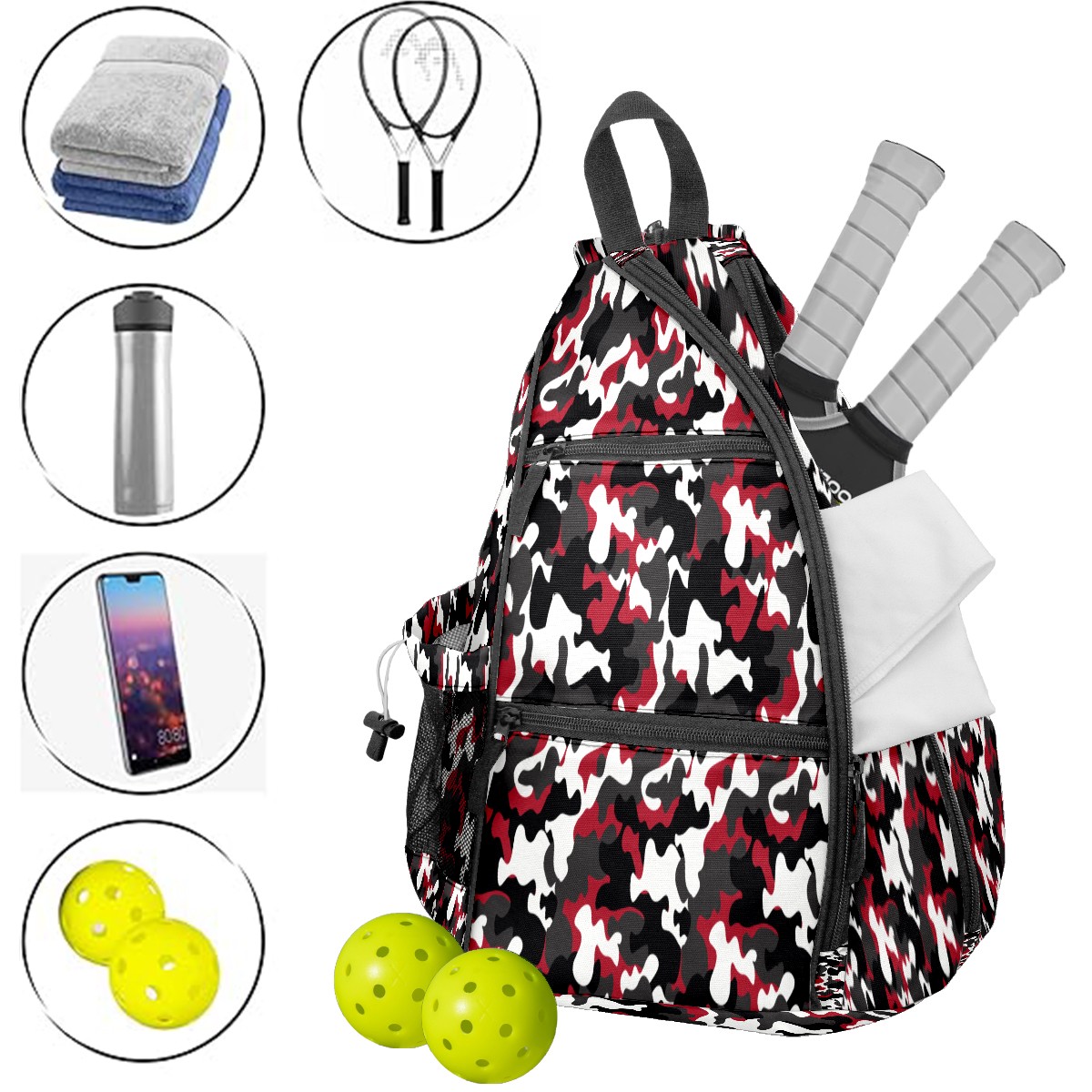 Pickleball Sling Bag for Women and Men - Backpack with Nylon Fabric/Woven Strap/Mesh Pocket/Fence Hook/Large Capacity/Adjustable Sling Bag Vintage Camouflage Pattern