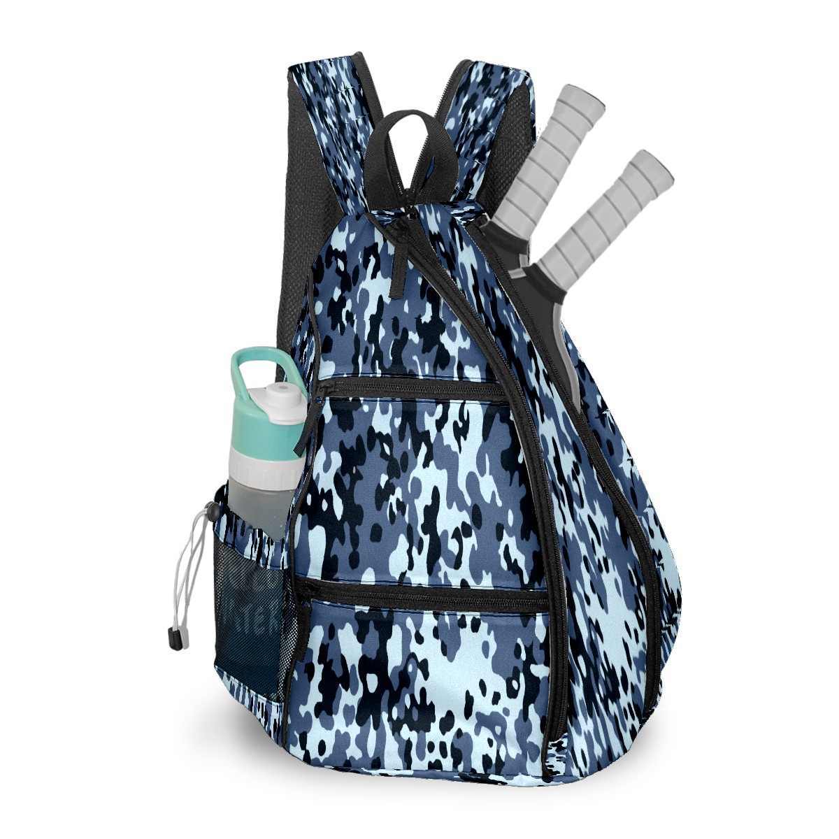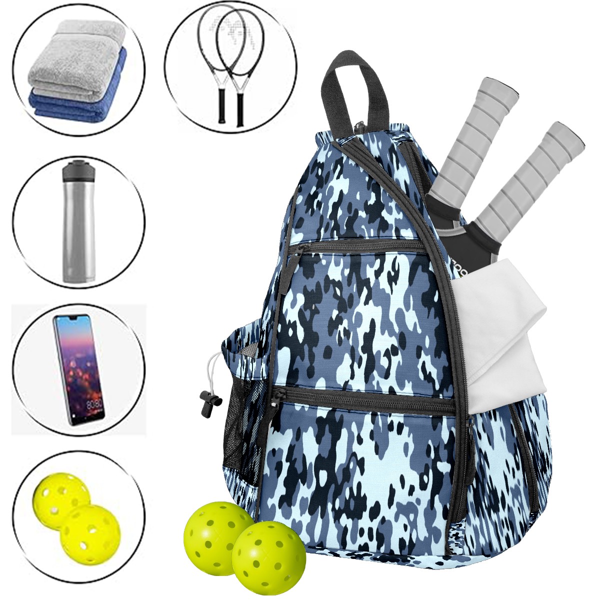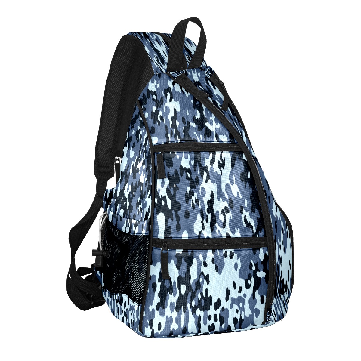 Pickleball Sling Bag for Women and Men - Backpack with Nylon Fabric/Woven Strap/Mesh Pocket/Fence Hook/Large Capacity/Adjustable Sling Bag Camouflage Multicam Background