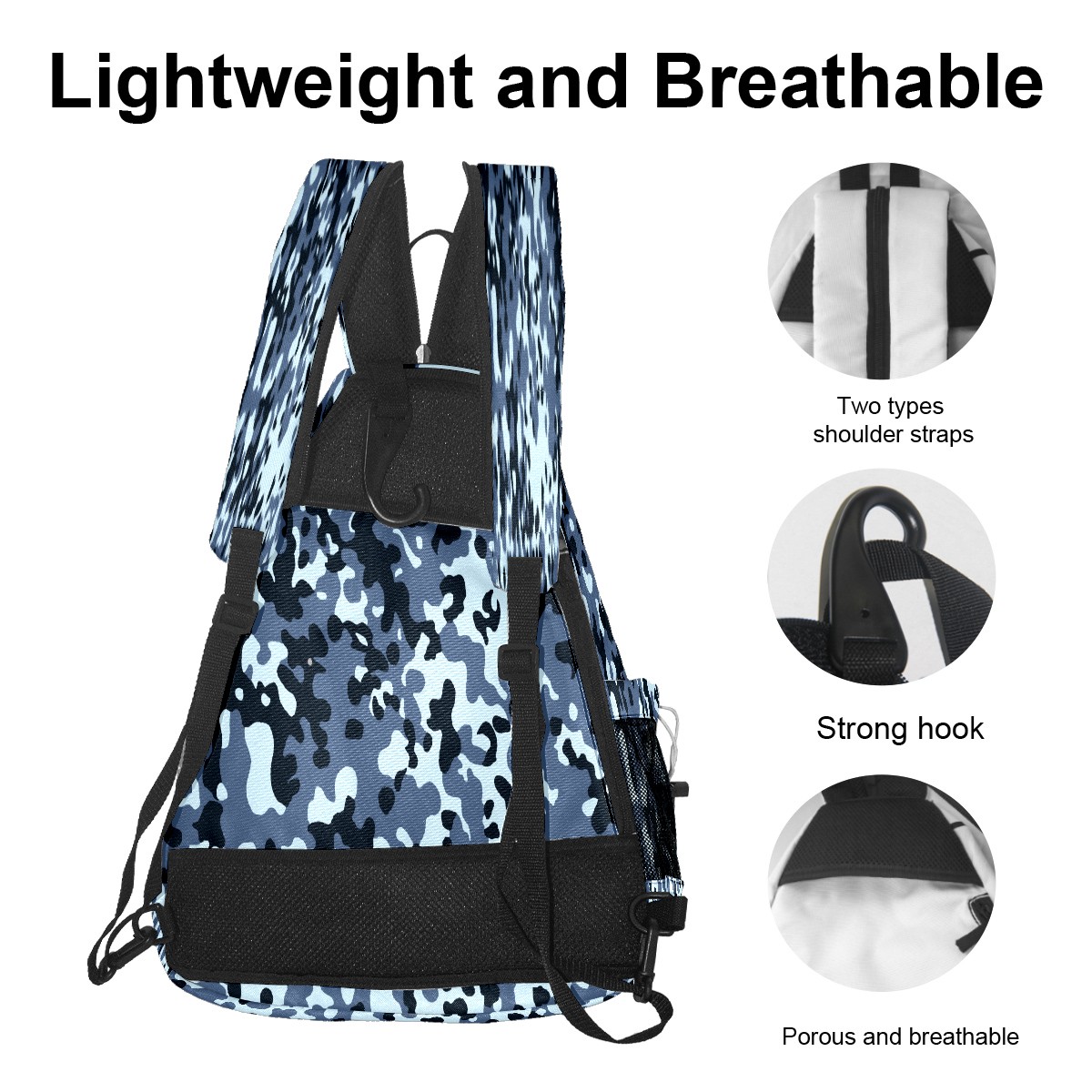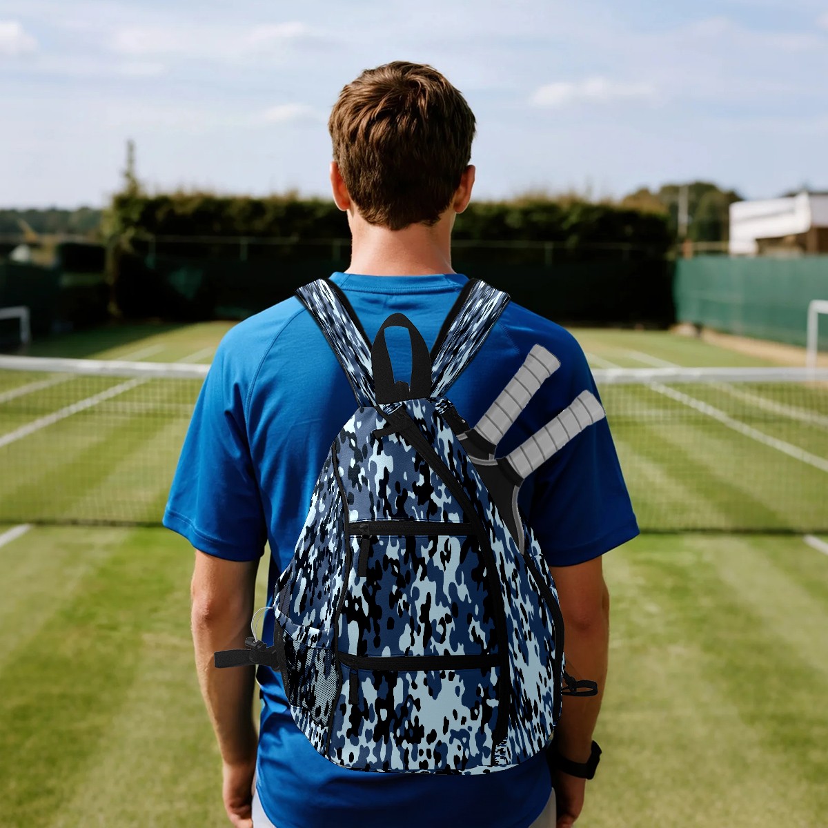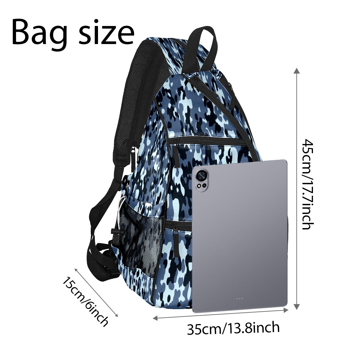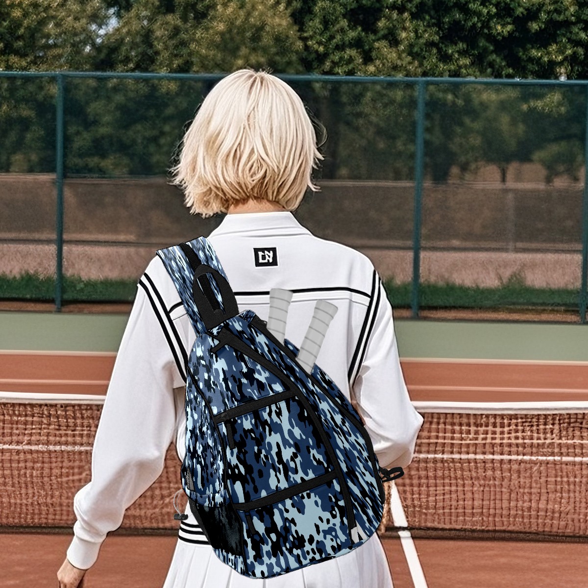 Pickleball Sling Bag for Women and Men - Backpack with Nylon Fabric/Woven Strap/Mesh Pocket/Fence Hook/Large Capacity/Adjustable Sling Bag Camouflage Multicam Background